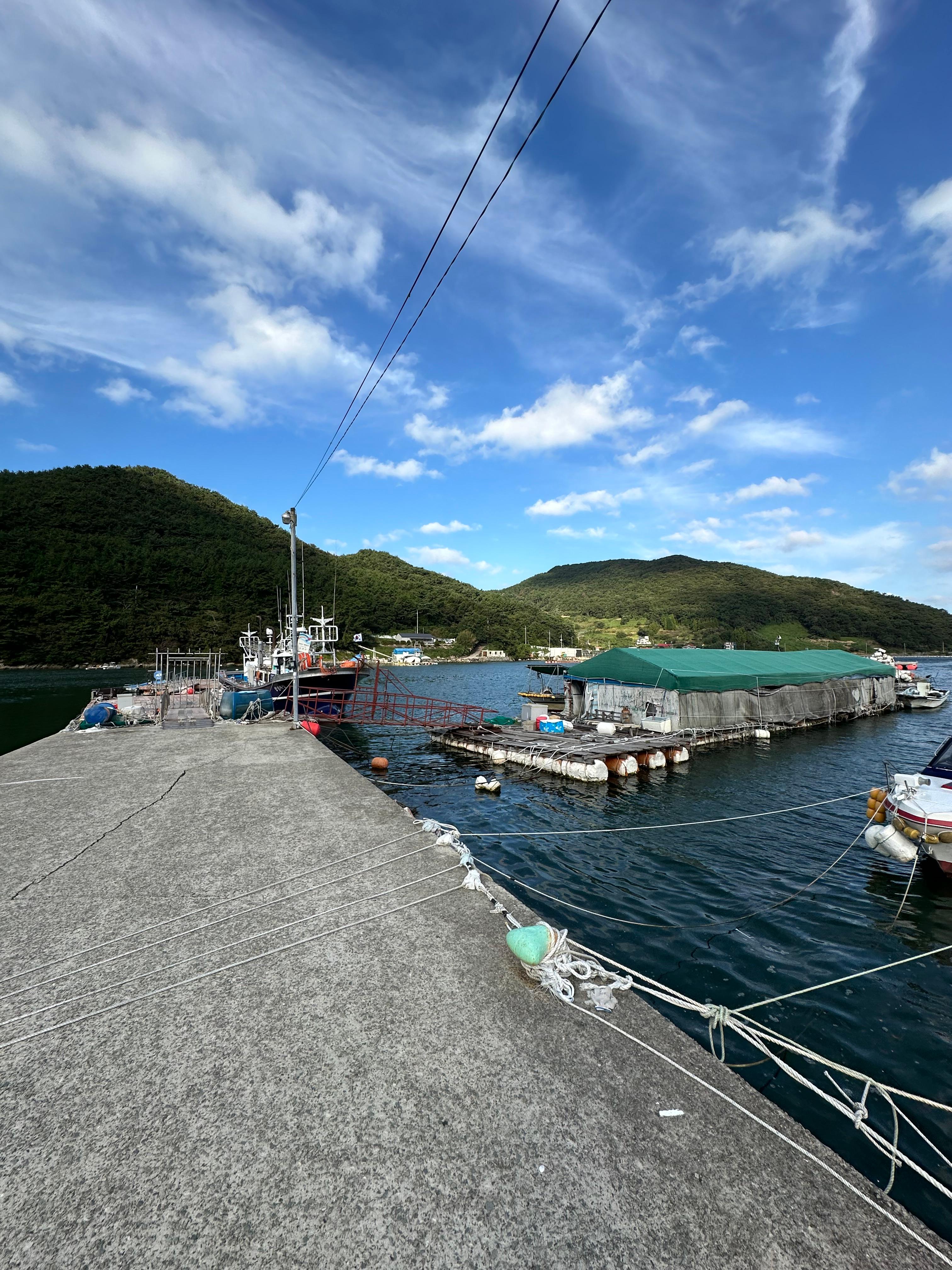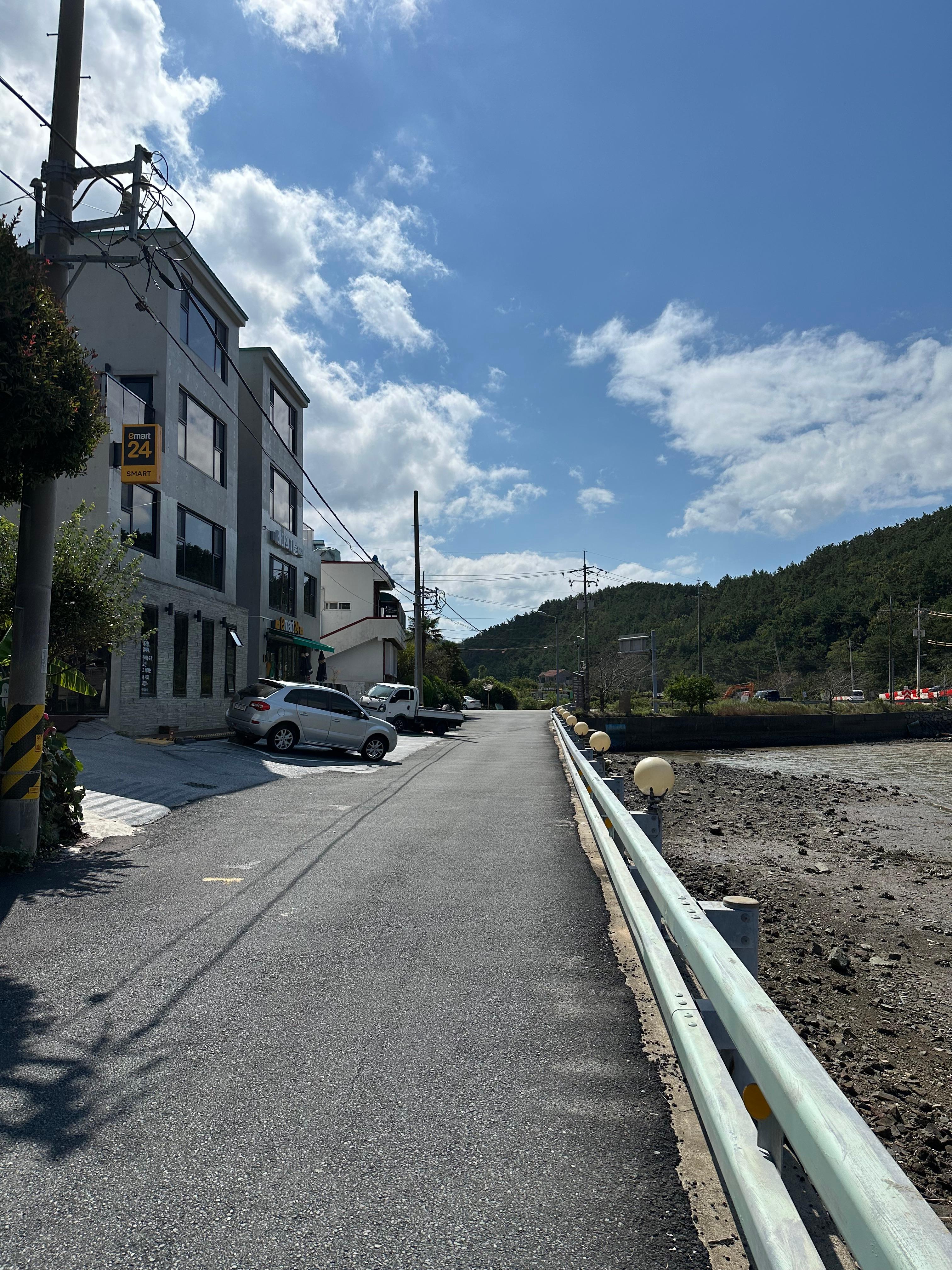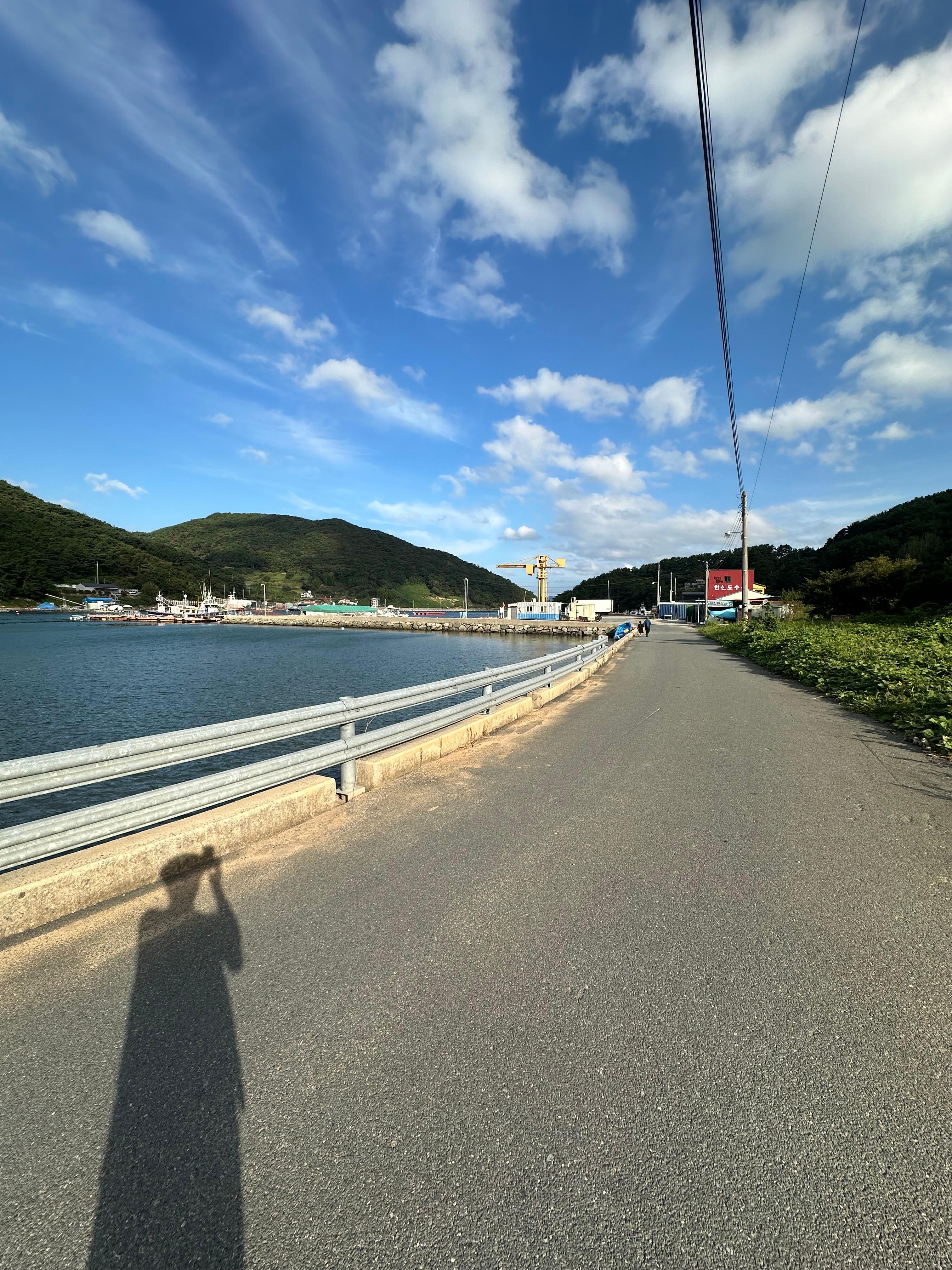 결국 늦은 아침마저 먹지는 못했지만 산과 바다가 보이는 바다 옆을 걸으며 슬로비게스트하우스가 있는 세포마을을 걷기로 했습니다. 배는 고프더라도 푸른하늘과 멋진 구름이 있는 통영의 가을 모습을 보니 배고픔도 사라지는 것을 볼 수 있었습니다. 봄여름가을겨울을 모두 방문한 통영이라 그런지 이제는 제가 사는 안산 처럼 더 자유롭게 다니는것 같습니다. 반달섬에 입주하고나서는 퇴근하고 시화호 바다를 따라 반달섬과 그래도 조용한 산과 바다가 있는 통영 슬로비게스트하우스와는 또 다른 느끼이었습니다. 반달섬은 시화호와 주변 공장이 있어서 공기가 좋지 않지만 슬로비게스트하우스는 공기도 좋고 조용해서 더 좋았습니다.