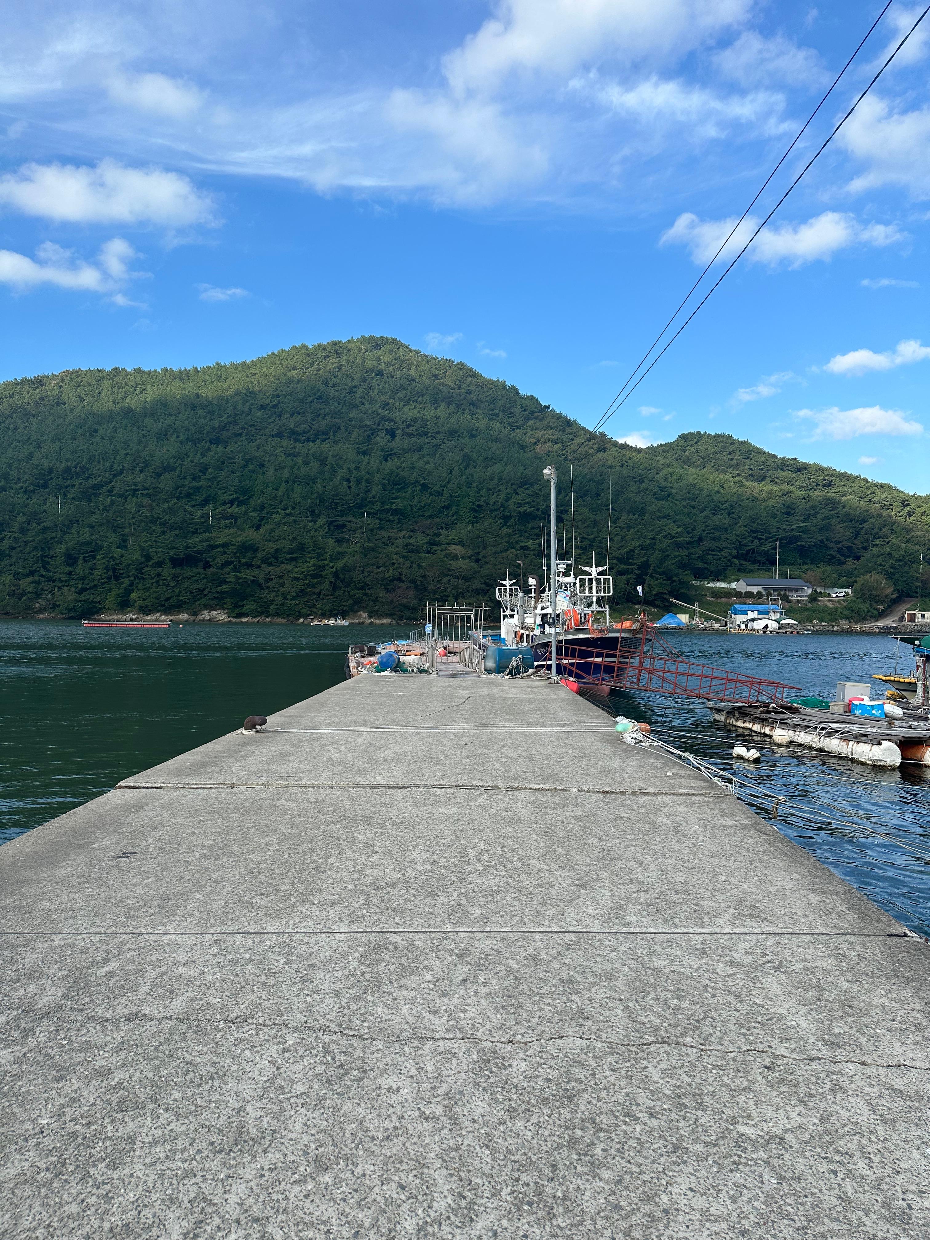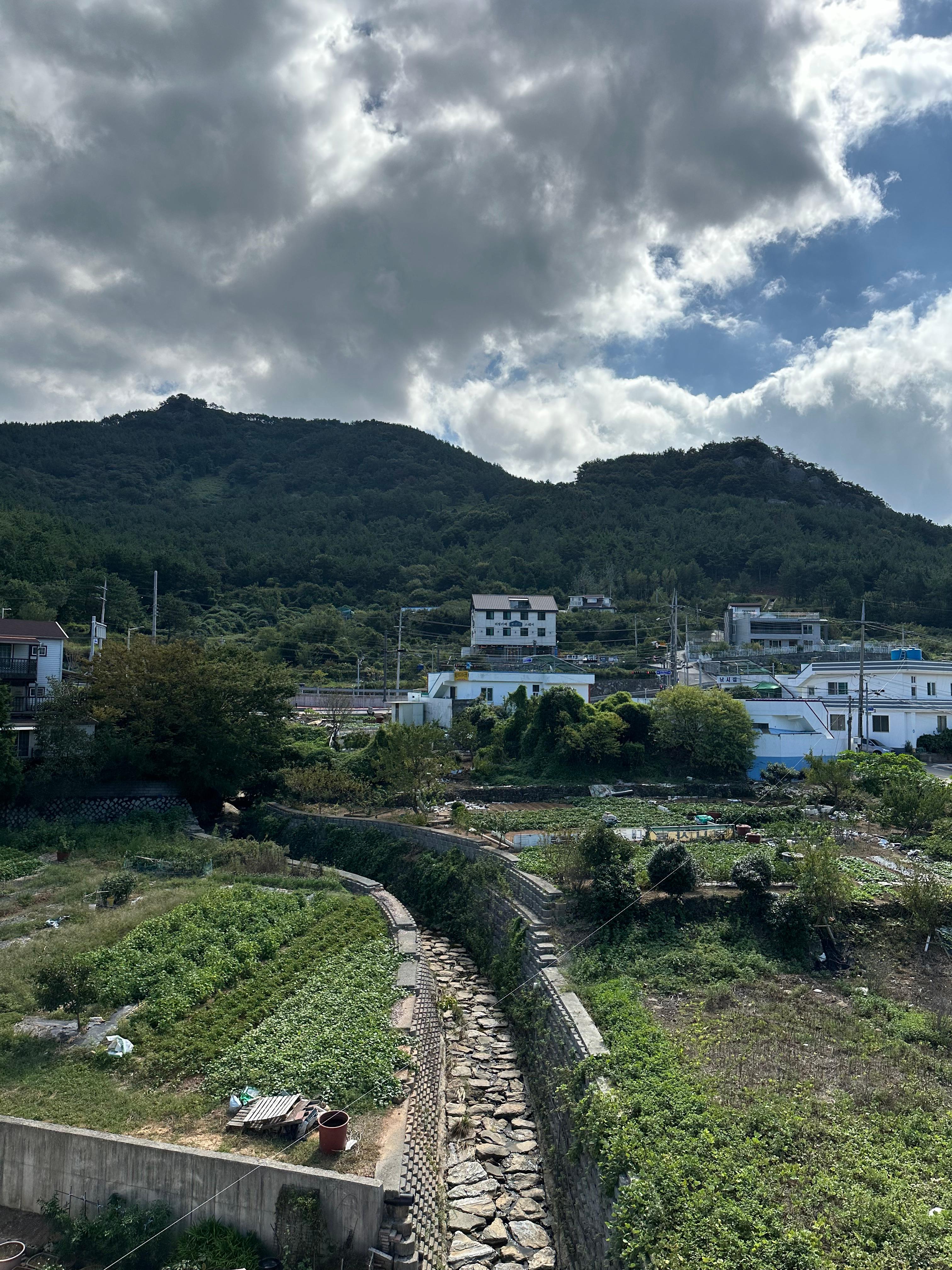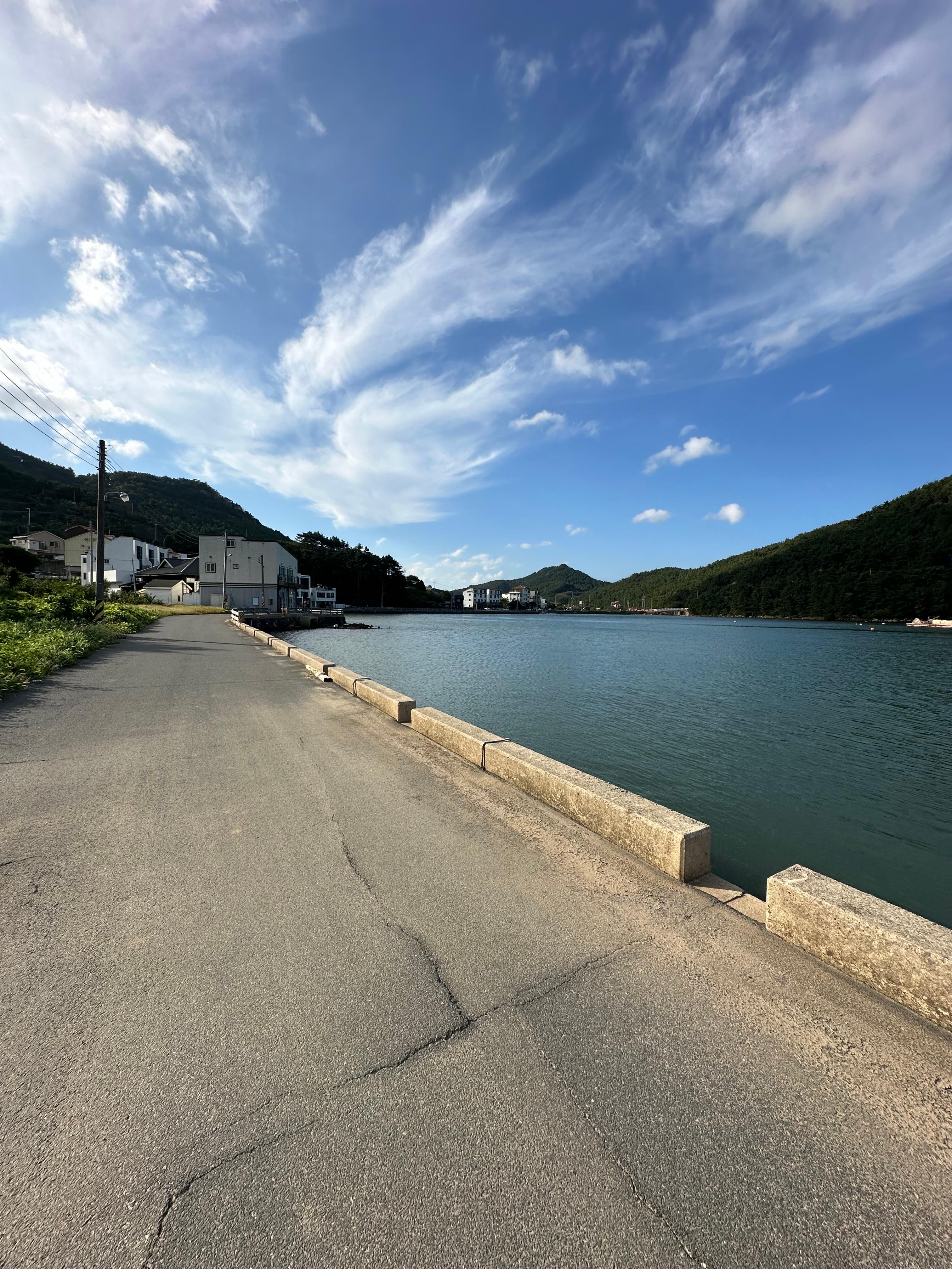 결국 늦은 아침마저 먹지는 못했지만 산과 바다가 보이는 바다 옆을 걸으며 슬로비게스트하우스가 있는 세포마을을 걷기로 했습니다. 배는 고프더라도 푸른하늘과 멋진 구름이 있는 통영의 가을 모습을 보니 배고픔도 사라지는 것을 볼 수 있었습니다. 봄여름가을겨울을 모두 방문한 통영이라 그런지 이제는 제가 사는 안산 처럼 더 자유롭게 다니는것 같습니다. 반달섬에 입주하고나서는 퇴근하고 시화호 바다를 따라 반달섬과 그래도 조용한 산과 바다가 있는 통영 슬로비게스트하우스와는 또 다른 느끼이었습니다. 반달섬은 시화호와 주변 공장이 있어서 공기가 좋지 않지만 슬로비게스트하우스는 공기도 좋고 조용해서 더 좋았습니다.