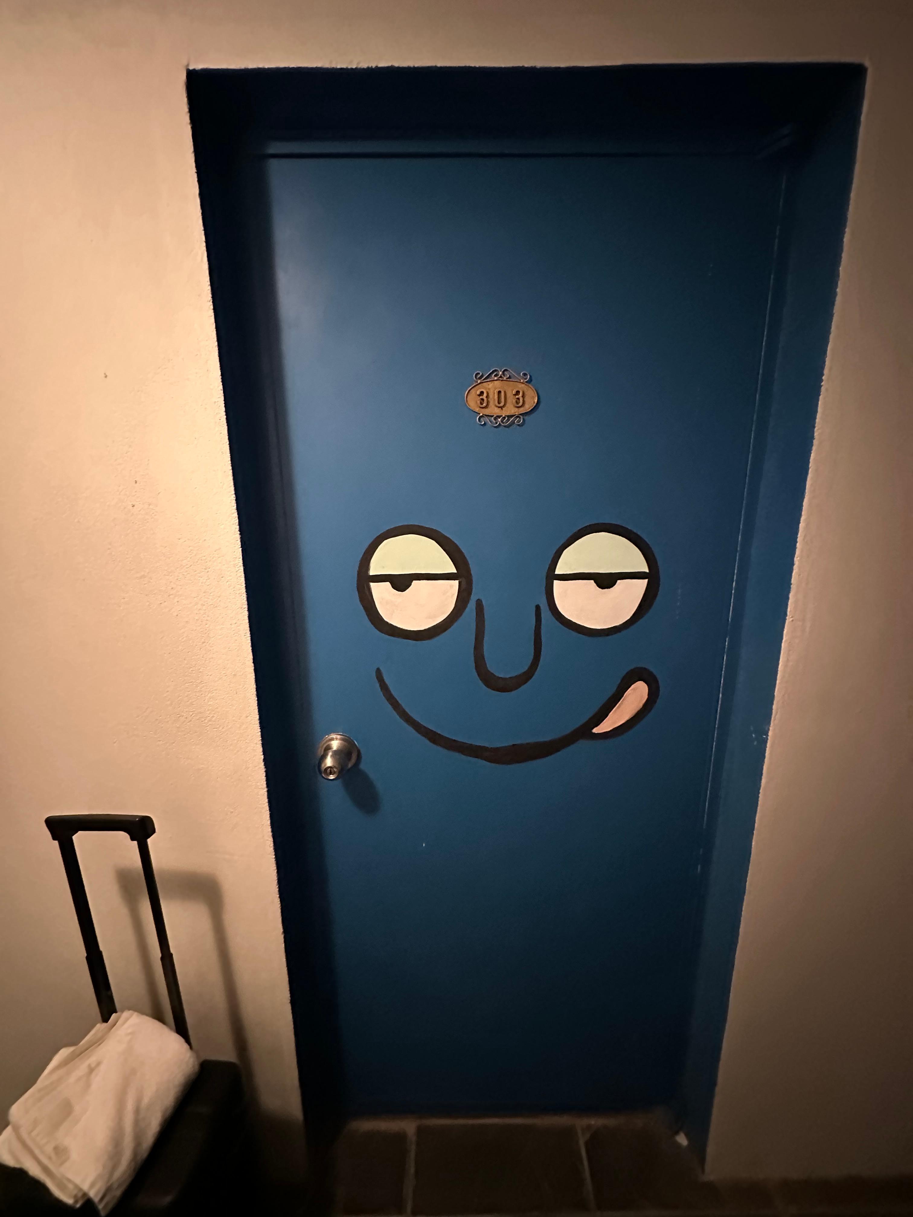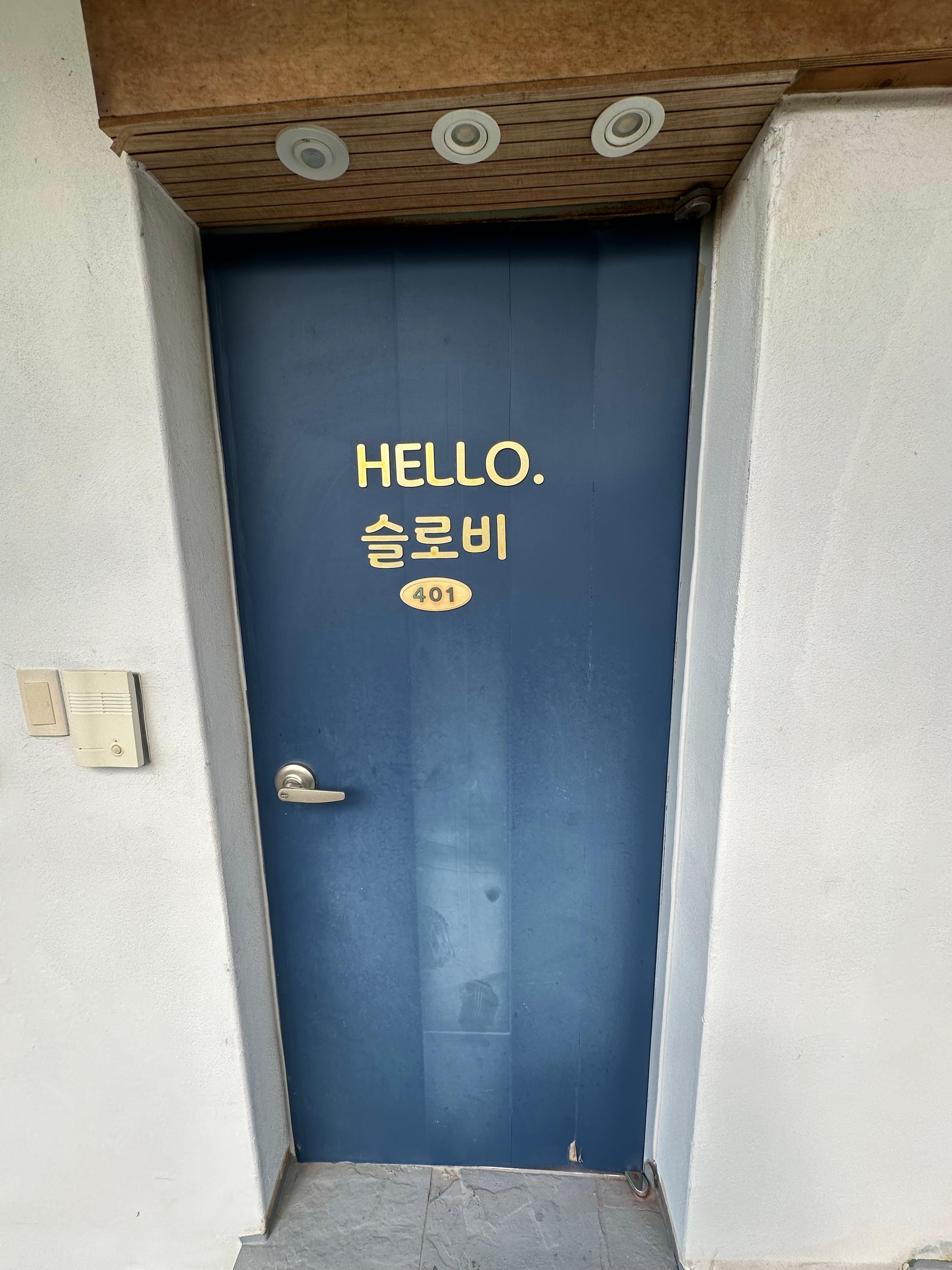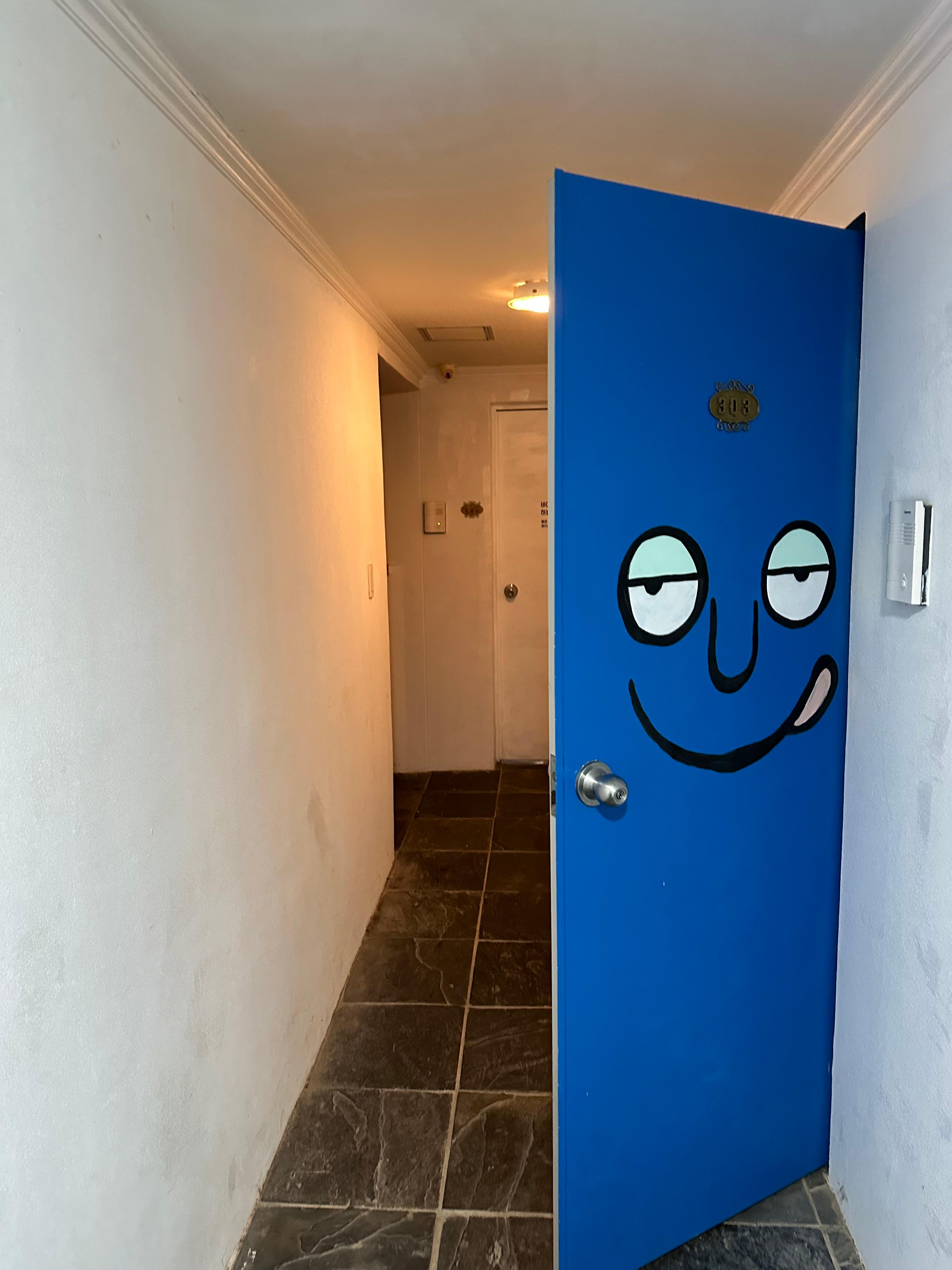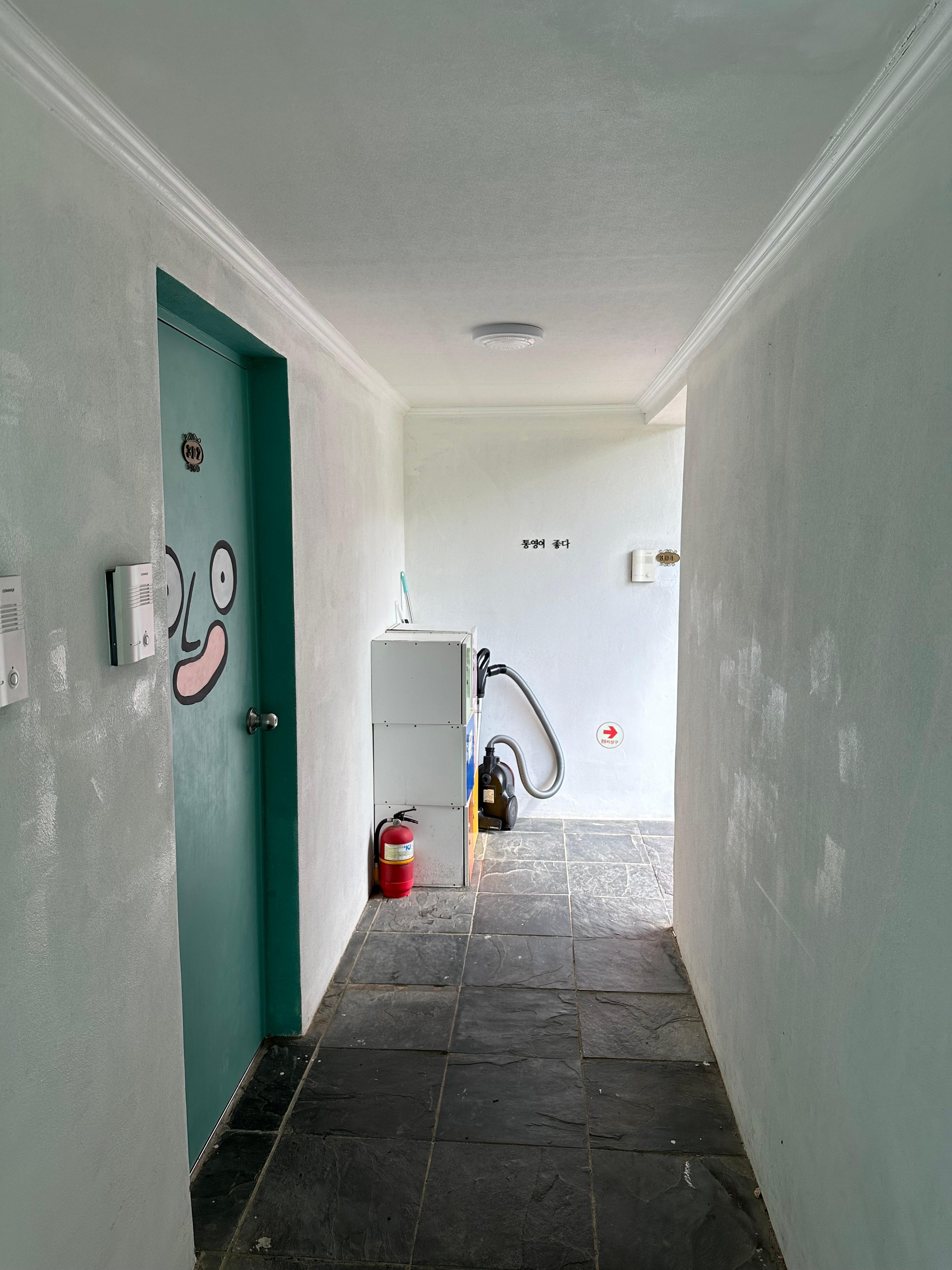 슬로비게스트하우스와 바로 윗 언덕에 위치한 보편적스테이 숙소는 사장님 두분이 가족관계이기 때문에 각 숙소에서는 비슷한 느낌을 받을 수 있습니다. 제가 배정받은 문앞에 그림은 보편적스테이에서도 볼 수 있었는데요.