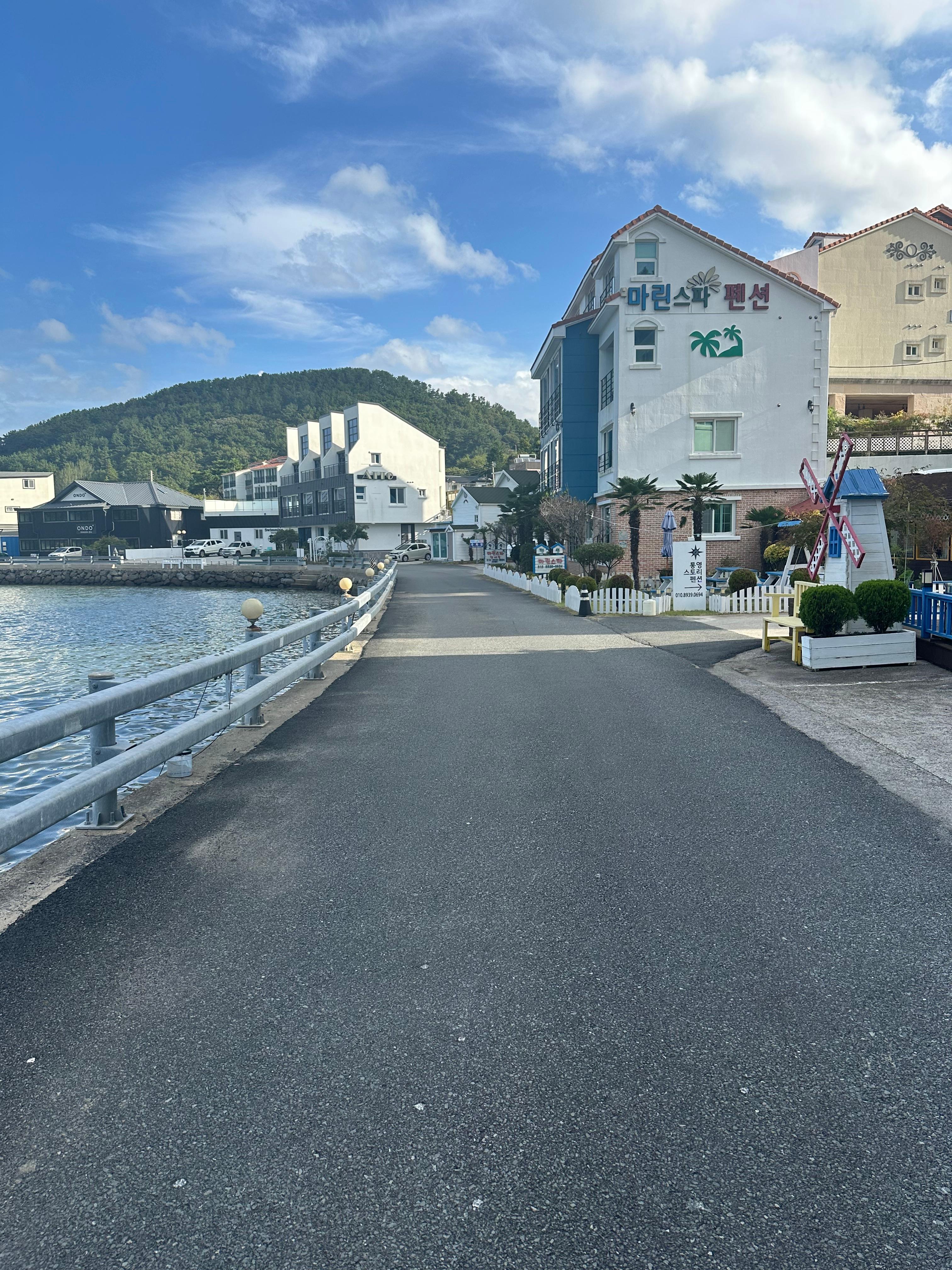아침 일찍 일어나서 조식을 먹기전까지 시간이 남아서 전날 오전과 밤에 걸었던 통영 산양읍 세포마을의 바다 옆을 걷기 시작했습니다. 아이폰의 광곽기능이 좋아져서 가까이에서도 넓게 찍을 수 있어서 정말 좋은 것 같습니다.