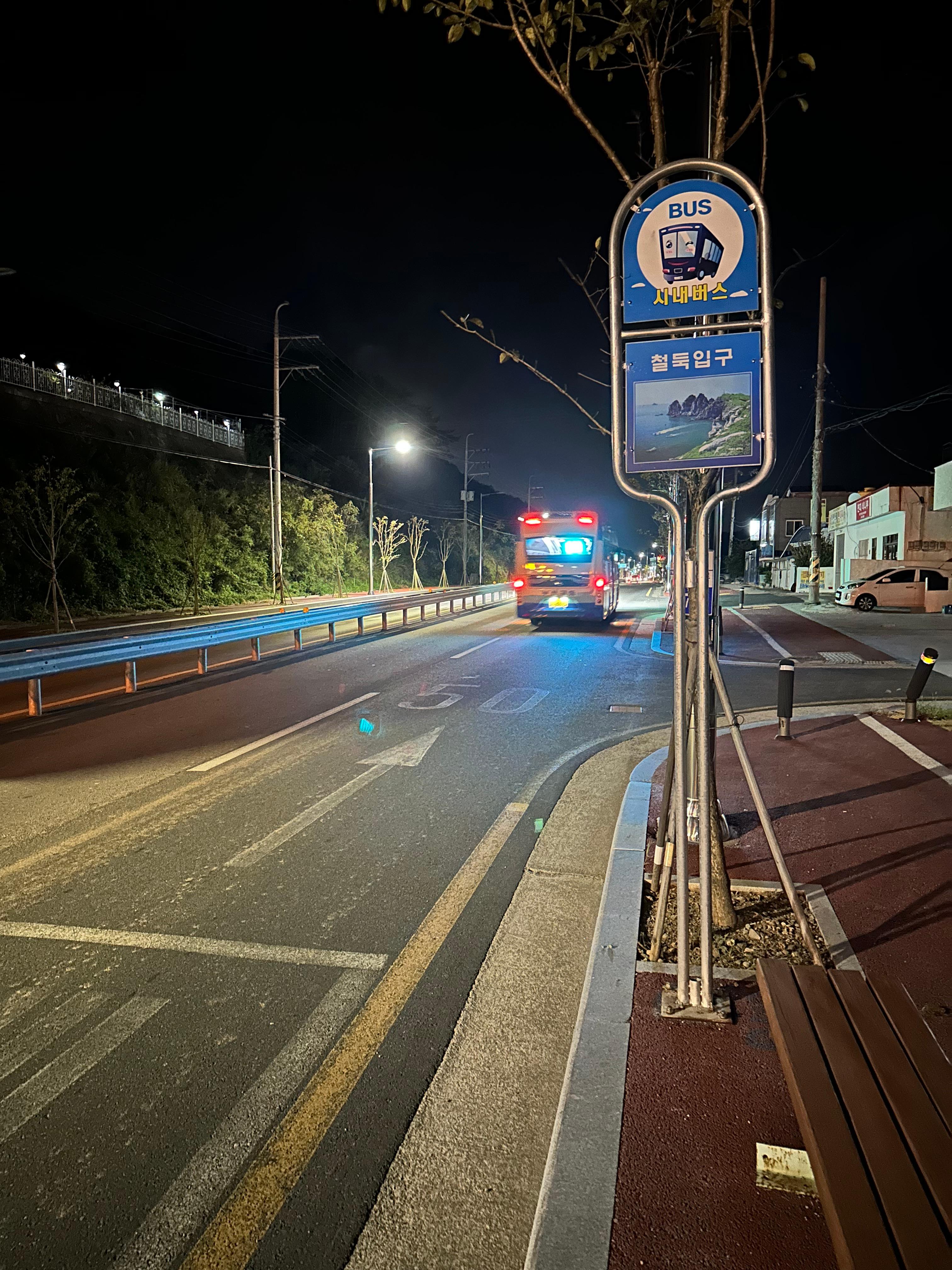 서호시장 근처에서는 슬로비게스트하우스에서 추천하는 장어맛집에 갔었습니다. 장어잡는날이라는 곳이었는데요. 보통 장어는 가격이 있는 편이지만 바다가 바로 앞에 잇던 장어잡는날 가게라 그런지 장어 가격도 비싸지 않았고 장어탕에도 장어가 많이 들어있었습니다. 특히 장어잡는날이기는 하지만 멸치회무침이라는 반찬이 있었는데요. 회와 장어를 무친 반찬이었는데요. 정말 맛있었습니다. 그렇게 장어탕과 멸치회무침을 맛있게 먹고 500번대 버스를 타고 슬로비게스트하우스가 있는 철둑입구 정류장에서 하차해서 슬로비게스트하우스로 걸어가기 시작했습니다.