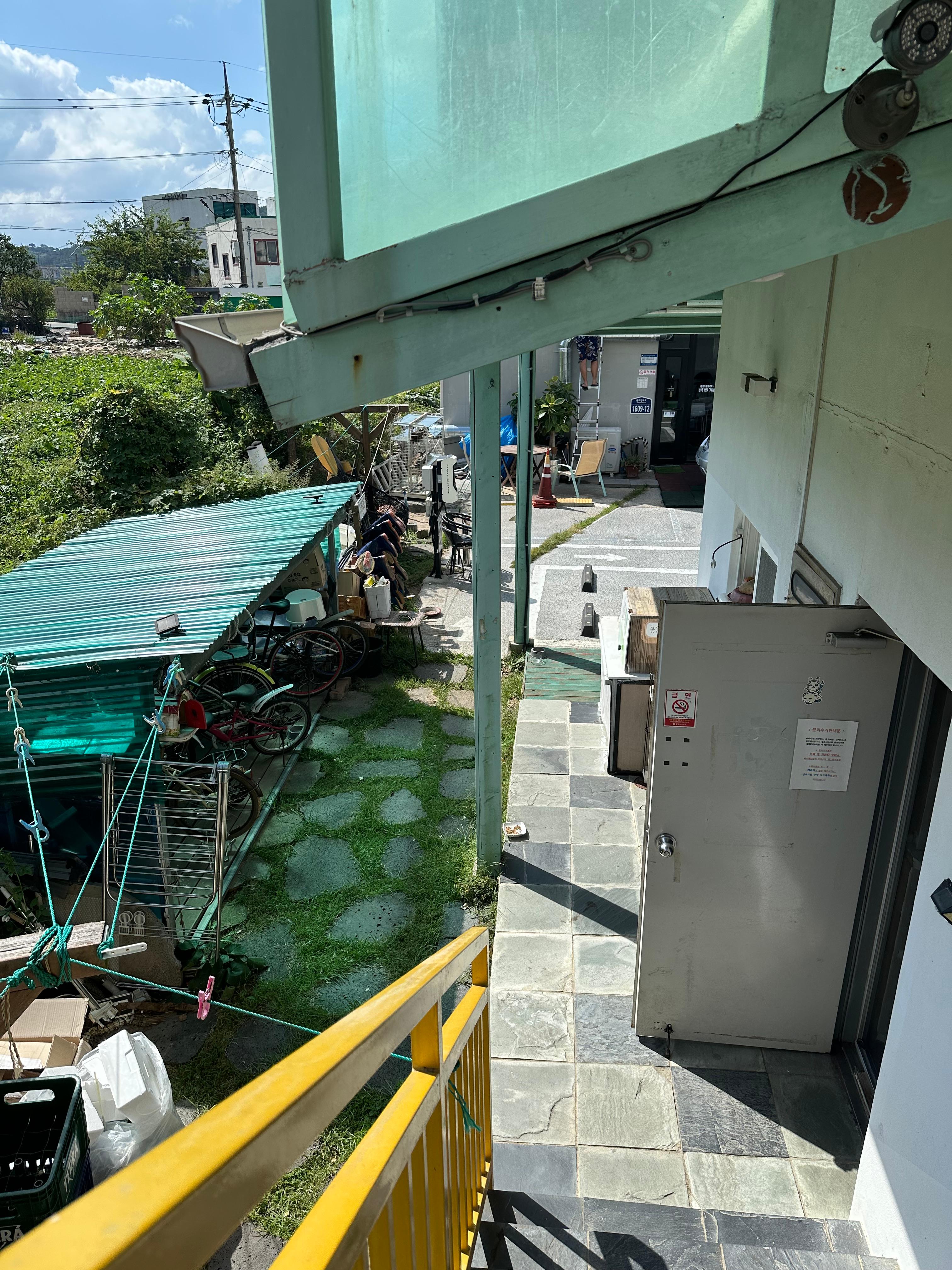 1일차 통영에 도착해서 맛있는 장어탕을 먹고나서 도착한 슬로비에서는 맥주를 마시며 슬로비게스트하우스가 있는 세포마을을 걷고 잠이 들어 꿀잠을 잤습니다. 그리고 아침에 일어나 침대에서 뒹굴뒹굴거리다가 슬로비게스트하우스 옥상에 올라왔는데요. 슬로비게스트하우스는 총 4층인 건물로 4층은 가족손님들이 이용할 수 있는 독채룸도 있습니다.토요일이라서 아직 독채룸을 이용하는 손님은 없었는데요. 토요일이 되면 슬로비게스트하우스는 거의 만실이 되기때문에 토요일 방문전 1-2주전에는 꼭 예약해야합니다. 특히 앞으로 날씨가 좋아질 성수기에는 한달전 예약도 필요해보입니다.