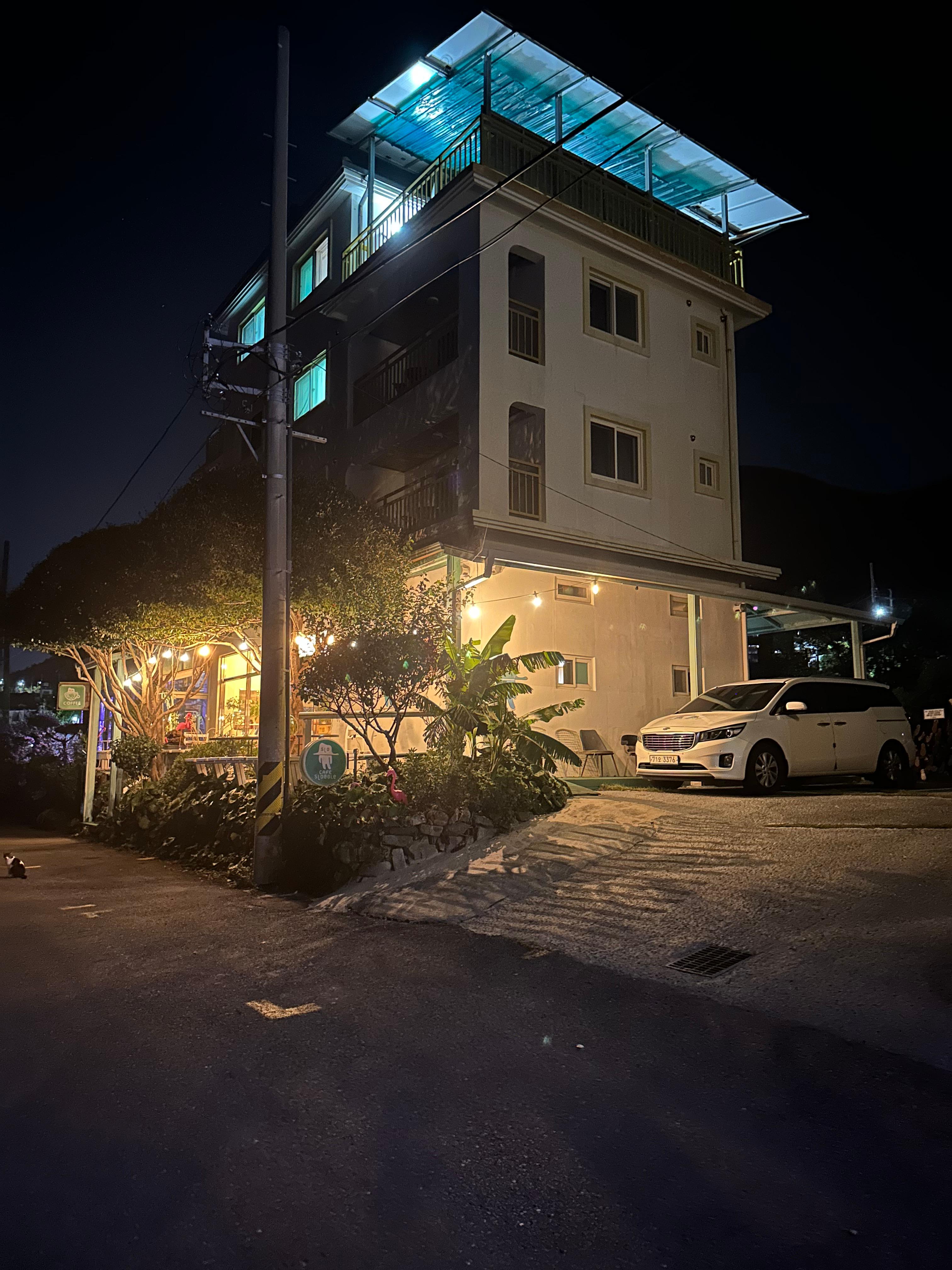 제가 배정받은 호실은 303호에 해당하는 2-3인실 룸이었습니다. 원래라면 슬로비게스트하우스를 이용하기 위해서 터미널에서 픽업 서비스를 통해 오는데요. 하지만 픽업서비스를 받지 않고 버스를 타고 오는 여행도 슬로비게스트하우스를 찾는 재미이기도 합니다. 슬로비게스트하우스는 시내에서 멀리 떨어진 곳으로 버스를 타고가다보면 바다와 산이 보이면서 도시에서 벗어나 힐링여행을 하는 느낌이 강력한데요. 그렇게 어두운 밤에 버스를 타고 도착한 슬로비게스트하우스에서 열쇠와 수건을 받아 체크인을 마치고 방으로 올라가기 시작했습니다.