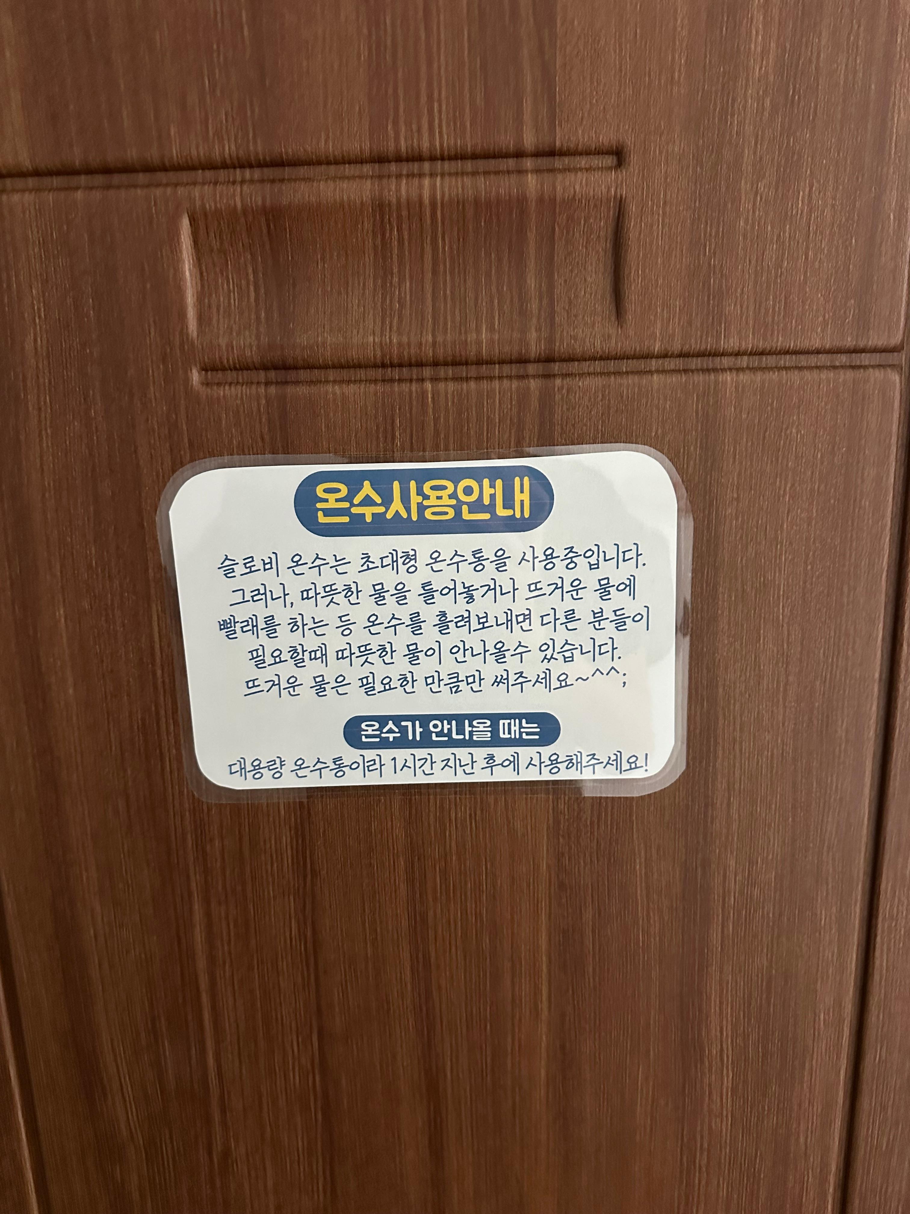 - 따뜻한 물을 틀어놓거나 뜨거운 물에 빨래를 하는 등 온수를 흘려보내면 다른 분들이 필요할 때 따뜻한 물이 안나올 수 있다고 해요.