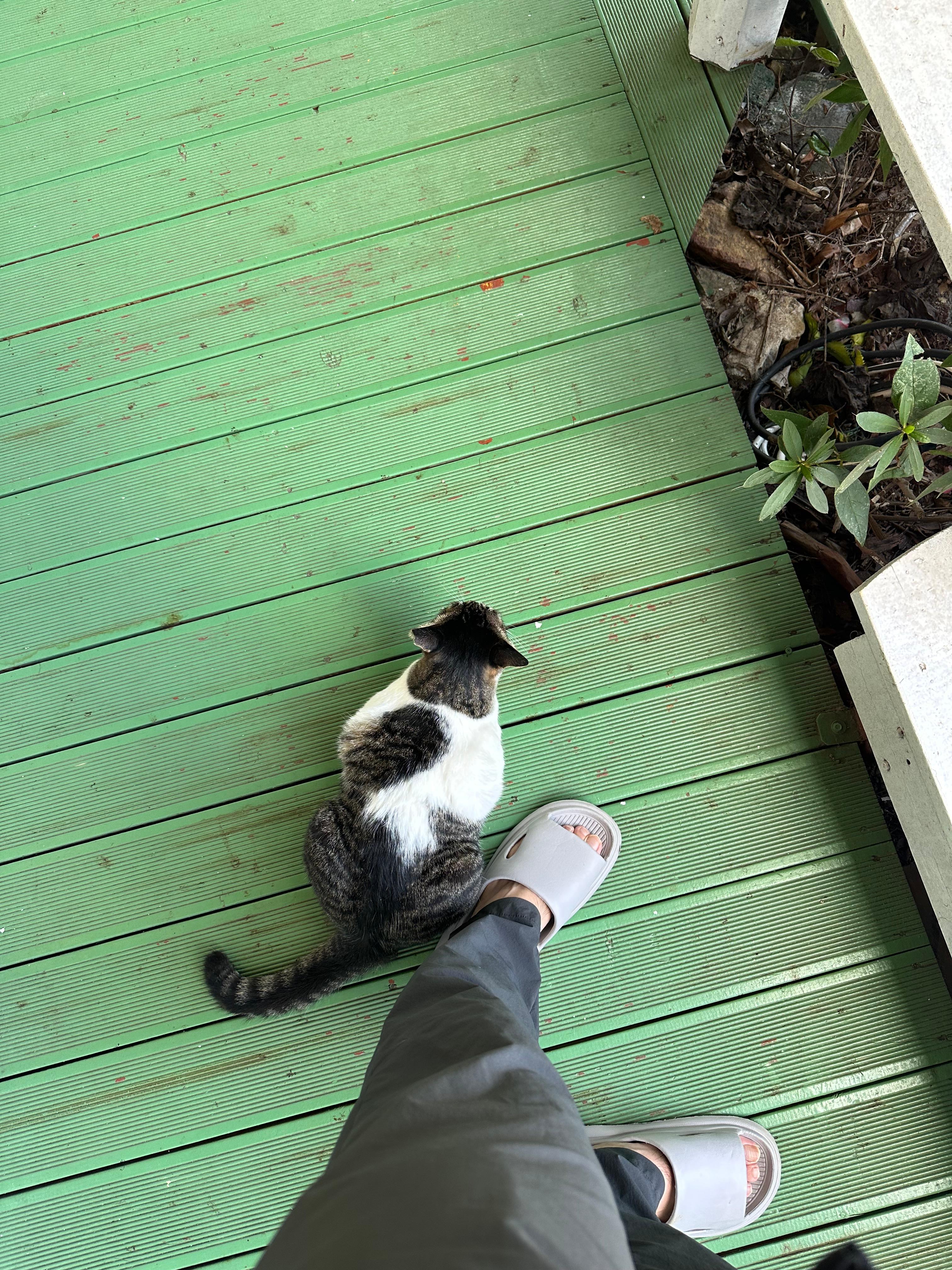 지난 2024년 9월에는 나비와 지니 고양이보다는 새로운 고양이만 볼 수 있었는데요. 이녀석한테 눈길이 가다보니 지니와 나비를 찾지 못했던거같습니다. 사람을 잘 따르다보니 만져주고 놀아주다보니 떨어지지 않으려는 개냥이의 모습을 볼 수 있었습니다.