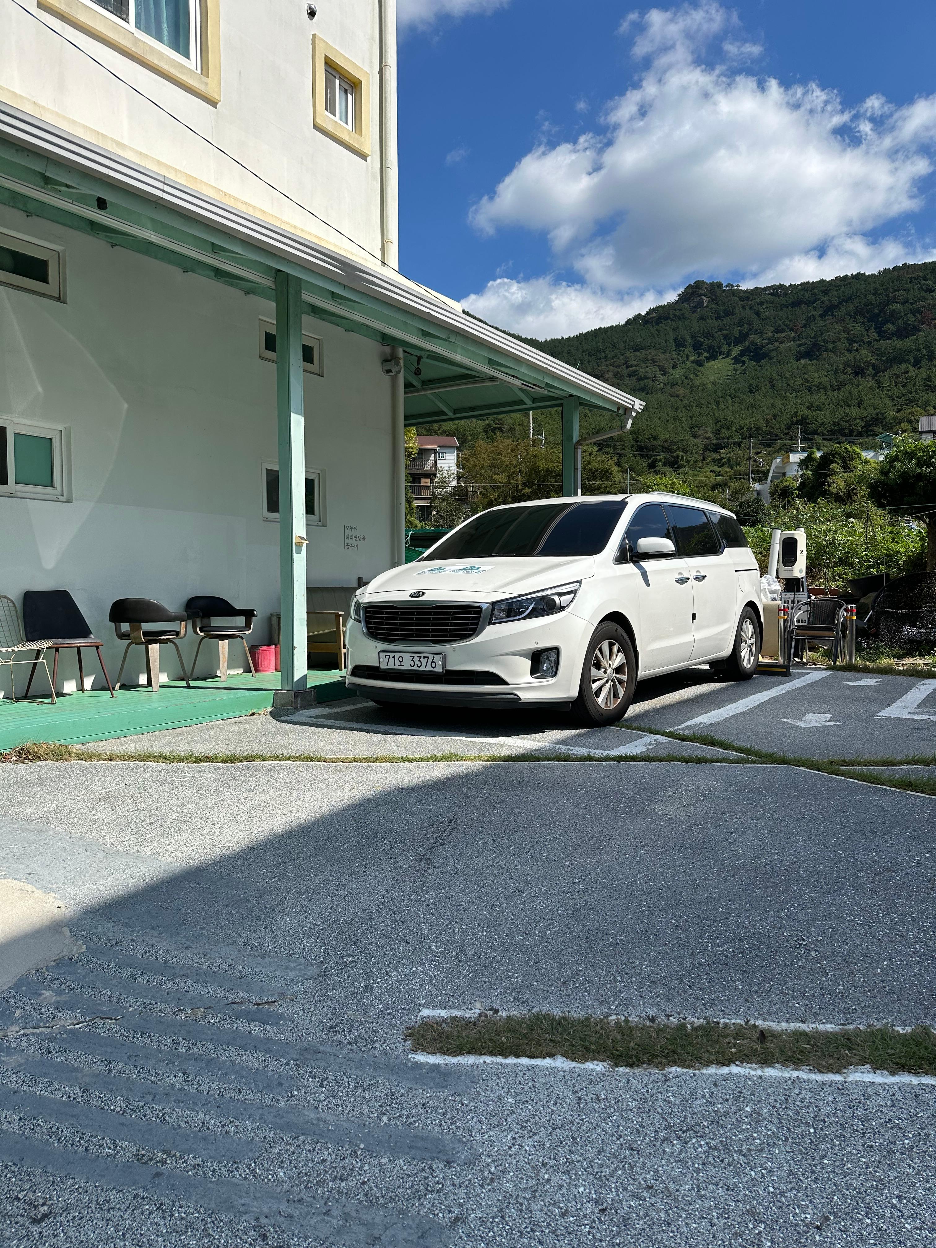 슬로비게스트하우스가 있는 세포마을을 걷다가 남은 시간은 숙소에서 시간을 보내며 아침과 점심으로 무엇을 먹을까 고민하다가 슬로비게스트하우스에서 추천받은 신가네 국밥을 가기로 했는데요. 슬로비게스트하우스의 픽업서비스인 택시보다는 저렴하고 버스보다는 빠른 픽업차량을 타고 신가네국밥으로 이동했습니다.