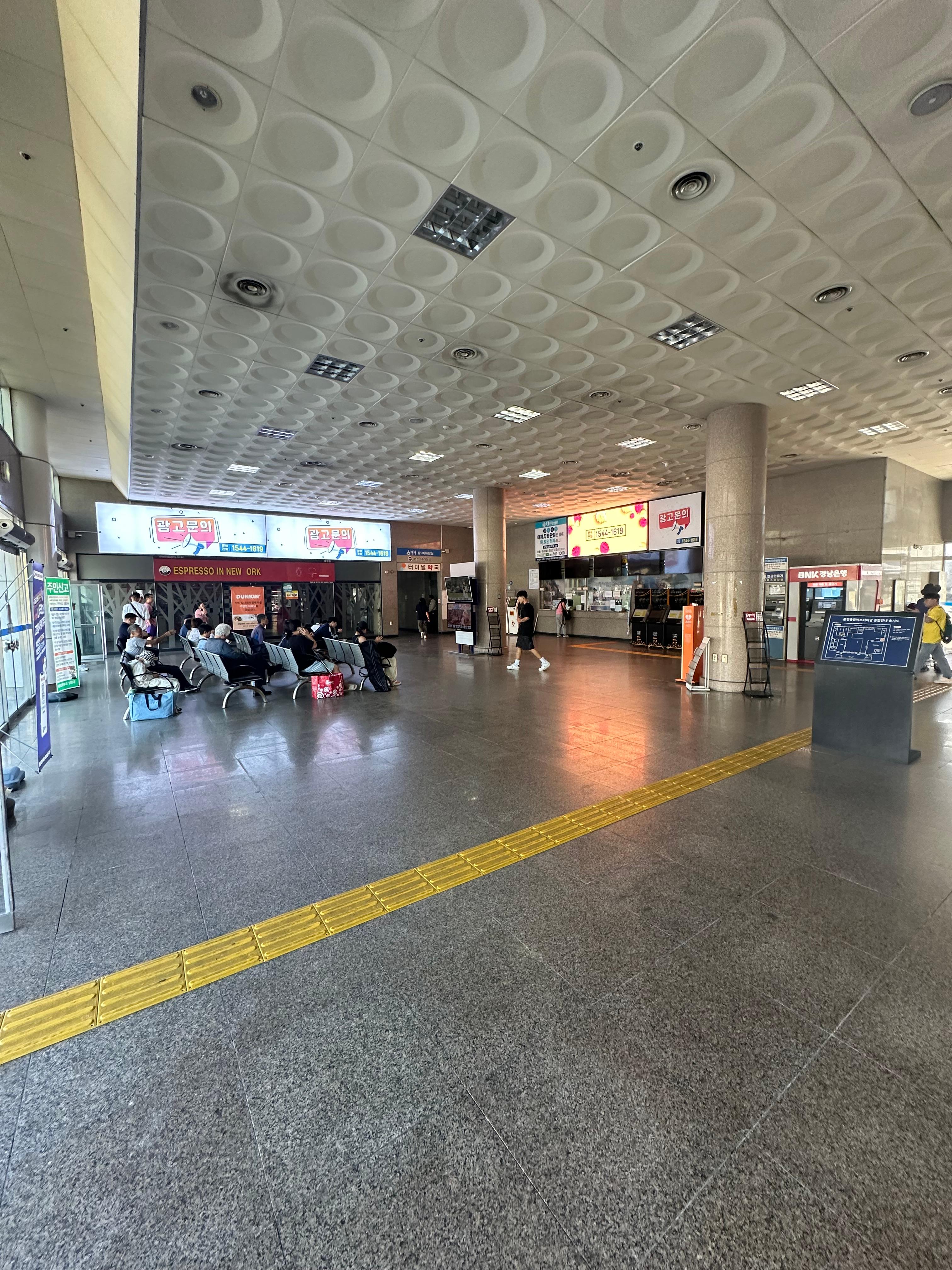 통영 터미널은 서울 고속버스터미널이나 안산버스터미널보다 작은 평범한 시골의 터미널 크기였습니다. 그래도 편의점과 무인 매표시설이 있는 현대적인 터미널이었습니다. 요즘은 인구 절감 문제 뿐만 아니라 IT 디지털 기기 등장으로 인해 전세계적으로 무인 매표가 들어서고 있는데요. 관광지로 유명한 통영에서는 당연히 무인 매표가 없으면 이상할 정도이긴합니다. 통영보다 작은 터미널의 경우 아예 무인 매표시설도 없는 경우가 있는데요.