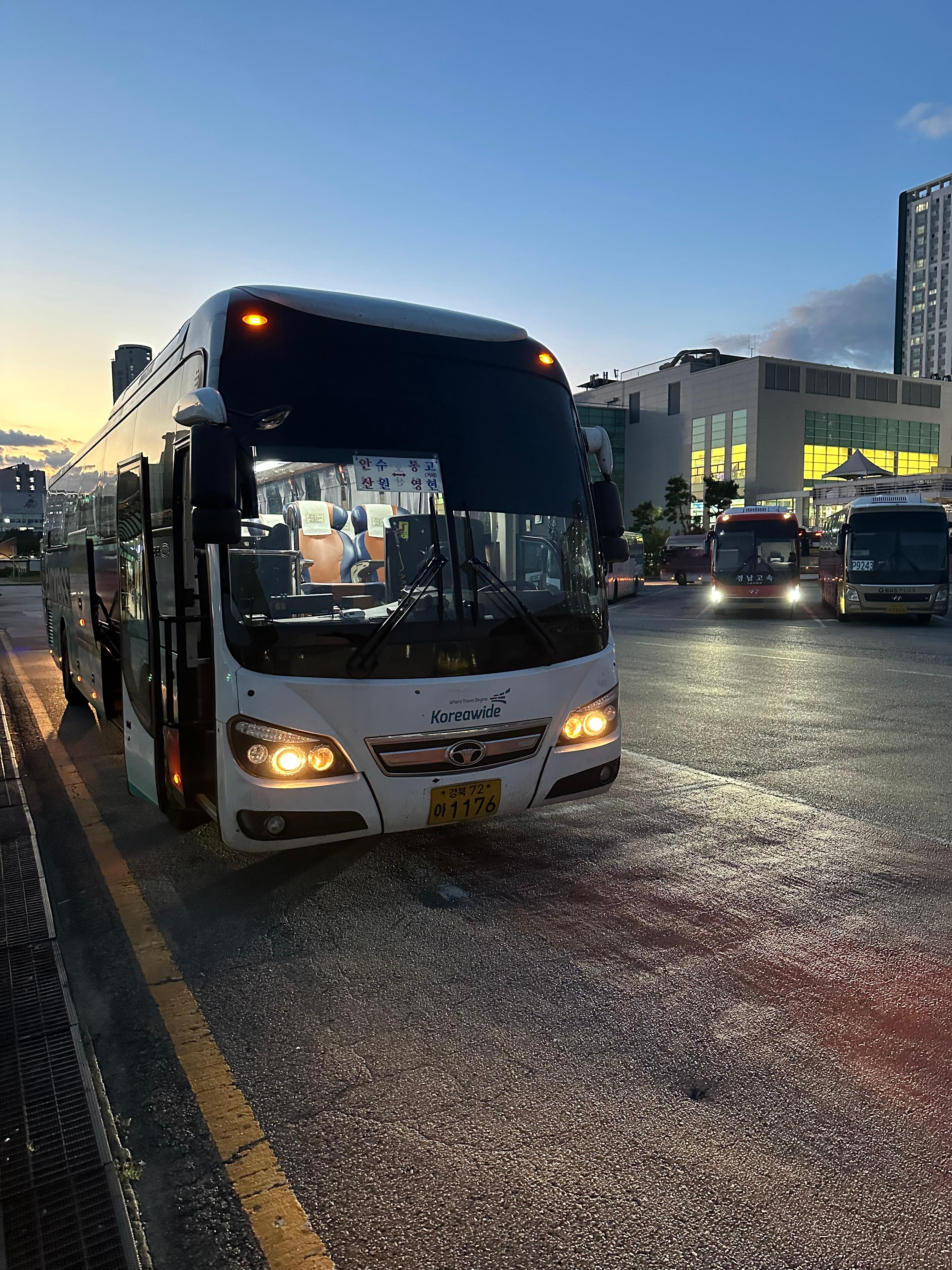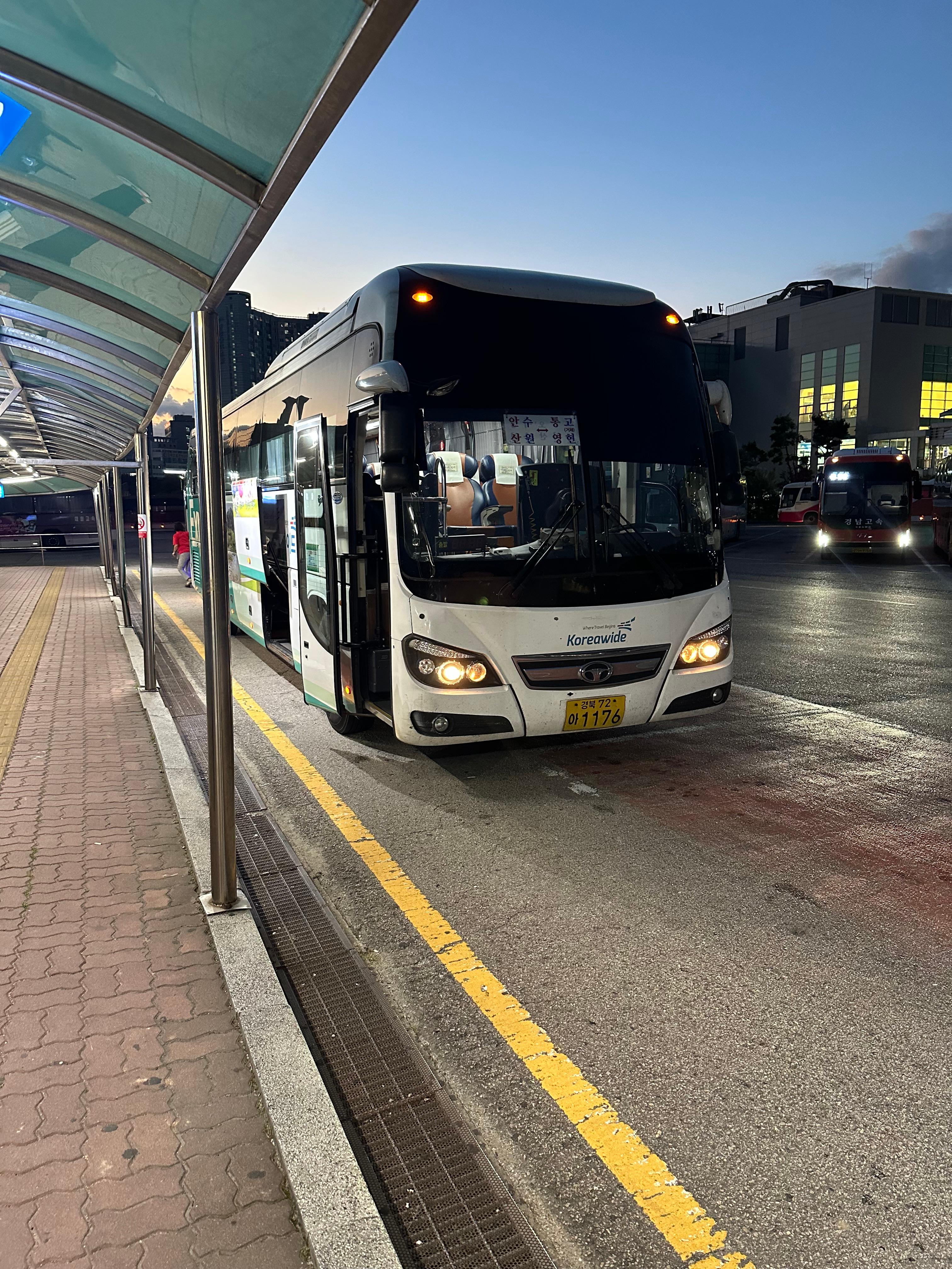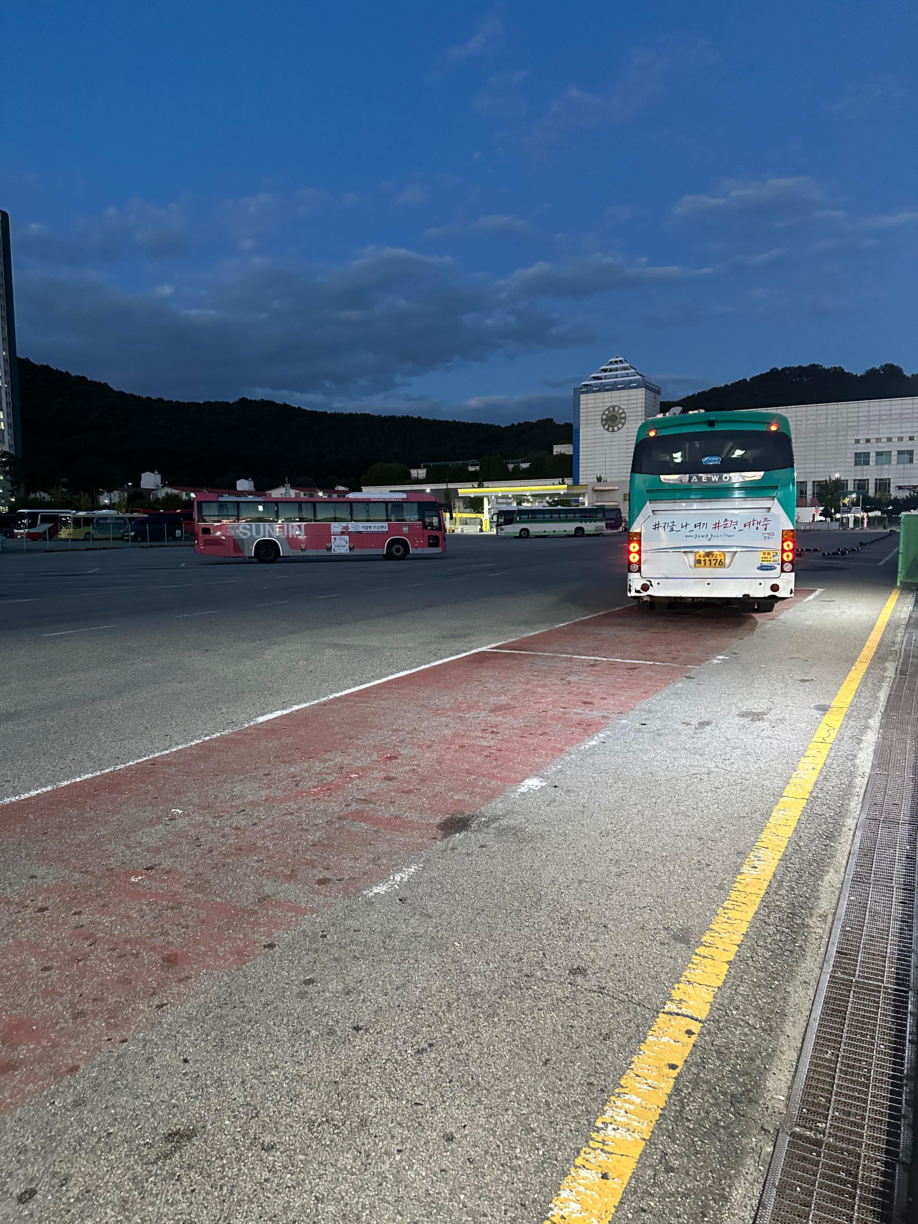 안산에서 통영을 갈 때는 낮시간에 탑승해서 늦은 밤 통영에 도착했다면 통영에서 안산으로 올 때는 낮시간에 통영터미널에 탑승 후 해가지는 19시 넘는 시간에 안산터미널에 도착했습니다. 그렇게 안산까지 무사하게 데려다준 코리아와이드 경북고속버스는 안산에서 막차 운행은 없는건지 어디론가 떠나는 모습이었습니다. 다시 통영을 가는 것일까요. 아니면 통영이 아니라 안산에서 다른 노선으로 운행하는지는 모르겠습니다.