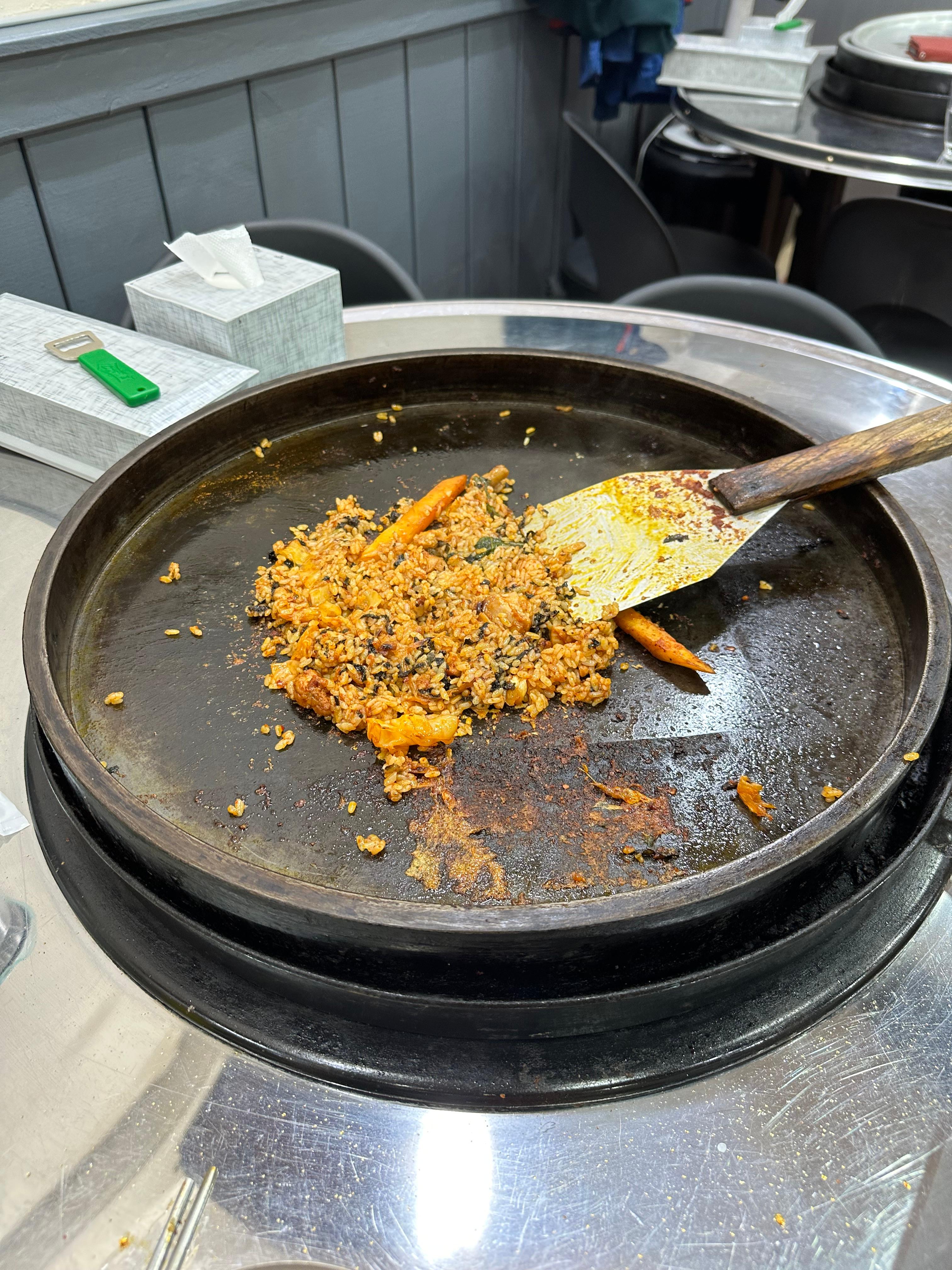 어렸을 때도 집앞에 포차에서 떡볶이를 구매해서 집으로 가져오거나 혹은 집에서 가족들과 떡볶이 먹고나서 떡볶이만 먹기에는 그래서 밥까지 먹으면 정말 배부르게 잘먹어쓴데요. 특시 식사 시간에 먹을 경우 밥까지 함께먹으면 정말 맛있었던 기억이 있었습니다. 어른이 되어서도 이렇게 닭갈비 다먹고 밥까지 먹으면 정말 든든하네요.