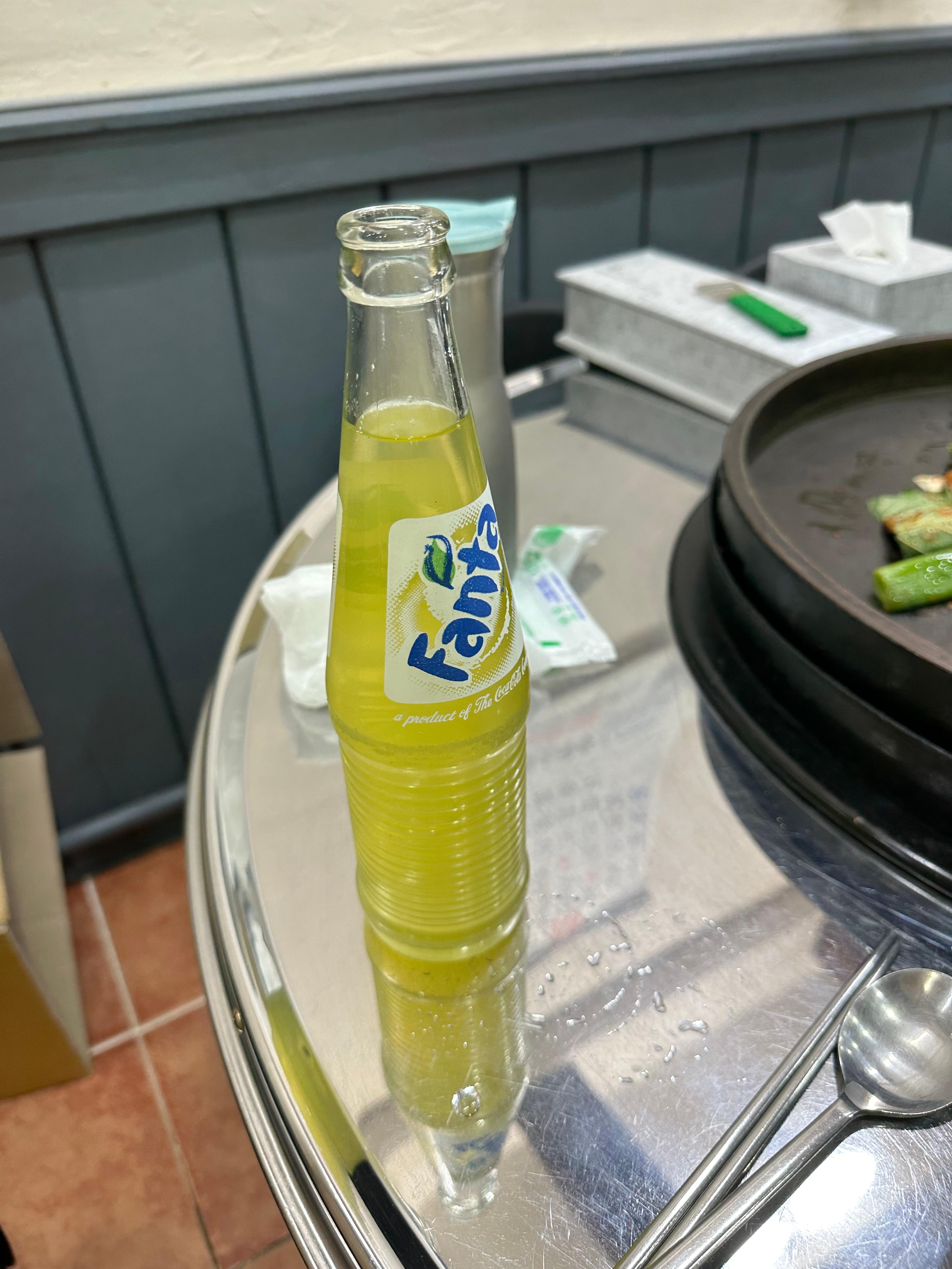 몇년전에 삼악산호수케이블카 때문에 왔을 때는 직접혼자서 해먹었는데요. 그래도 혼자하는것보다 직접하는게 더 맛있긴 합니다. 반찬으로는 무와 동치미, 상추와 마늘 뭐 그렇게 나왔습니다.아무래도 고기 종류이다보니 물만 먹는것보다는 소주나 맥주랑 같이 먹느넥 좋았는데요. 예전에 아는 형과 왔을 때는 같이 소주와 맥주도 먹었는데 혼자이다보니 음료 환타 한병만 주문해서 마셨습니다.