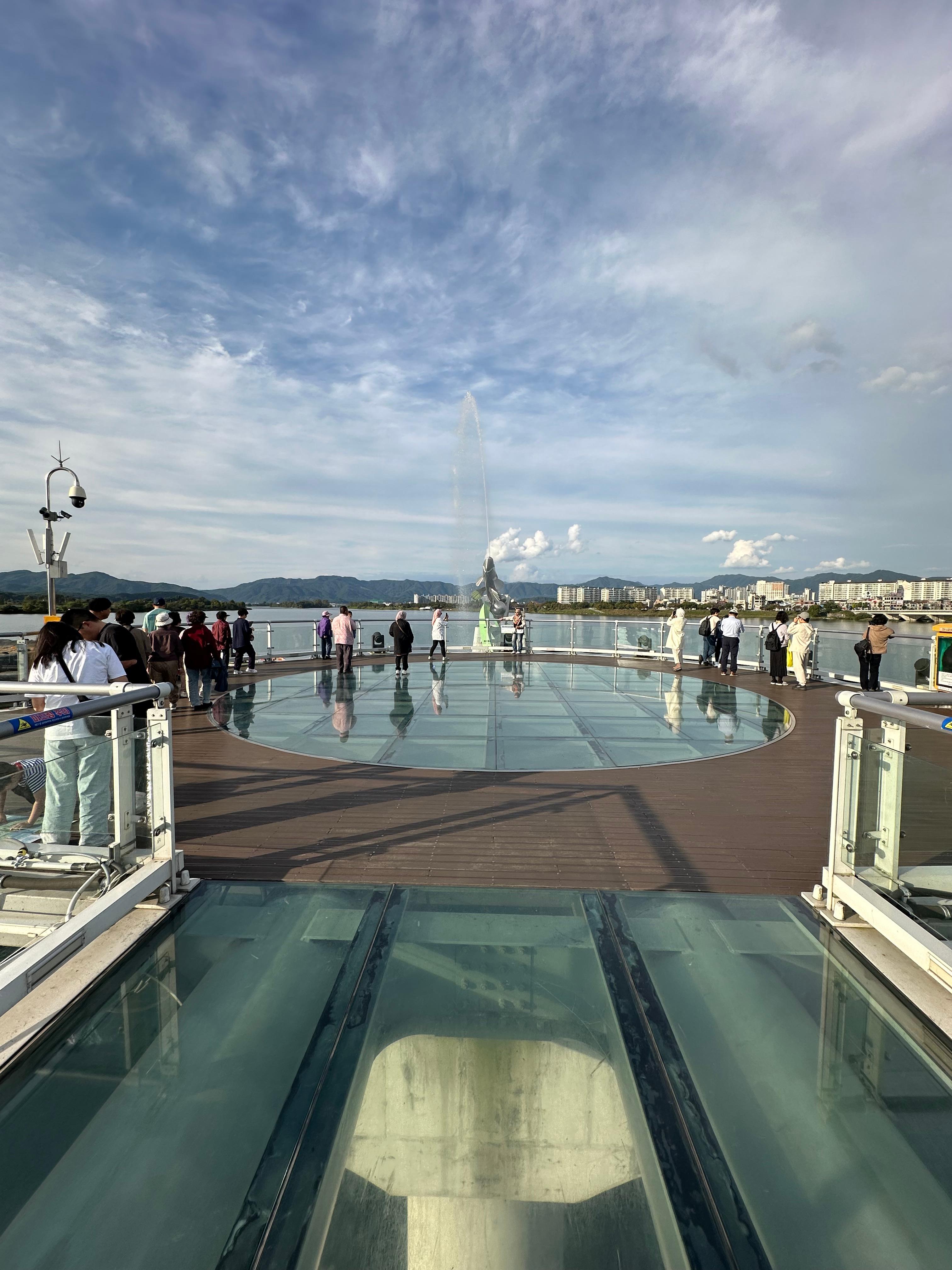 춘천 소양강 스카이워크 전망대는 그렇게 길지 않은 짧은 유리 도로 전망대입니다. 그래서 가볍게 한번 걸었다가 다시 돌아오는 방식인데요. 전국의 스카이워크를 다녀보아도 아무래도 바닥이 뚫린 다리 전망대는 쳐다보면서 지나면 무섭긴합니다. 혹시라도 유리가 깨진다면 소양강 위로 떨어지는것인데요. 아찔합니다.