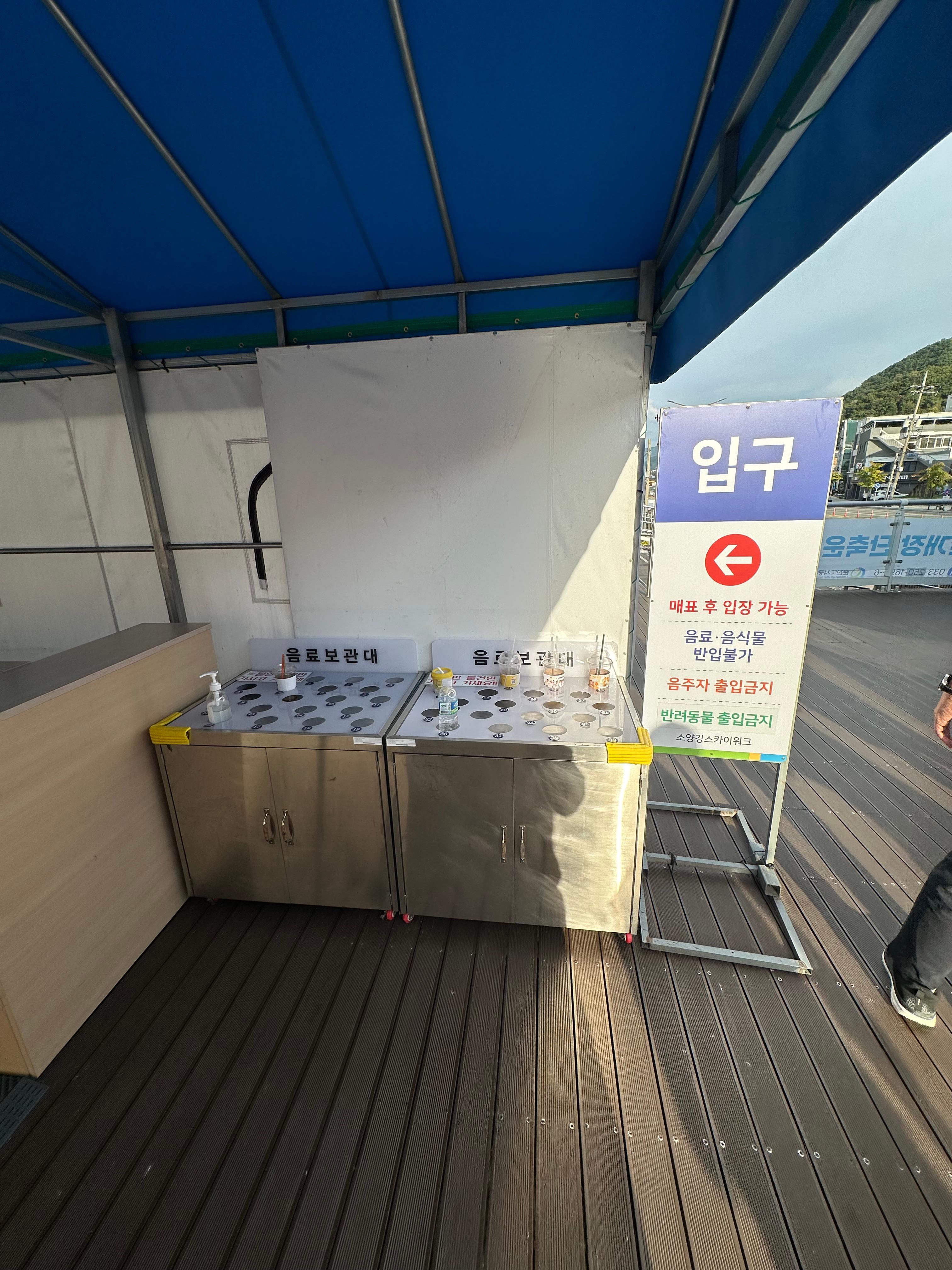 스카이워크 안으로 들어갈 때는 마시던 음료는 들고 입장 할 수 없었습니다. 입구 앞에 음료 보관대 놓고 들어가야합니다. 스카이워크라고 하면 바닥이 유리로 되어있어서 바다 아래가 보이는 전망대인데요. 그동안 저도 포스팅을 통해 전국의 포스팅을 다녀온적이 있었습니다.