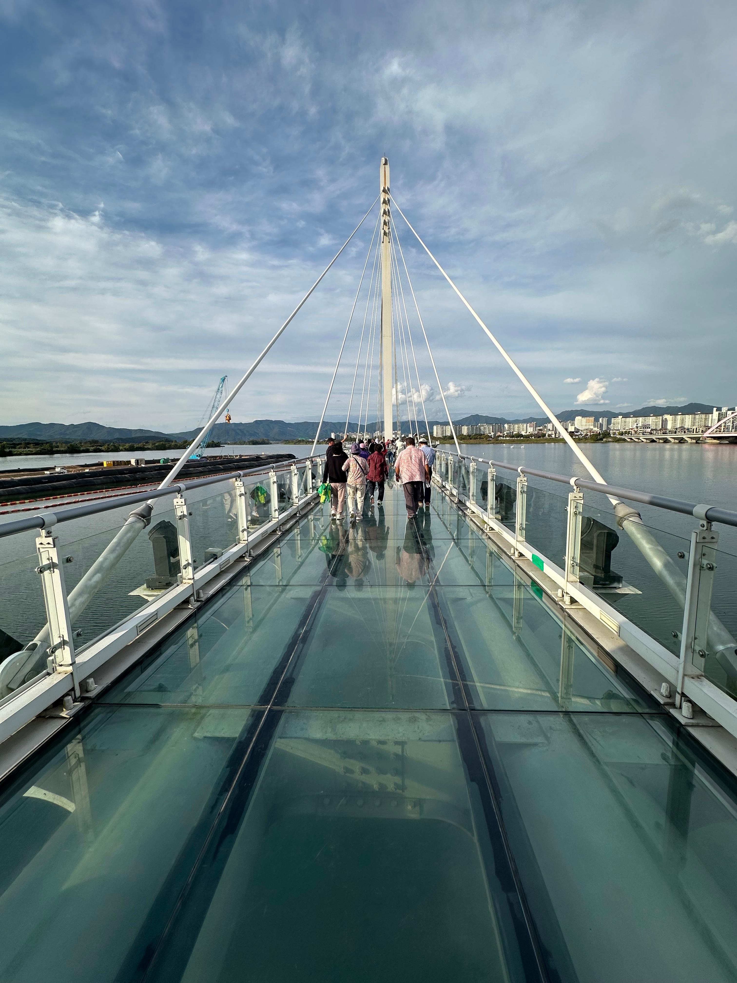 요즘에는 이러한 스카이워크 형태를 다리 뿐만 아니라 케이블카에서도 볼 수 있는데요. 특히 여수해상케이블, 부산송도해상케이블카, 파주민통선케이블카에서는 탑승료를 조금 더 지불하면 바닥이 뚫린 크리스탈 케이블카도 탈 수 있었습니다. 처음 이용한다면 약간 무서울 수 있지만 많이 이용한다면 익숙해지긴 합니다. 하지만 바닥이 뚫려있어서 익숙해져도 뭔가 걷기에는 떨리긴 합니다.