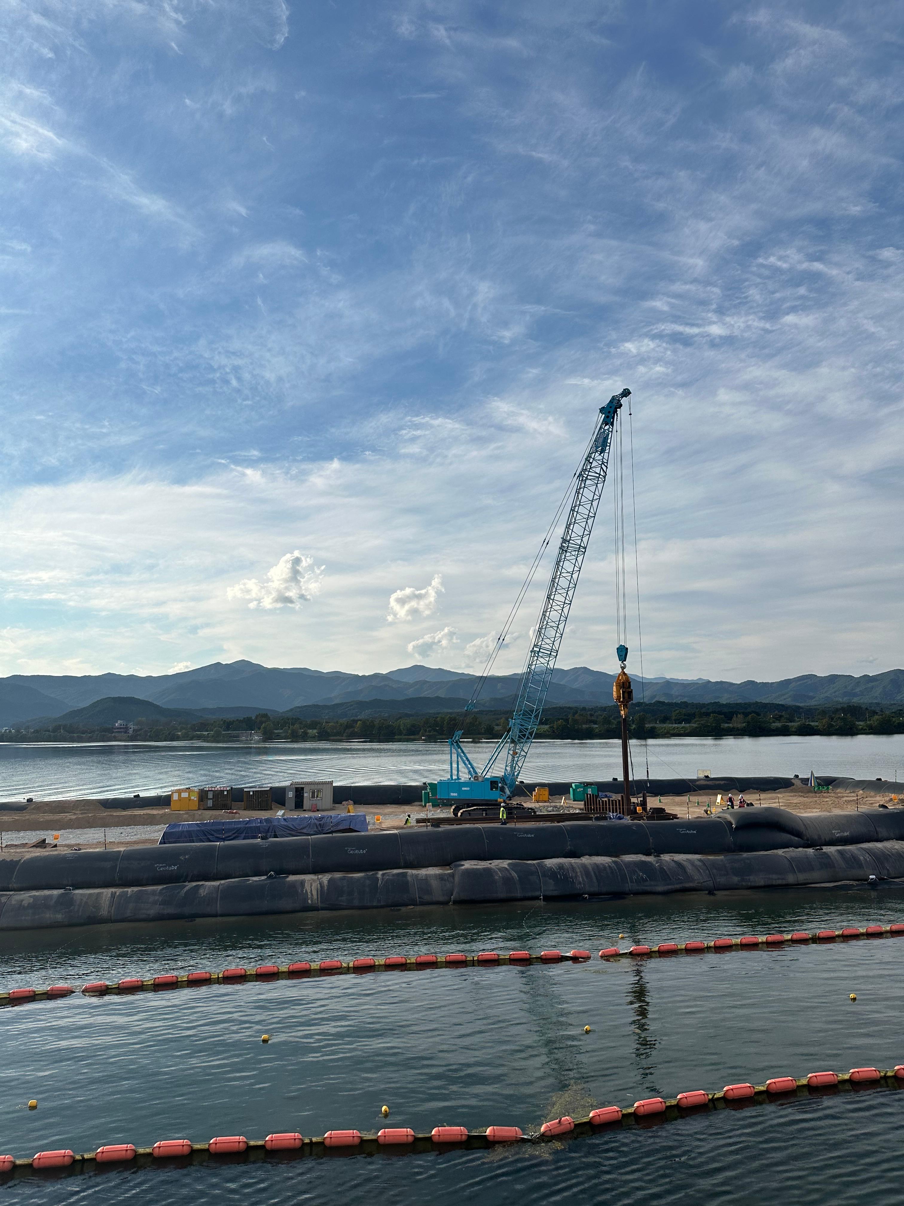 포스팅하면서도 전해드리겠지만 춘천역에서 속초까지 고속열차 선로 공사 작업입니다. 춘천역부터 소양강을 지나서 화천과 양구를 지나 속초까지 간다고 합니다. 원래 속초는 기차가 다니지 않아 버스나 자동차로밖에 갈 수 없는데요. 하지만 몇년후면 강릉에서도 속초를 갈 수 있고 춘천에서도 속초를 갈 수 있게 된다고 합니다. 춘천역에서 소양강은 다리가 아닌 해저터널 즉 바다 아래로 지나간다고 하며 그 공사현장을 보는데 신기했습니다.
