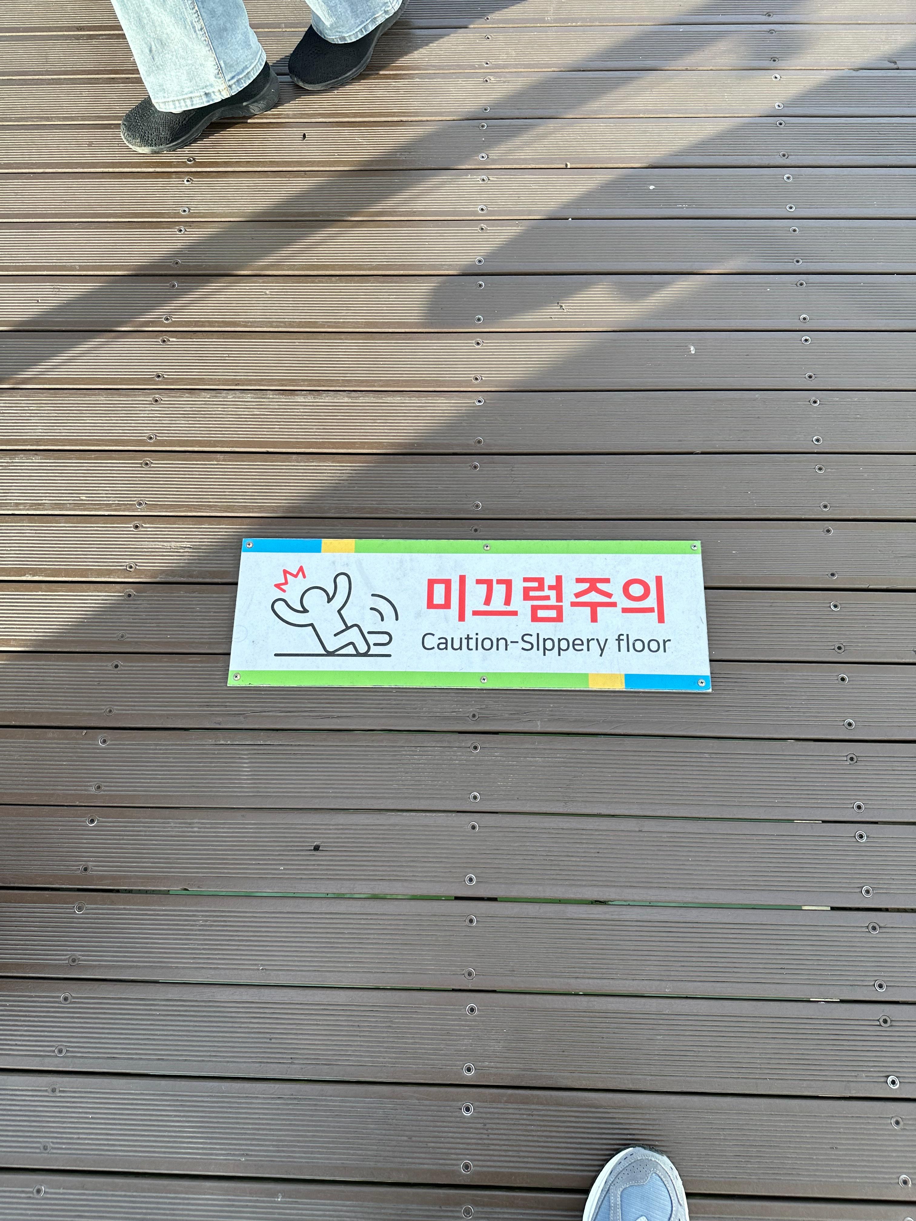 2018년 10월에 올 때는 소양강 스카이워크로 들어갈 때는 덧신을 운동화에 씌워서 들어갔는데요. 이번에 들어갈 때는 아무것도 씌우지 않고 스카이워크로 들어갔습니다. 아무래도 유리로 되어있기 때문에 미끄러질 수 있기 때문에 들어가는 입구에는 신발을 털 수 있는 바닥이 있었습니다. 신발을 털고 미끄러지지 않도록 조심스럽게 입장했습니다.
