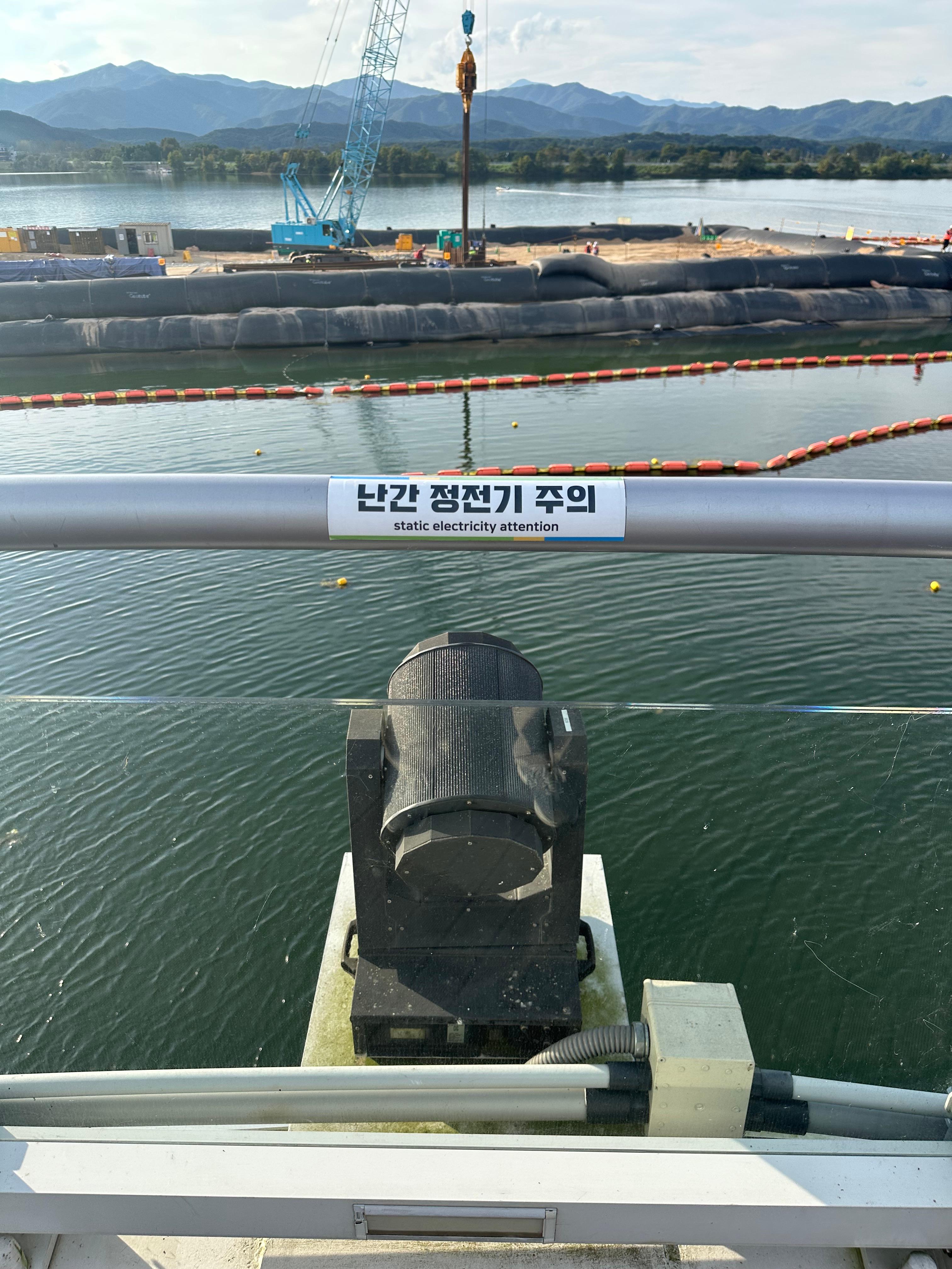 춘천 명동닭갈비에서 닭갈비를 먹고 16번 버스를 타고 15분정도 걸려 당간지주입구에서 하차 하차해서 신호 건너면 소양강 스카이워크에 도착 할 수 있습니다. 실제로 춘천역에서 소양강스카이워크까지는 가볍게 걸어서 이동할 수 있습니다. 이날도 10월의 가을날씨로 푸른하늘을 볼 수 있었습니다. 소양강 스카이워크로 가는데 멀리서 소양강대교가 보이고, 반대편에는 소양강 위에 무언가 건설하는 모습이 보였습니다.