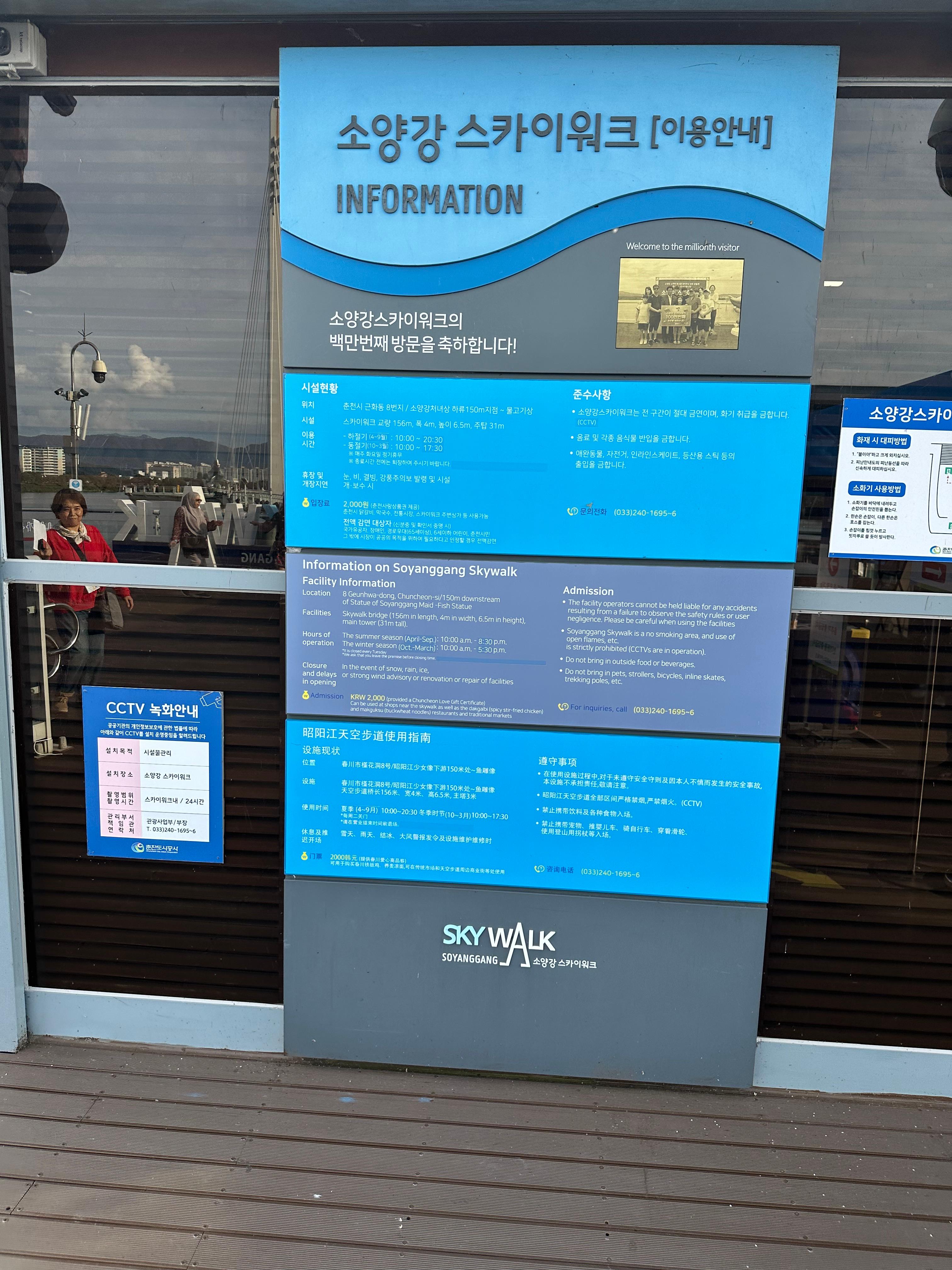 소양강 스카이워크는 단순히 소양강 일부분을 걸어갈 수 있는 바닥 아래로 소양강이 보이는 이름 처럼 하늘 위를 걷는 다리를 의미하는데요. 그래도 유리이기 때문에 몇가지 주의사항이 있었습니다. 유리가 깨져서 바닥으로 떨어지고 그런일은 없지만 아무래도 일반 다리는 아니기 때문에 주의사항을 한번씩 읽고 가면 좋을 거 같습니다.