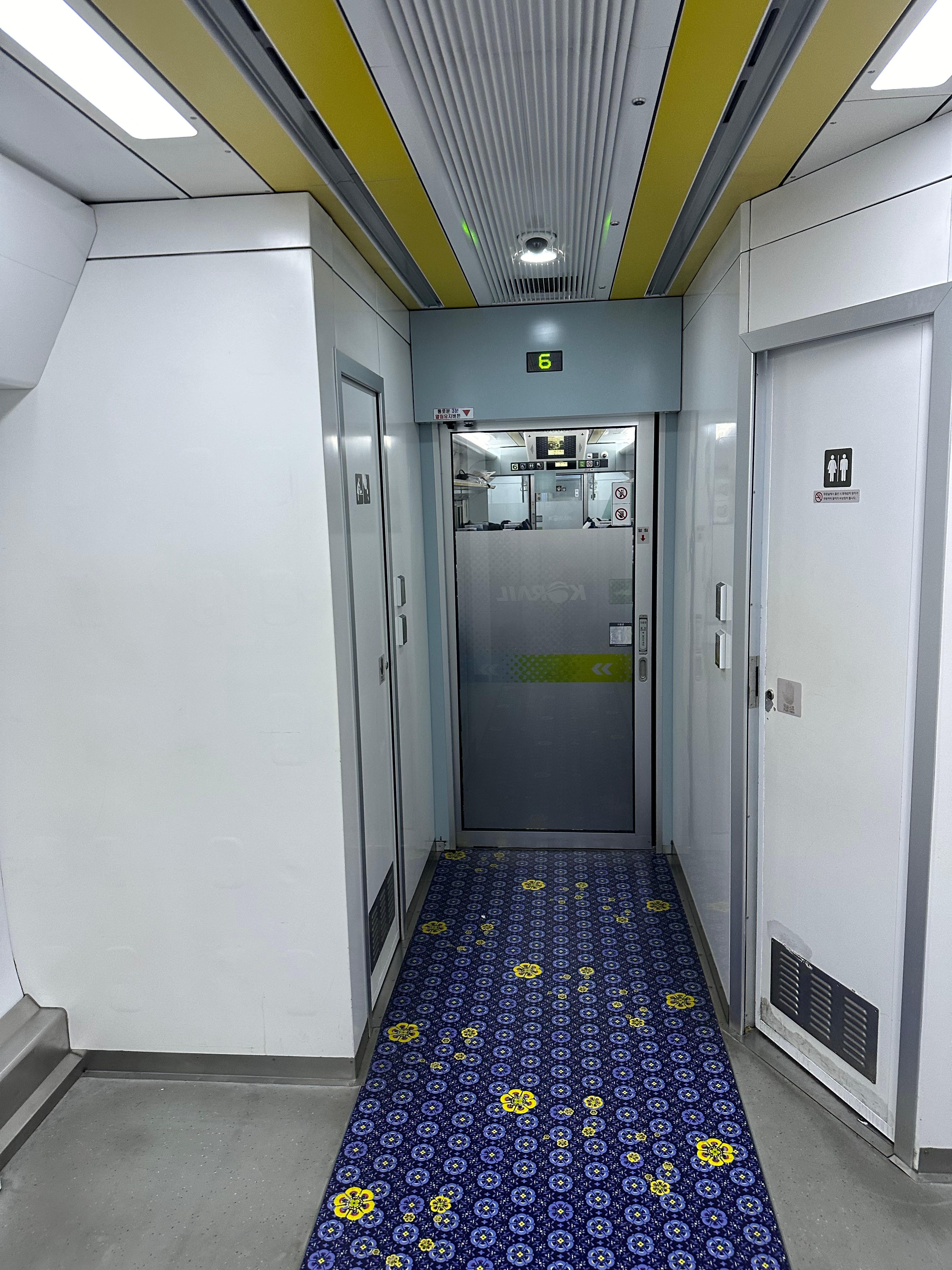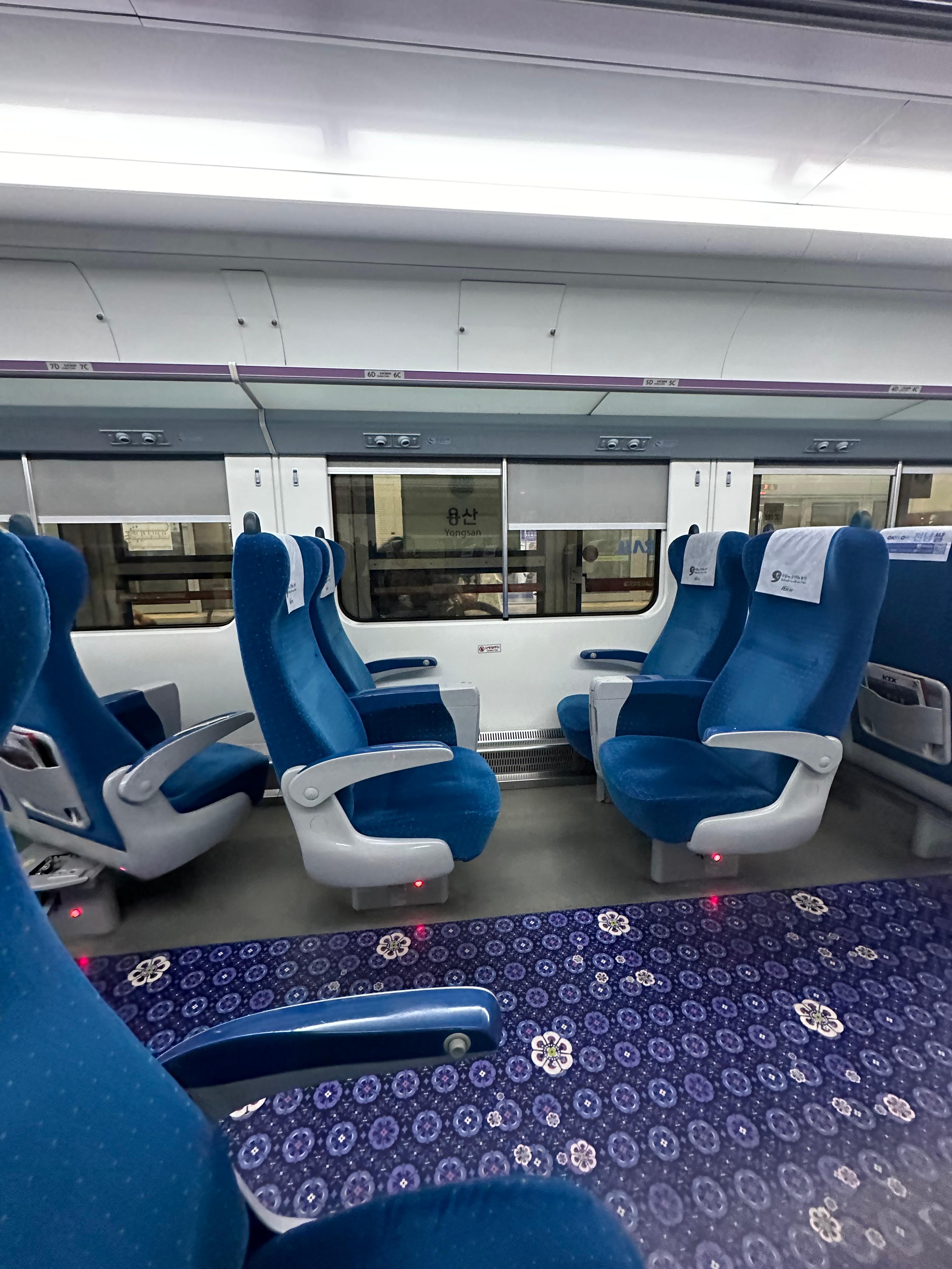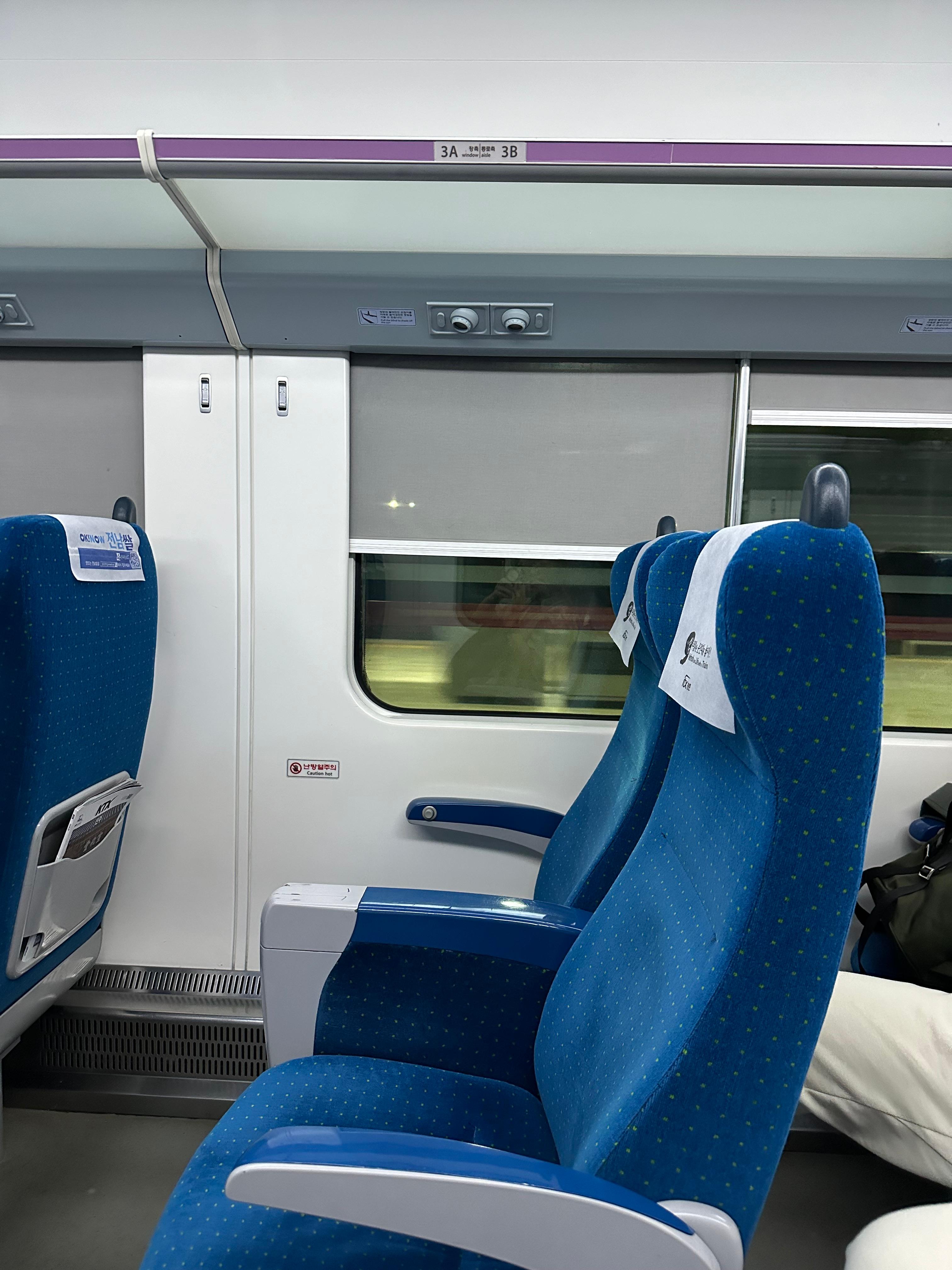춘천에서 서울 용산으로 돌아갈 때는 2층 기차가 아니라 일반열차와 동일한 1층석만 있는 칸에 탔는데요. 우리가 평상시 타던 SRT, KTX, ITX 마음, ITX 새마을호와 같은 동일한 탑승칸, 좌석의 모습을 볼 수 있습니다. ITX 청춘열차도 좌석마다 창문이 분리 되진 않았지만 창문 가운데 칸막이가 있어서 앞사람과 뒷사람이 서로 블라인드를 내리려고 전쟁을 하지 않아도 되게끔 만들어졌습니다.