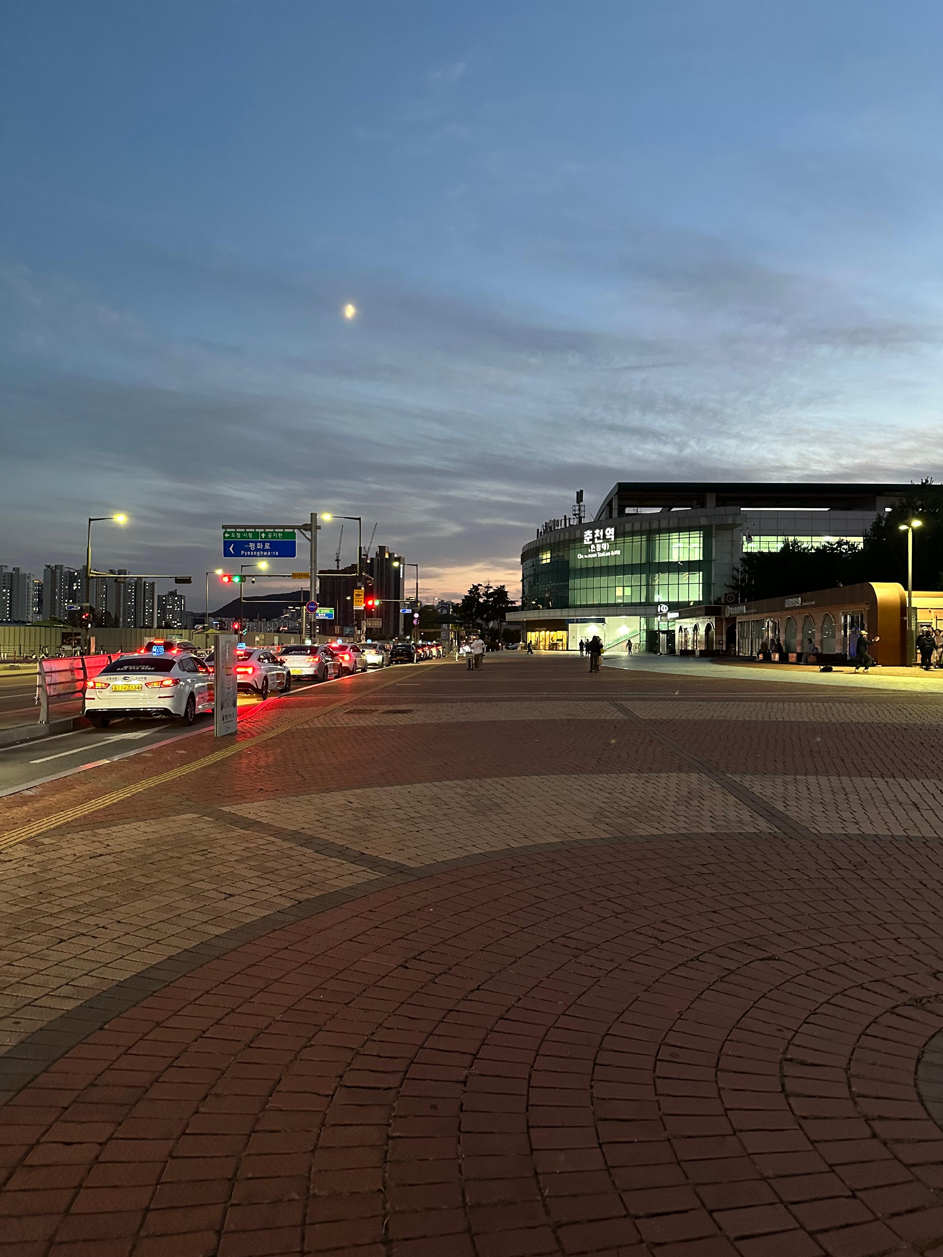 어둠이 찾아온 시간임에도 불구하고 춘천역 앞에는 택시들이 줄을 서서 기다렸습니다. 대체공휴일이 수요일에 걸리는 바람에 그렇게 춘천에는 관광객이 많이 없기도 했는데요. 춘천역보다는 남춘천역이 도시 분위기가 더 느껴지긴 합니다. 실제로 춘천역에서 명동닭갈비골목가기전까지는 빈 땅이 많은데요. 그래도 10년전 동생 면회간다고 춘천역왓을때보다는 춘천역앞에 아파트와 제법 도시의 분위기가 느껴지고 있습니다. 이렇게 춘천 소양강 스카이워크에서 걸어서 춘천역에 도착하니까 완전히 어둠이 찾아온 것을 볼 수 있었습니다.