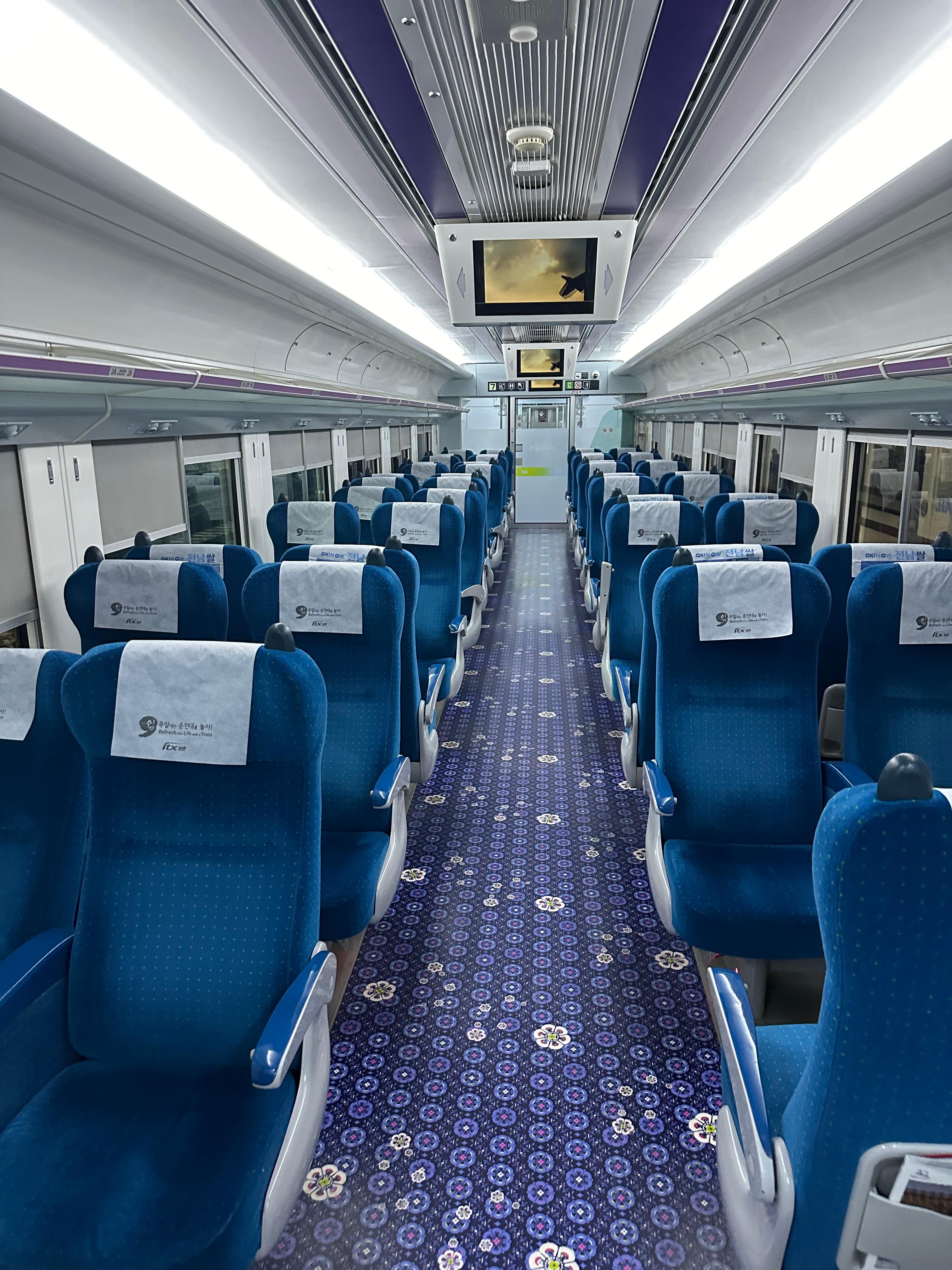 한가지 아쉬운점은 ITX 열차중에서 최초이다보니 좌석마다 콘덴서를 없다는 것이 아쉬웠습니다. 주말에는 ITX 청춘열차도 용산으로 가는 것은 늦게 예약하면 매진이 되는데요. 수요일 대체공휴일이라 그런지 당일인데도 티켓을 구할 수 있었습니다. 하지만 늦게 끊어서 였는지 2층 좌석도 매진에 창가쪽 좌석도 아닌 통로쪽 좌석만 남았습니다. 하지만 밤이라 보이지도 않고 통로도 나쁘지 않았습니다.