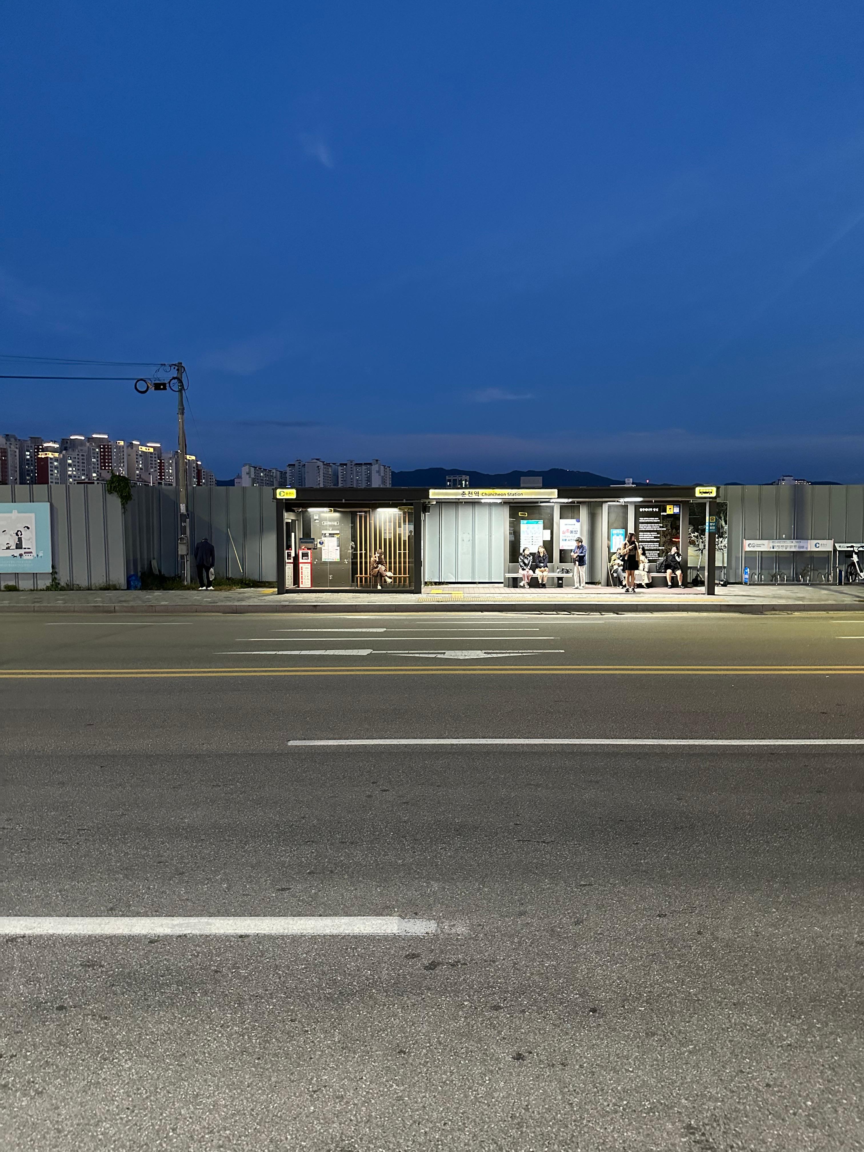 소양강스카이워크에서 걸을때만 해도 그렇게 어둡지 않았는데요. 춘천역과 소양강 스카이워크까지는 도보로 20분정도인데요. 오래걸리지 않았음에도 불구하고 20분정도 걸어서 도착하니까 춘천역에 어둠이 찾아왔습니다. 춘천역 반대편은 화천과 양구 방향으로 가는 시외버스 정류장이 있는데요. 시외버스 정류장에도 어둠이 찾아온 것을 볼 수 있습니다. 춘천역 맞은편 시외버스정류장은 서울동서울터미널을 출발하거나 춘천역에서 출발해서 화천과 양구로 가는 시외버스를 탈 수 있습니다.