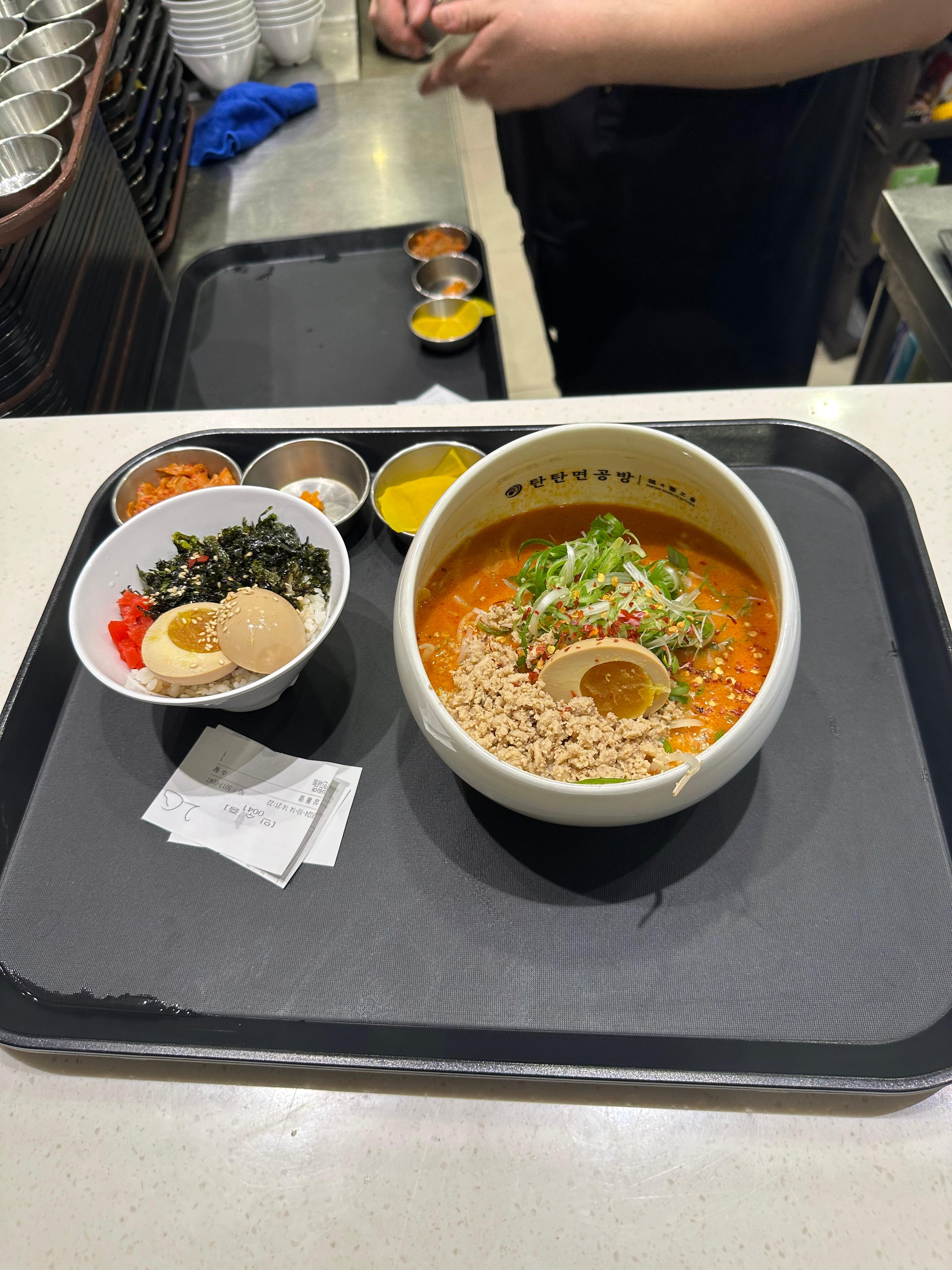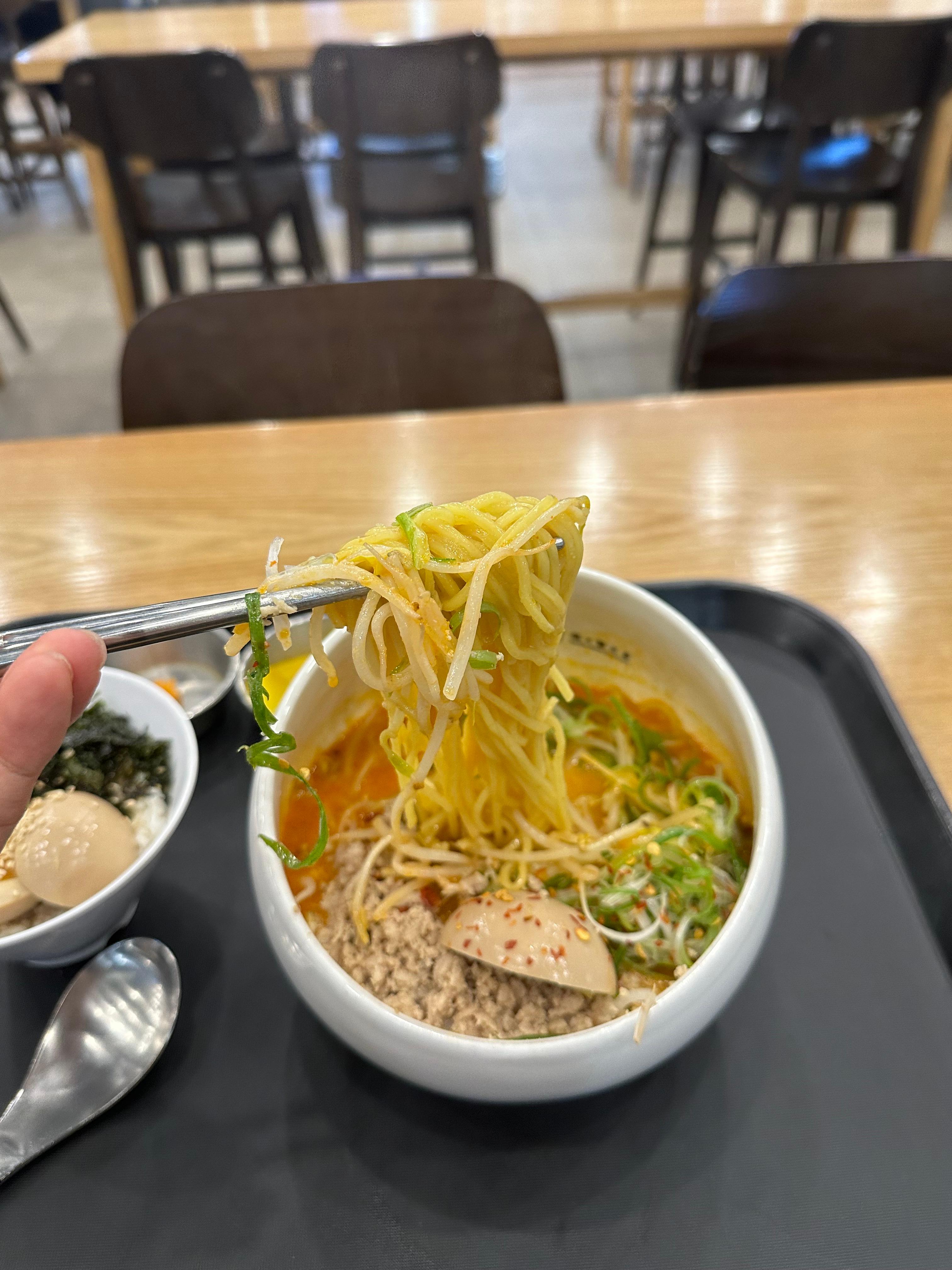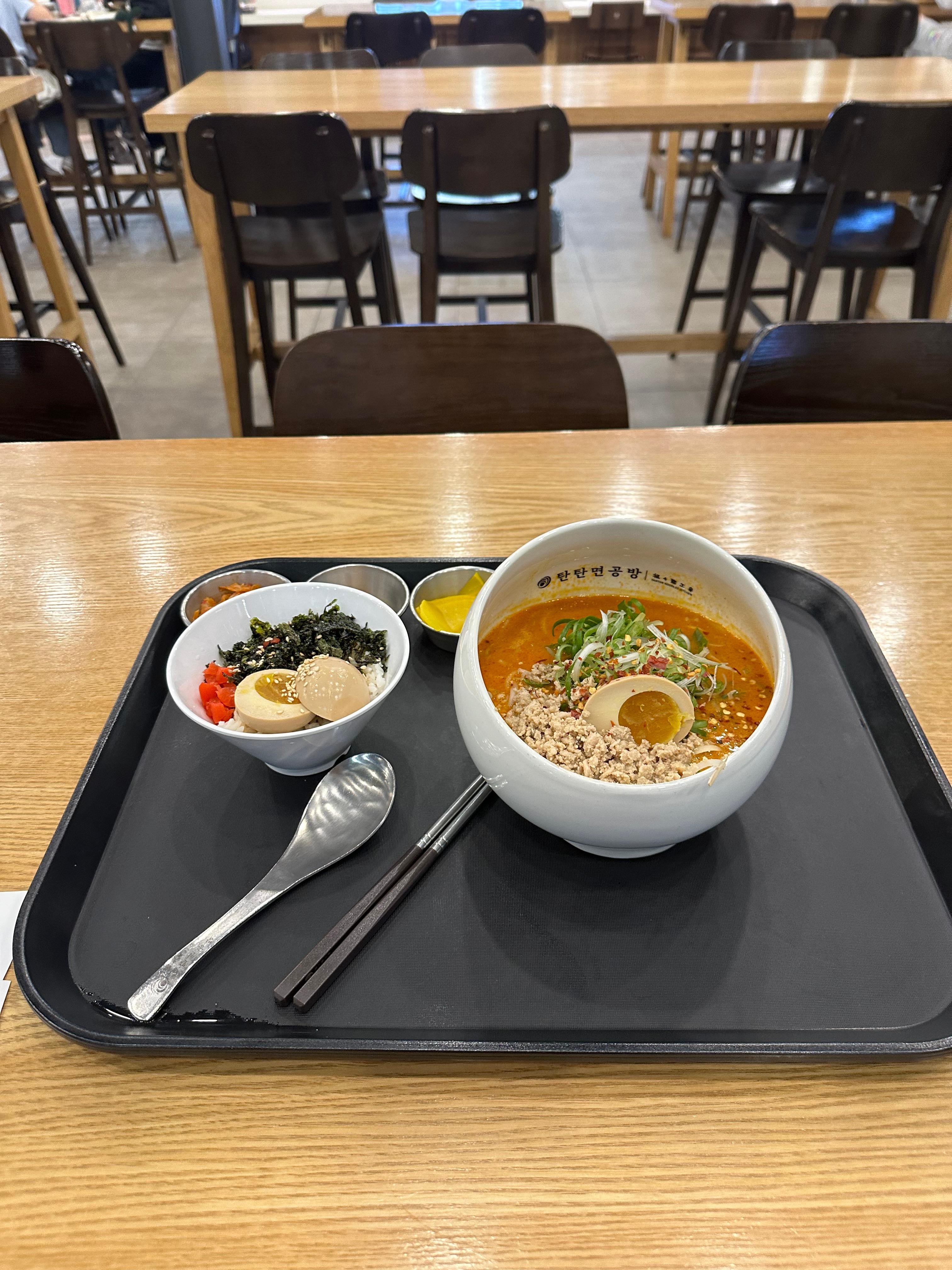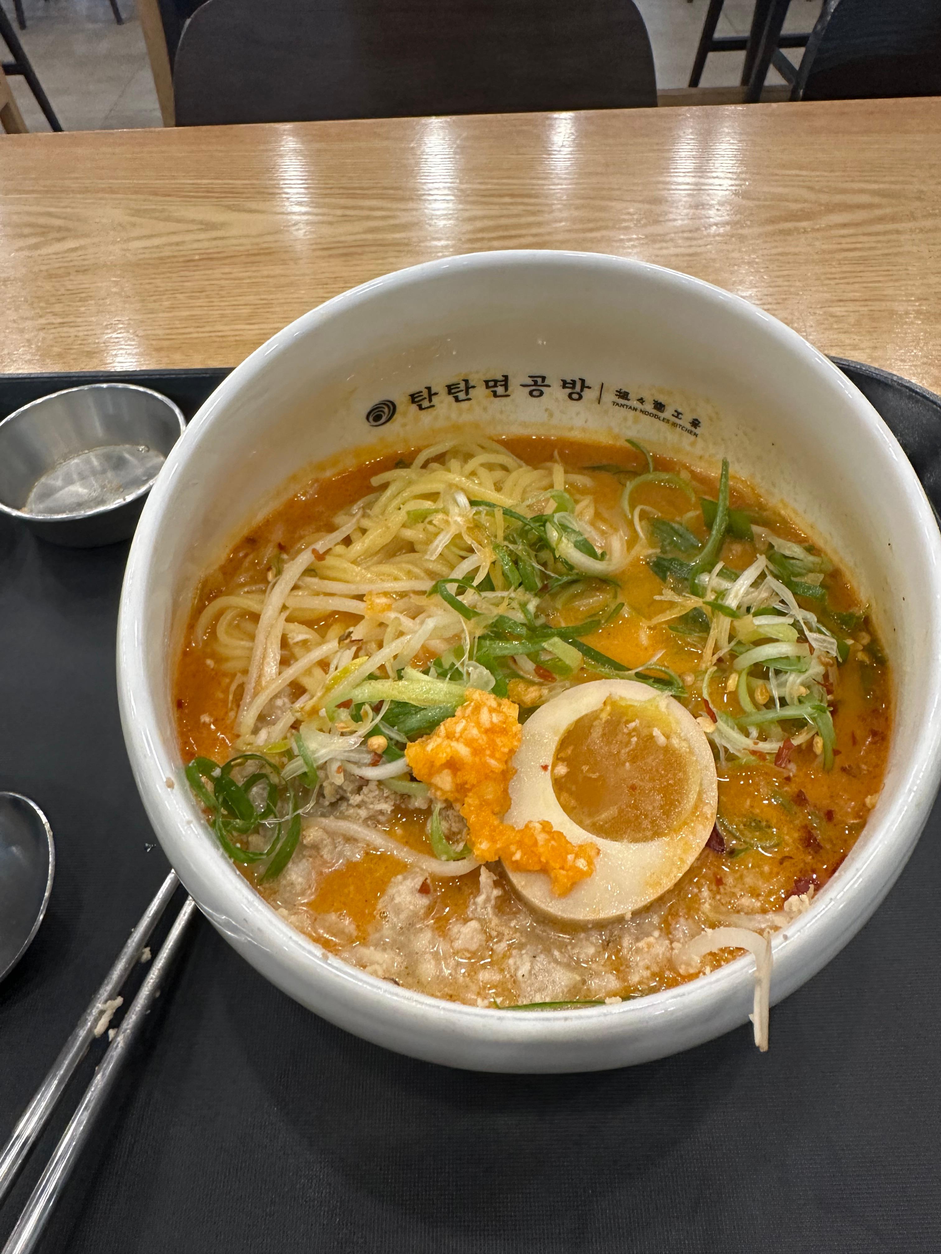 탄탄면도 매운맛이 있기는 하지만 매운맛보다는 달콤한 라면의 맛을 느낄수 있는 메뉴였습니다. 회사 다닐 때는 없었는데 1인 혼탄세트라고 해서 간장계란밥이라고 해서 정말 가성비 가격에 먹을 수 있는 메뉴였습니다.