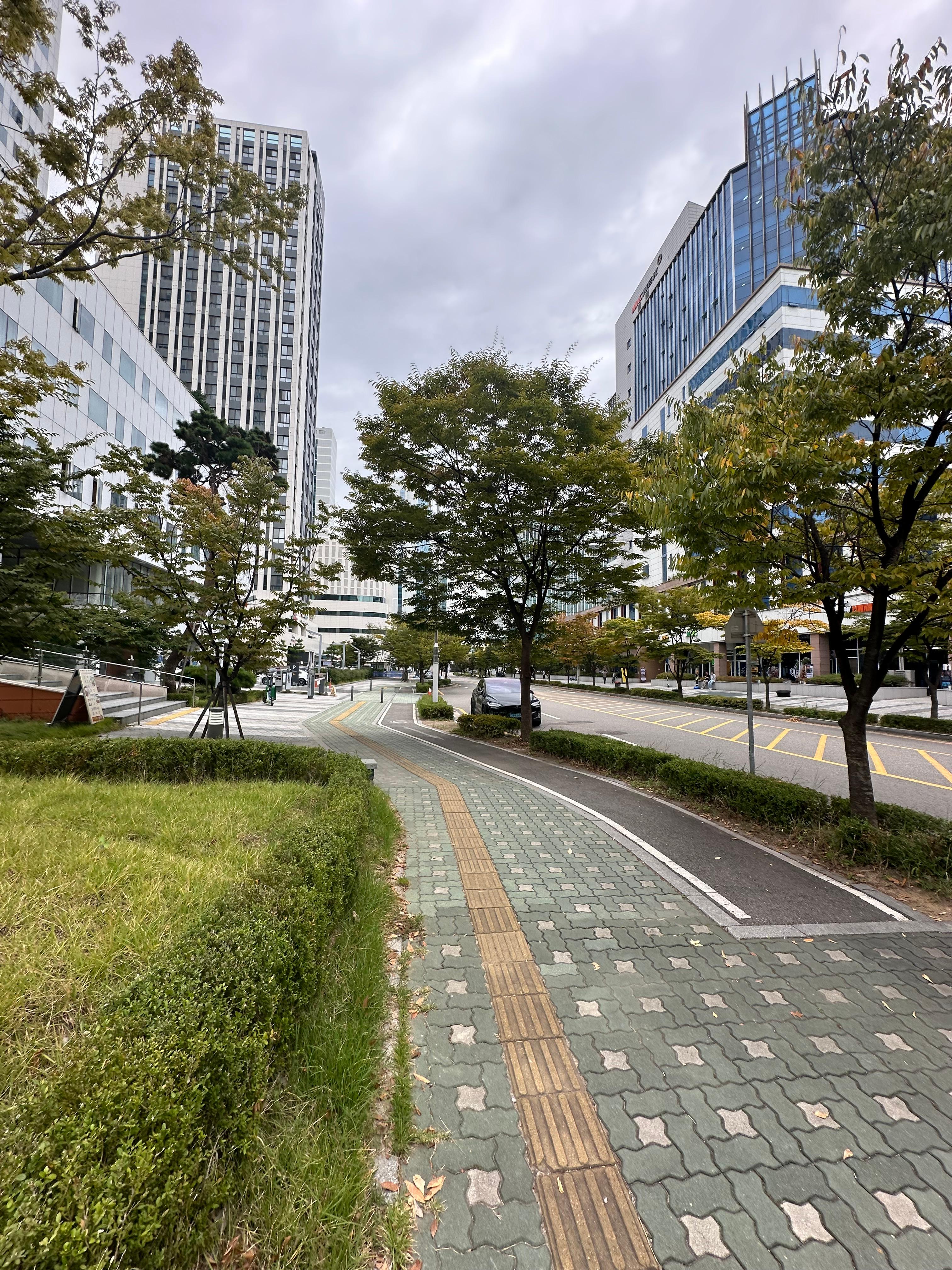 테크노파크 2번출구에서 저는 인천공항을 가기 위해 시내버스 노선을 검색하고 있었는데요. 그냥 가기에는 아쉬웠는데요. 그래도 첫 직장 건물이 있던 송도 테크노파크 IT센터로 이동했습니다. 첫 직장이 중소기업이고 스타트업이라 규모도 그렇게 크지 않았는데요. 그래도 송도라는 신도시에서 짧게 생활하는 경험을 할 수 있어서 좋았던 것 같습니다. 막상 회사 다닐 때는 다니기 힘들었는데요. 그래도 시간이 지나다보니 힘든만큼 성장하는데 큰 도움이 되었던 것 같습니다. 송도 테크노파크 IT센터에서 저는 건너편 현대프리미엄아울렛과 오네스타 건물이 보이는 반대편 길을 따라서 인천공항을 가기 위해 버스를 타러 이동했습니다.