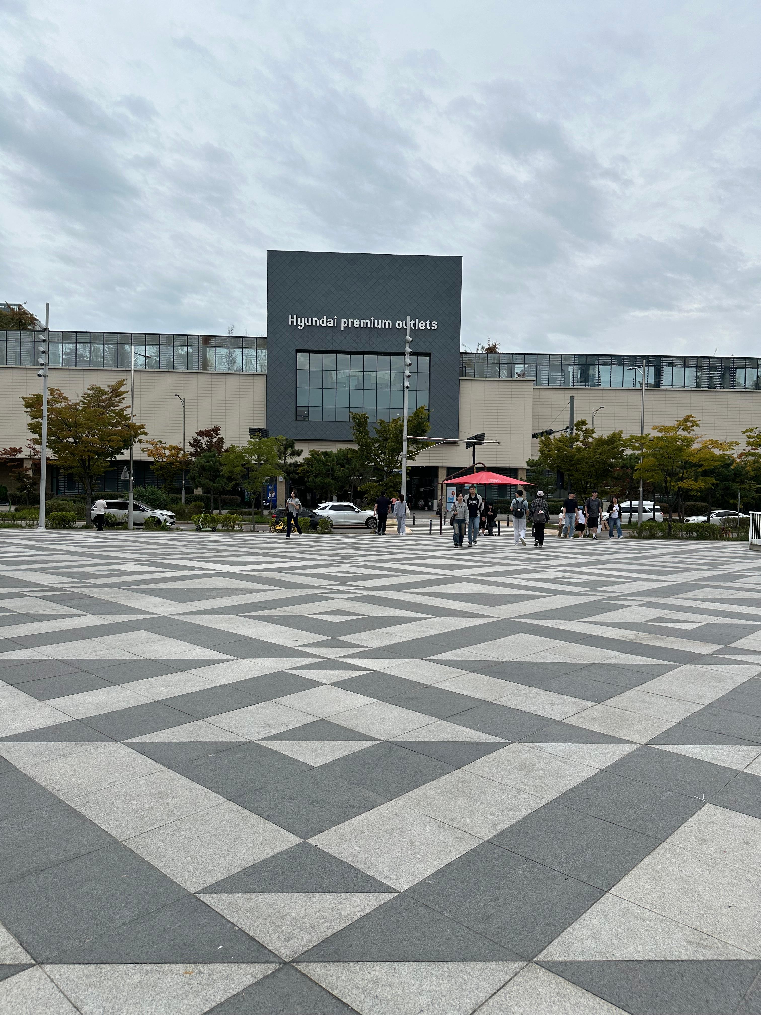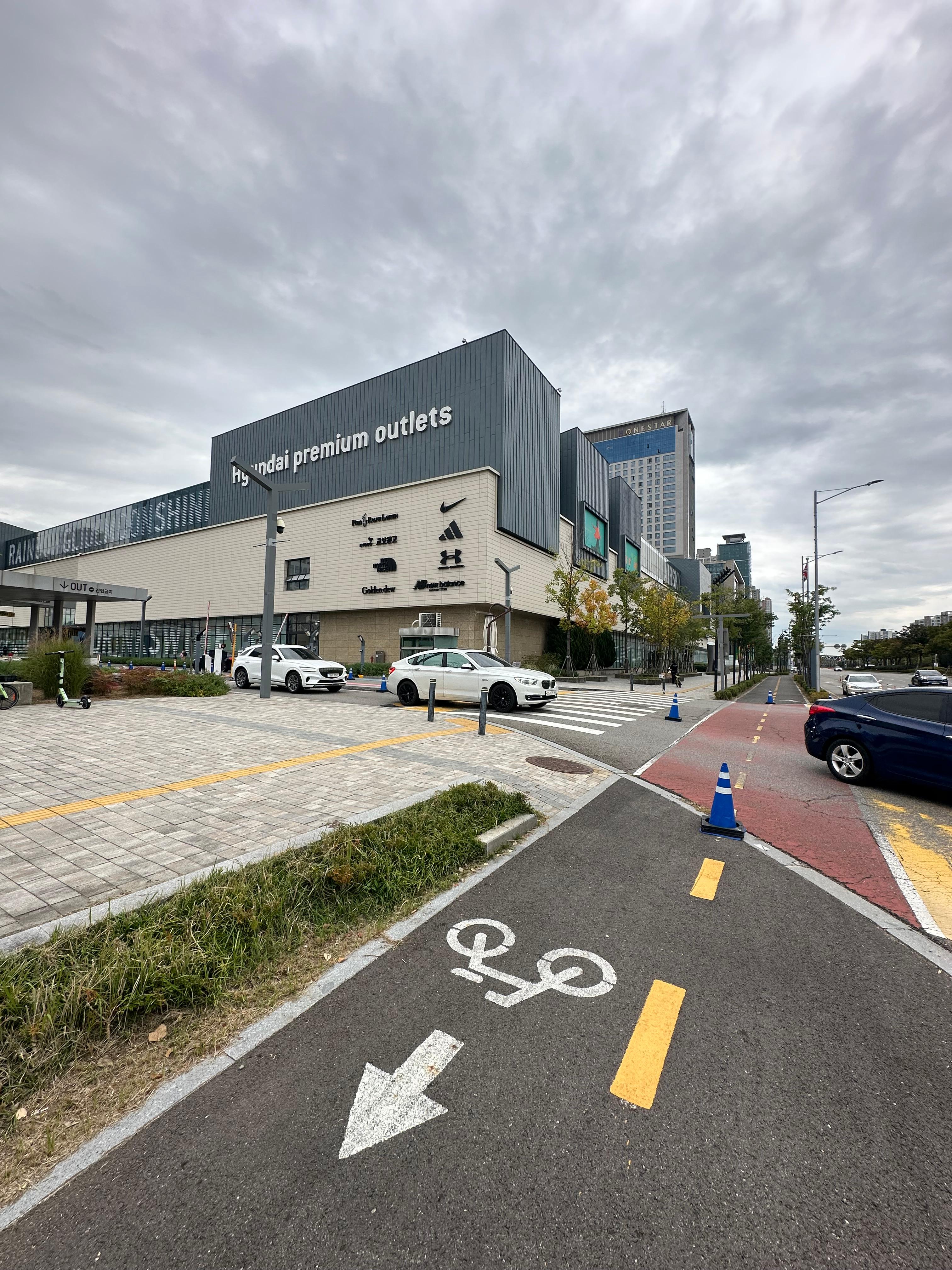 트리플 스트리트 지상에 있는 스타벅스 리저브를 지나서 직진 하니까 현대프리엄아울렛의 지상 건물을 볼 수 있었습니다. 지하철 내려서는 지하 연결통로로 들어가서 현대프리미엄아울렛이라고 하는데 백화점 겉모습을 볼 수 없었는데요.
