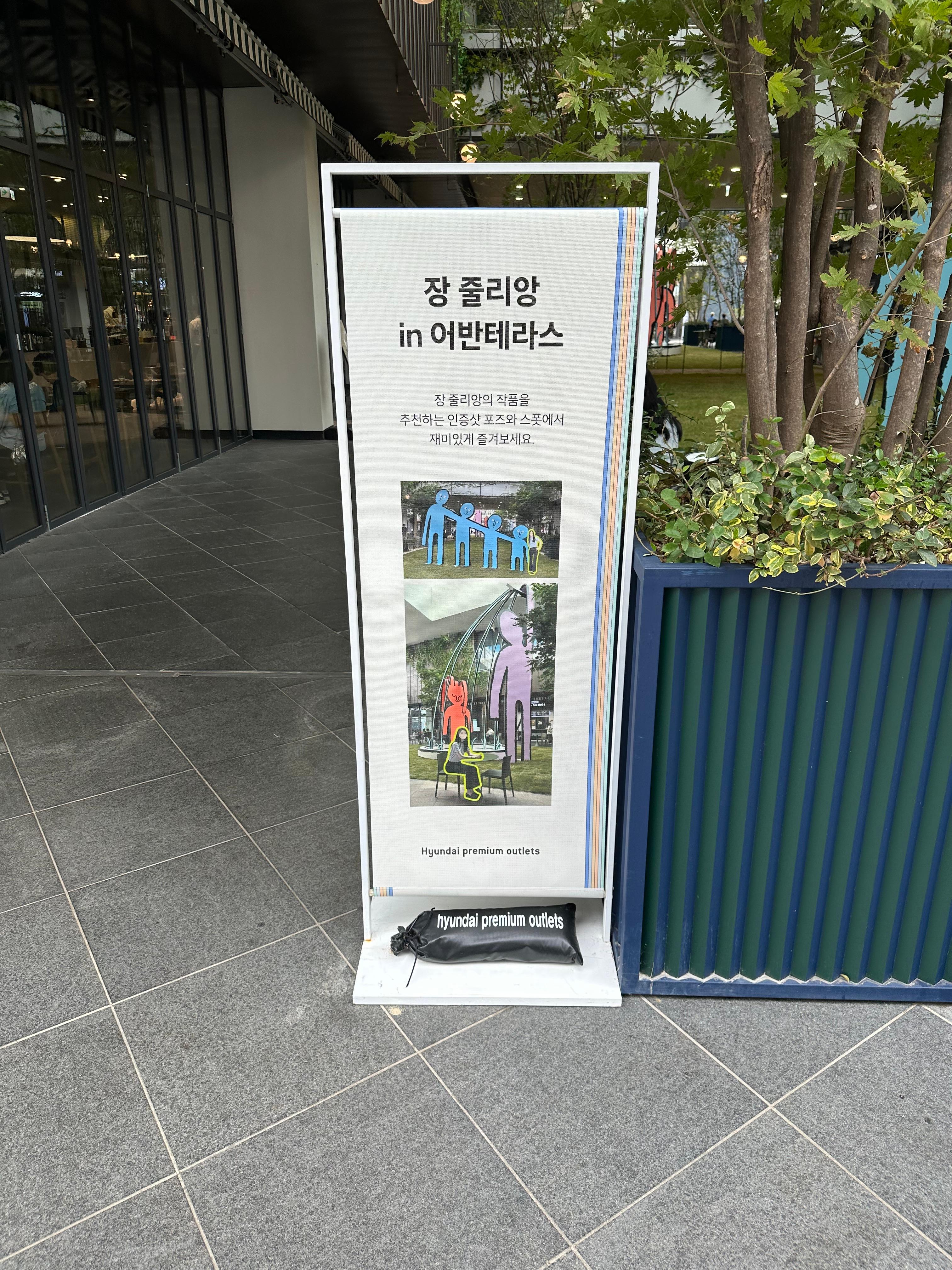 작년 10월에는 현대프리이엄아울렛 1층에는 장줄리앙 in 어반테라스라는 야외 전시가 있었는데요. 장줄리앙의 작품을 추천하는 인증샷 포즈와 스폿에서 인증샷과 함께 추억을 남길 수 있다고 해요. 불과 2전에 갔을 때도 장줄리앙 in 어반테라스는 그대로 전시하고 있었습니다. 송도가 10년전에 비하면 사람들이 더 찾아와서 즐기고 놀 수 있도록 변한 것 같습니다.
