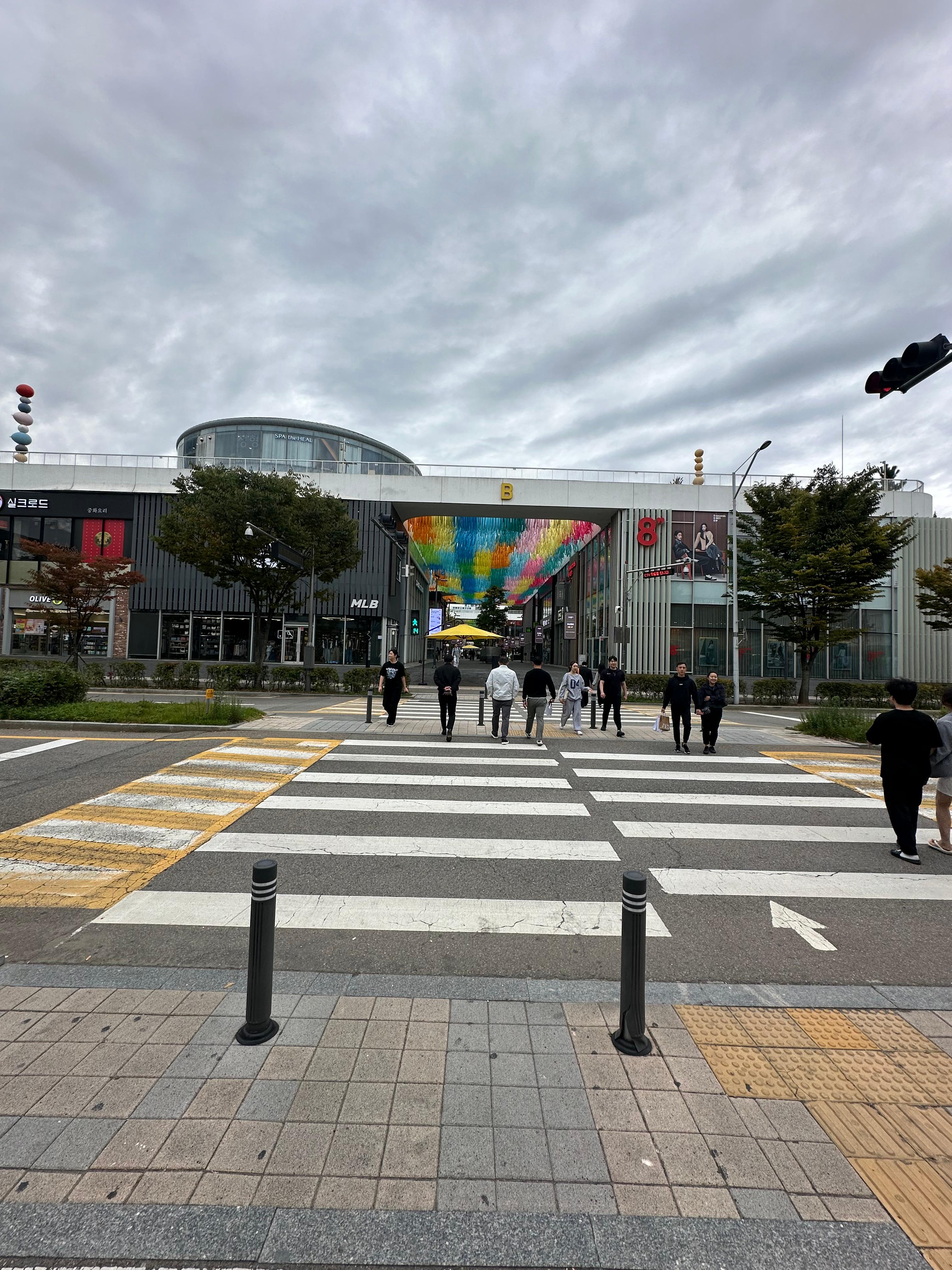 사실 2번출구에서 나오면 좌우로 지상으로 올라가는 계단이 있습니다. 지상으로 바로 올 수도 있고 저처럼 현대프리미엄아울렛 지하와 연결통로를 통해 트리플스트리스 지하를 보고 지상으로 올라와서 이렇게 현대프리엄 아울렛 지상 구간을 볼 수 있습니다.