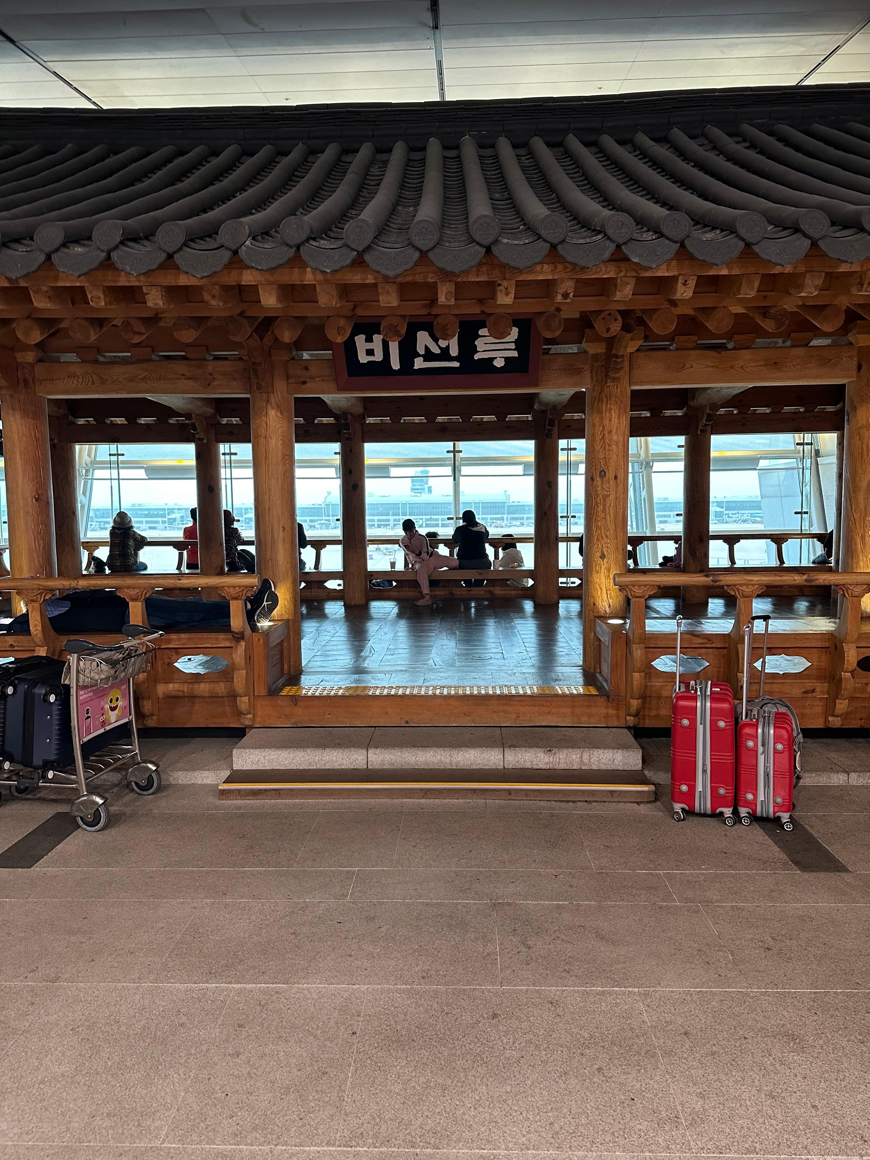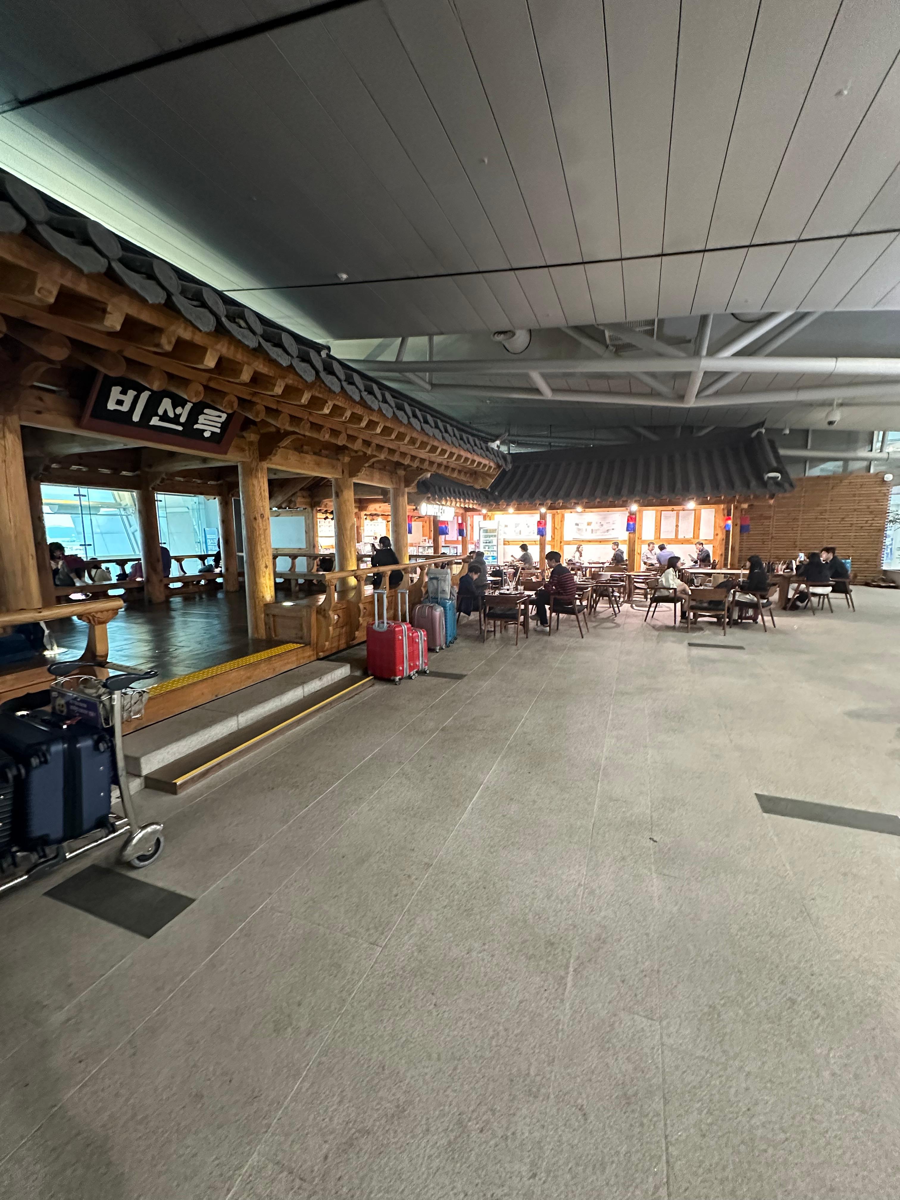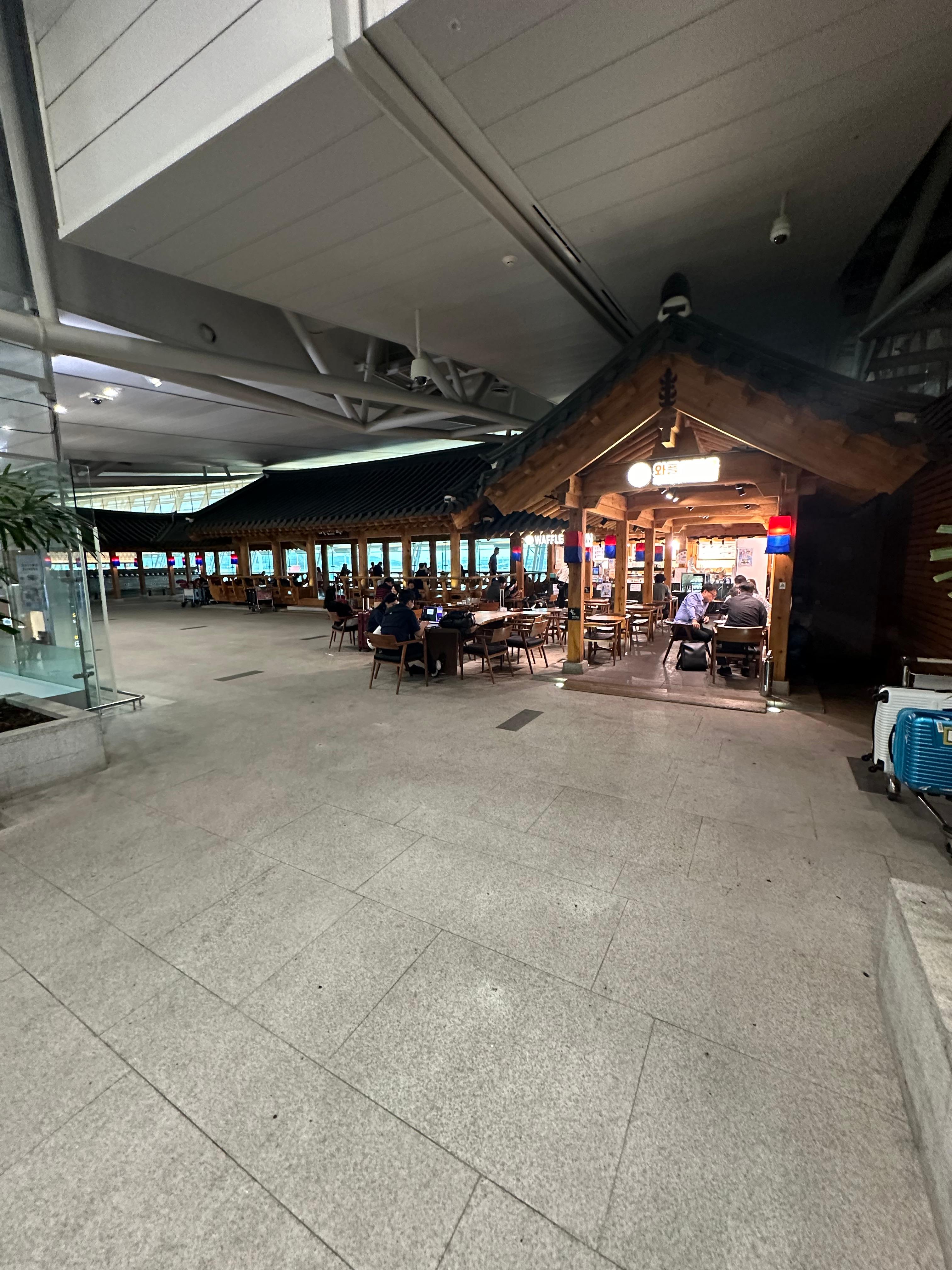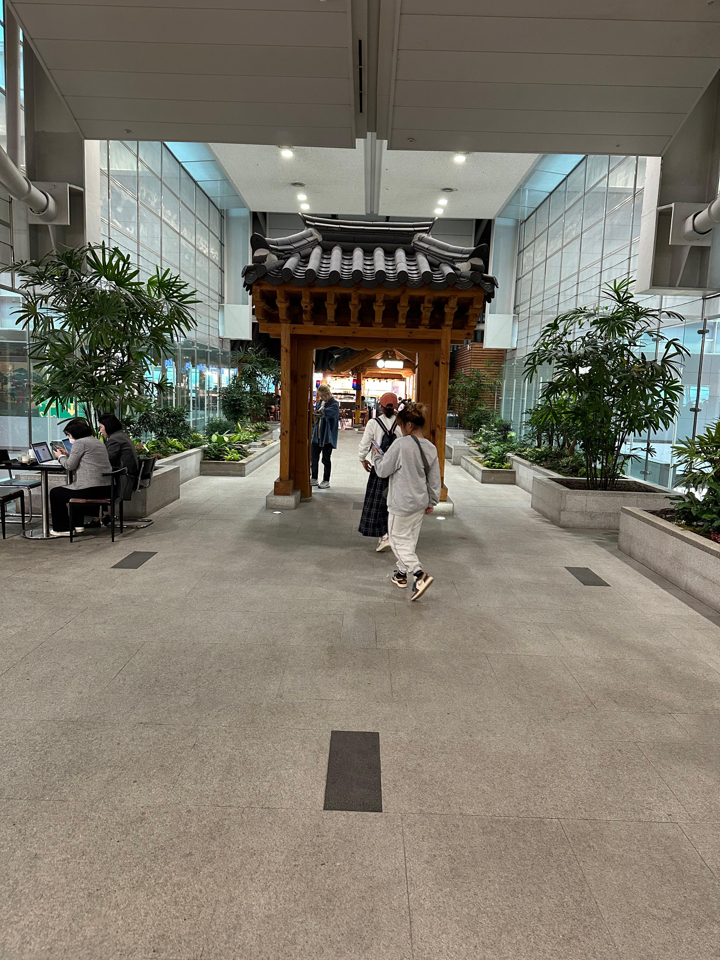 한식 뿐만 아니라 양식도 있었고, 분식, 카페 다양하게 있었습니다. 아무래도 인천공항의 주로 오는 관광객이 내국인도 내국인지만 외국에서도 오는 관광객도 있기 때문에 한국을 알리는 의미도 중요한 것 같습니다. 그렇다보니 인천공항 대합실에서 위로 올라오면 한식 뿐만 아니라 한국의 한옥까지 우리나라를 느낄 수 있는 전시공간이 있었습니다.