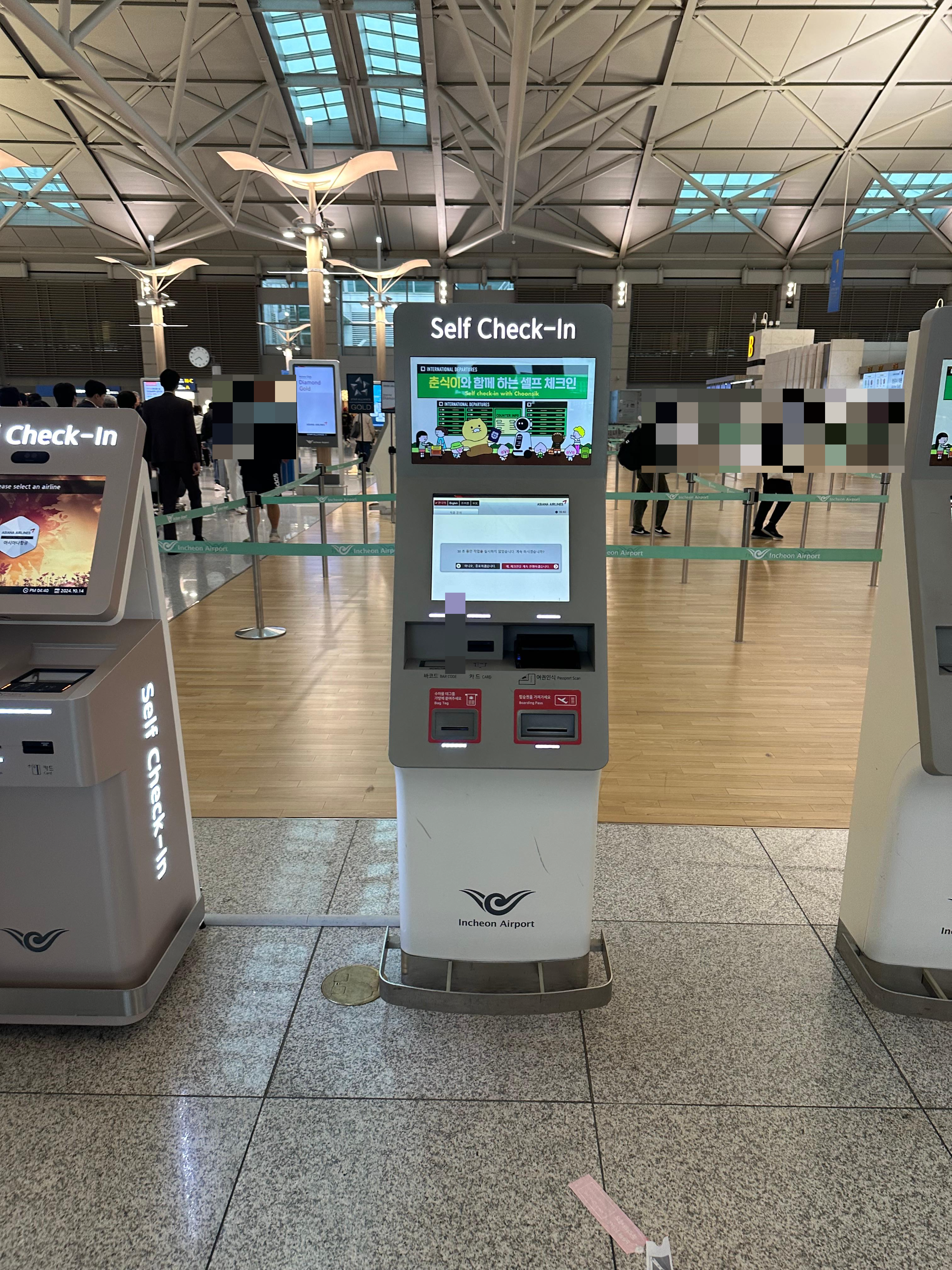 인천공항 제1여객터미널에도 김포공항과 같이 셀프체크인 기계가 보였습니다. 국내선공항과 국제선 공항 모두 셀프 체크인하는 것까지는 승객이 직접 할 수 잇는 것을 볼 수 있었습니다. 하지만 입국절차는 국내선 공항인 김포공항과 김해공항과 비교했을 때 국제선이 더 엄격한것을 볼 수 있었는데요.