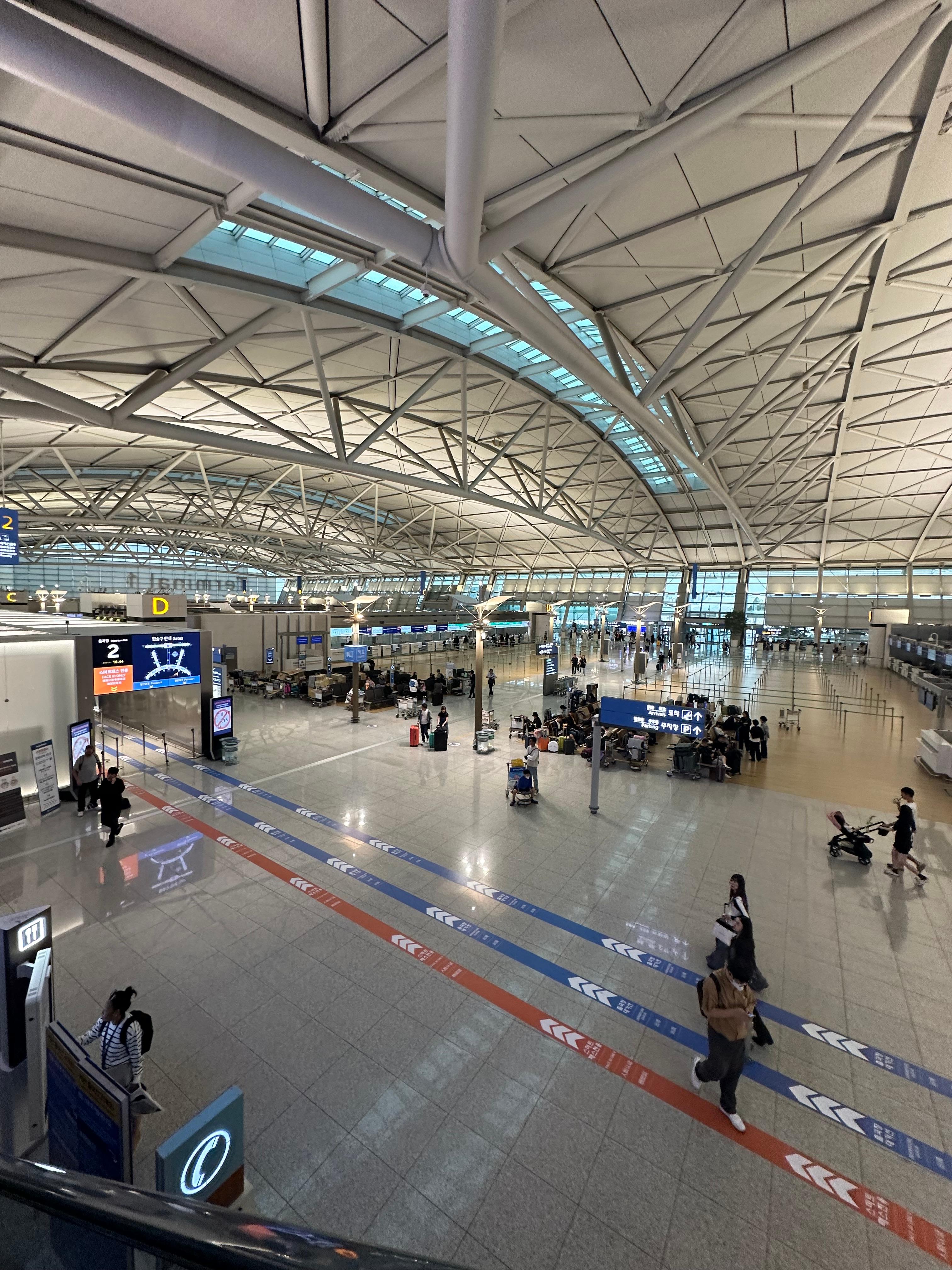 평일 월요일에도 불구하고 인천공항은 조용한 것을 느낄 수 있었는데요. 제가 몇달전 지난 2024년 부산 여름 여행 다녀오면서 평일인데 한국인보다 외국인이 많다는 포스팅을 전해드렸는데요. 아무래도 우리나라와 시차가 다르다보니 자연스레 우리나라 주말에는 외국인들이 많이 안보이는 것을 볼 수 있었습니다. 반대로 평일날에는 외국인이 더 많이 보였는데요. 물론 내국인처럼 평일에 휴가 쓰고 오는 외국인들도 있을거고 다양 할 것입니다.이날도 평일 월요일이라 그런지 내국인보다 외국인들이 인천공항 대합실에 더 많이 보였습니다. 아무래도 내국인 뿐만 아니라 외국인들도 많은 곳이라 김포공항에 비하면 체크인하는 곳도 많고 입국절차 밟는 곳도 더 많았습니다. 한가지 다른점은 김포공항은 입국절차가 개방적이었다면 인천국제공항은 약간 폐쇄적인 분위기로 입국절차 하는 곳이 벽으로 막힌 것을 볼 수 있습니다. 혹시라도 범죄 피의자가 있을 수 있기 때문이 아닐까 싶습니다.