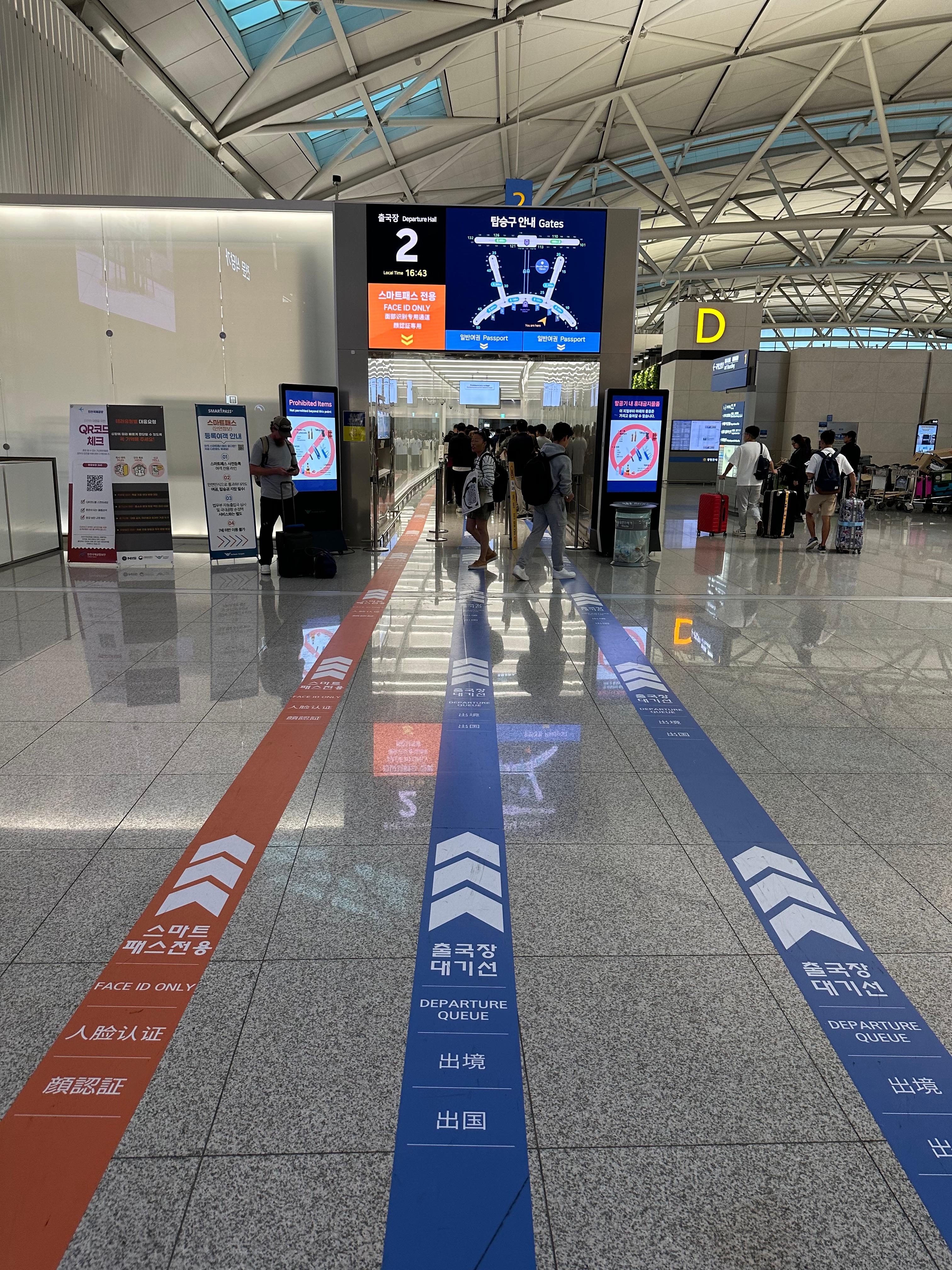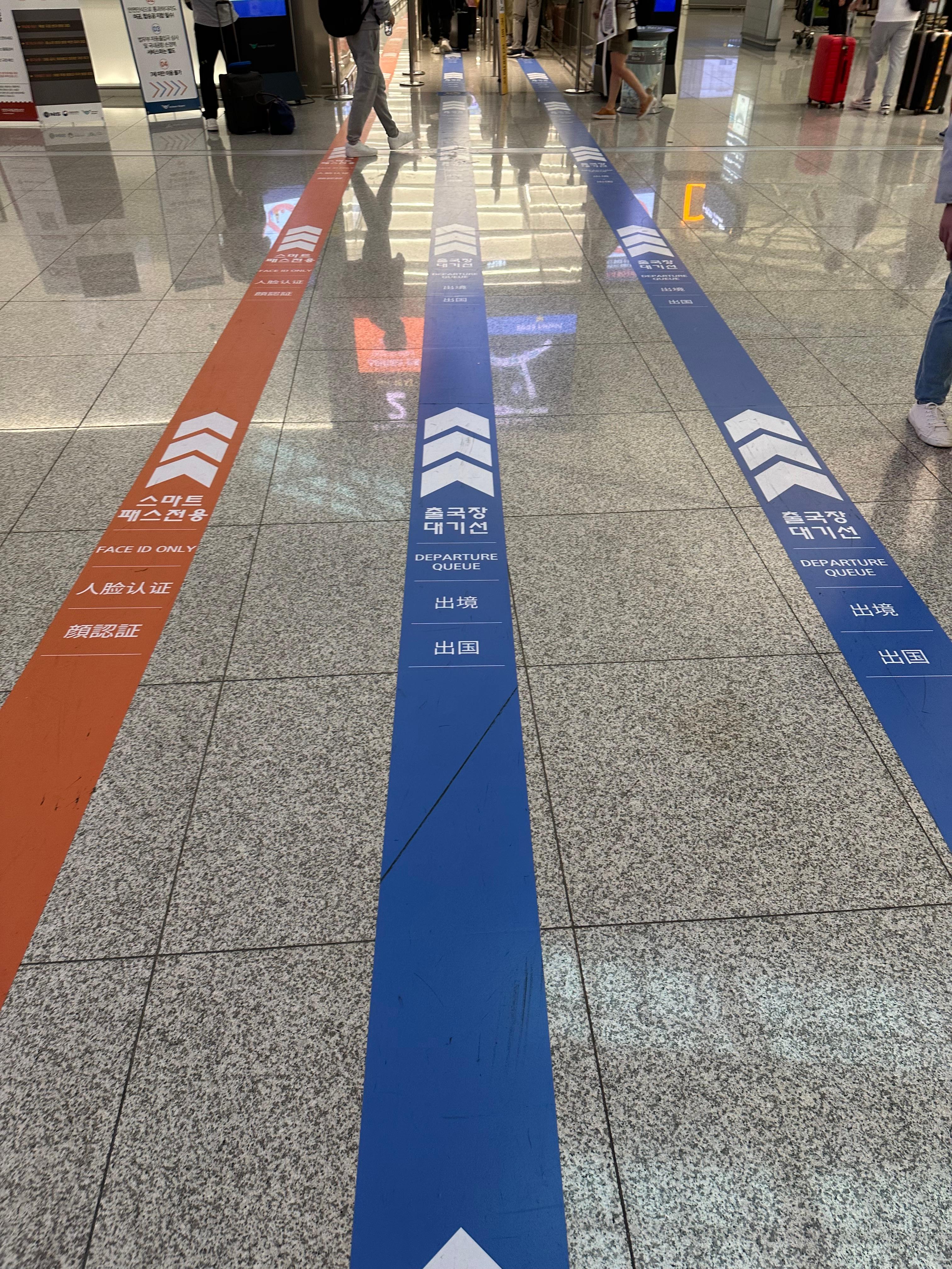 국내선은 바이오 체크인을 통해 지문으로 바로 입장 할 수 있었다면 인천국제공항에서는 바이오 체크인은 보이지 않고 정말 긴줄을 통해 직원이 직접 확인하는 것을 볼 수 있었습니다. 특히 국제선이기 때문에 내국인은 물론 외국인도 있기 때문에 평일임에도 불구하고 줄이 길었습니다. 국제선 비행기를 이용하려면 국내선보다 더 먼저 와야할 것 같습니다. 더 빨리 와서 입국절차를 밟는 것을 추천합니다.