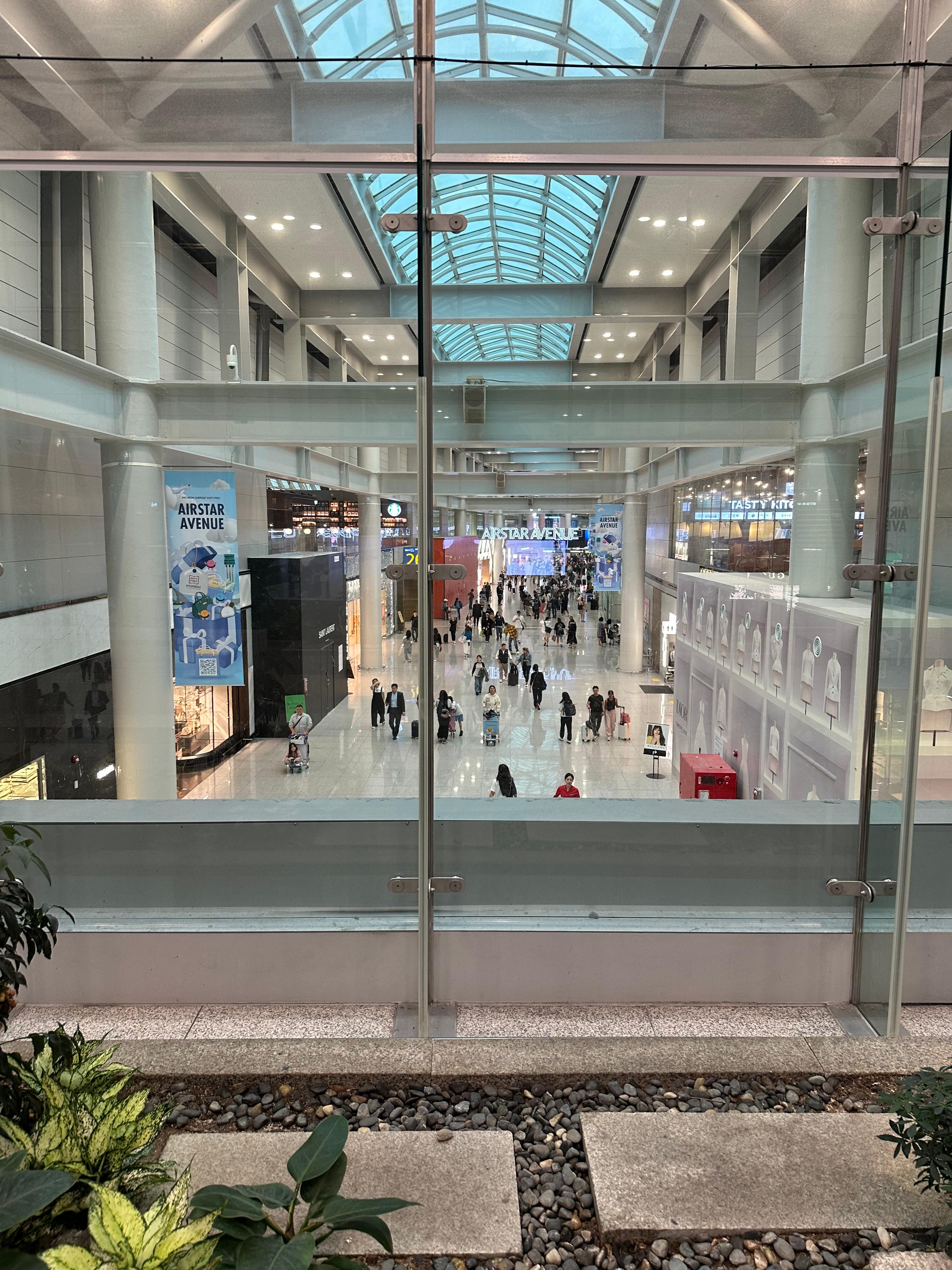 카페 라떼킹(Latte king) 바로 옆에는 조촐하고 작은 한옥 대문 하나가 있었는데요. 이곳 한옥 대문을 통과하면 양쪽으로 인천공항 면세점과 비행기를 타기 위해 돌아다니는 사람들이 유리 창문으로 보이는 것을 볼 수 있었습니다. 비록 비행기 타러 오지는 않았지만 비행기를 타고 외국으로 가는 사람들 보는 것만으로도 설레였습니다.