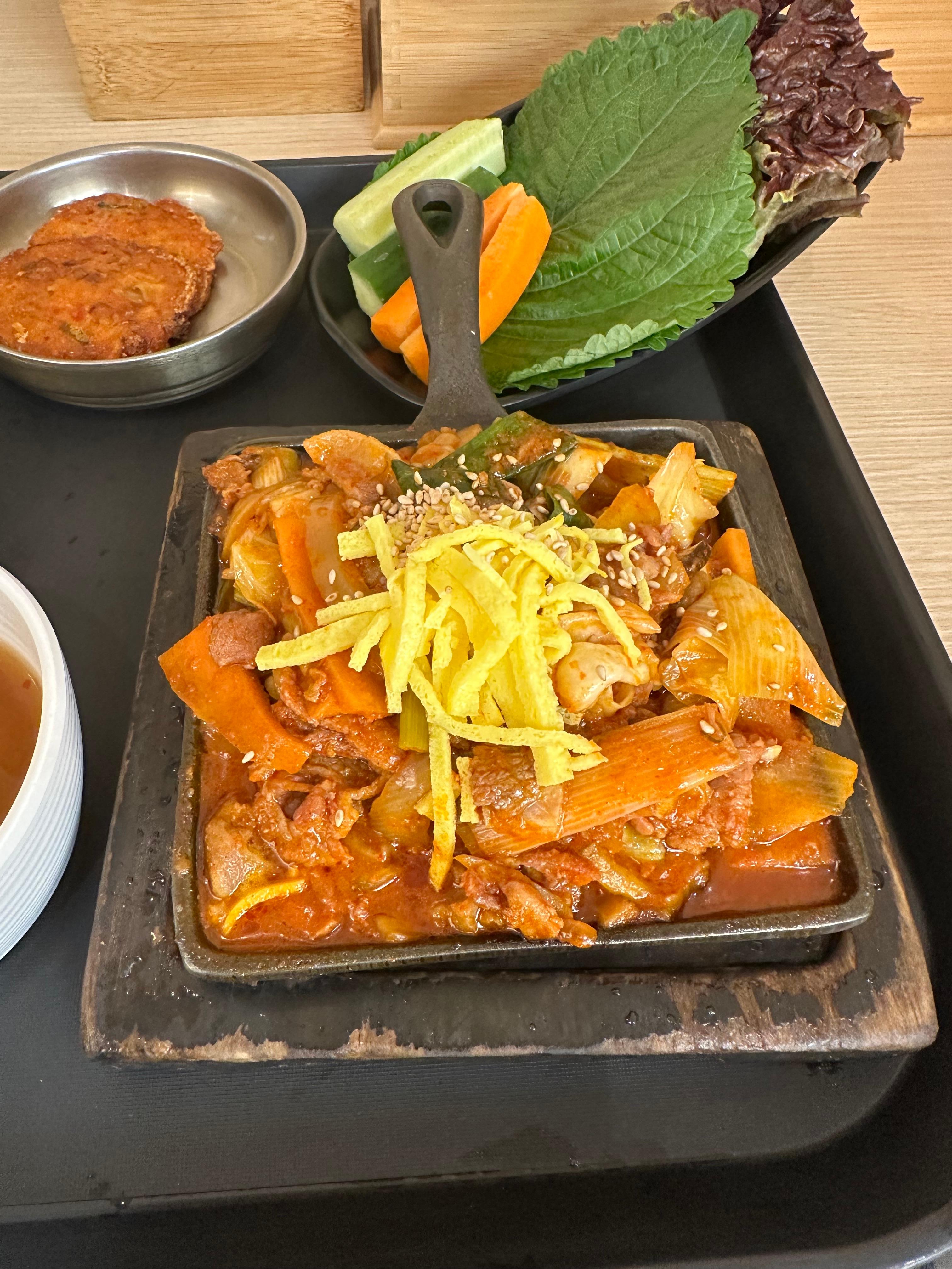 특히 제가 방문한 날은 평일 목요일이라 강남 일대에서 지방으로 출장가는 사람들도 많이 보이고 저처럼 혼자서 먹는 사람들이 많았습니다. 일반 시내쪽에 매장의 경우 연인, 친구, 가족들끼리 오는 경우가 많지만 수서역 호호카츠는 예외였습니다. 된장찌개와 밥 그리고 메인 메뉴인 제육볶음이 나왔습니다. 혼자서도 먹기 좋은 13500원에 먹기 좋은 가성비 메뉴였습니다.