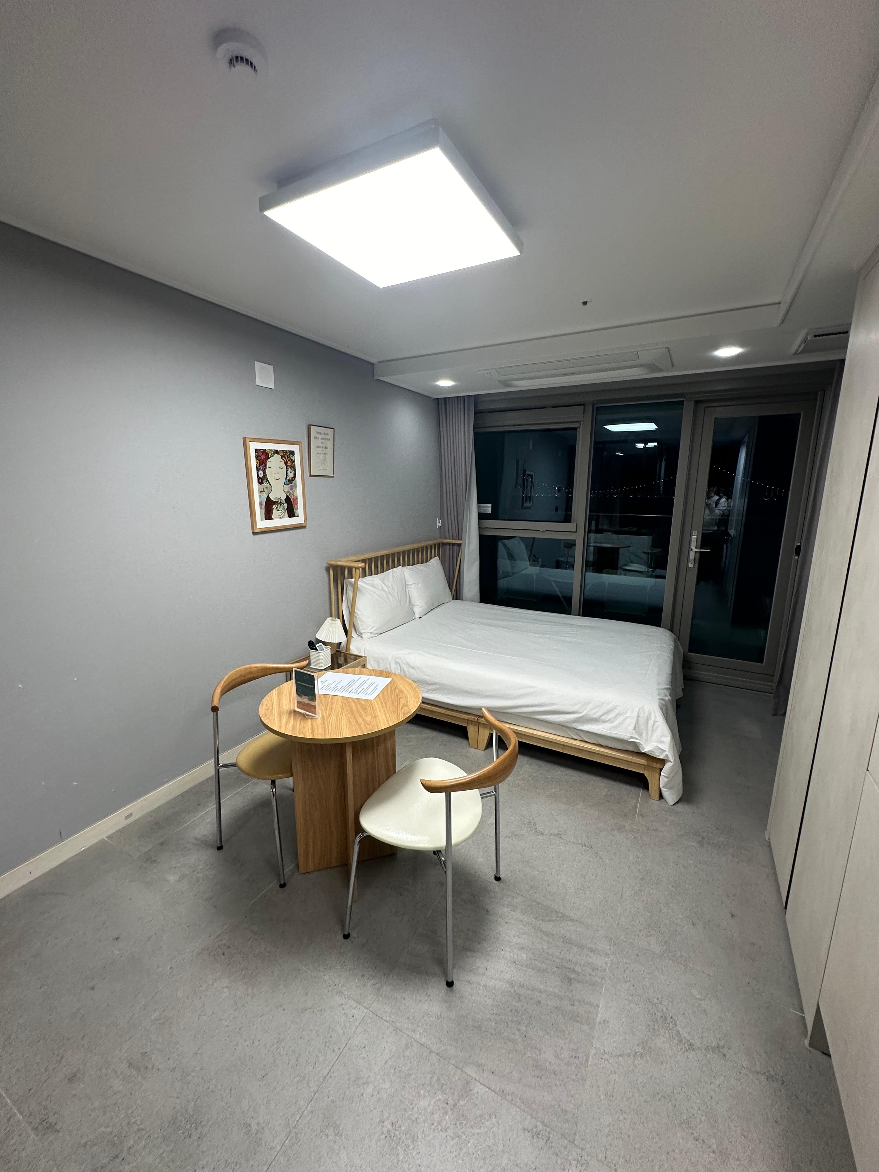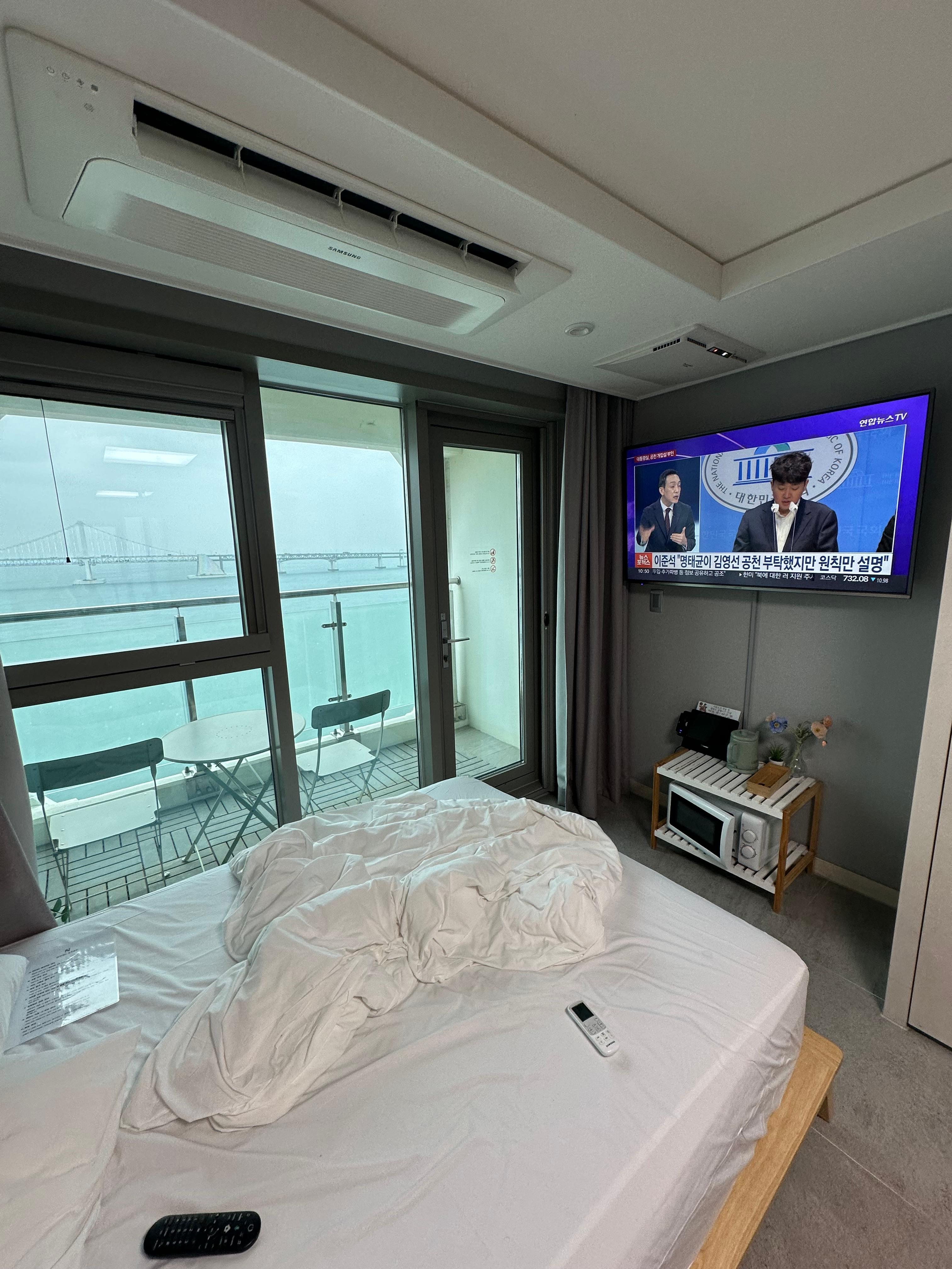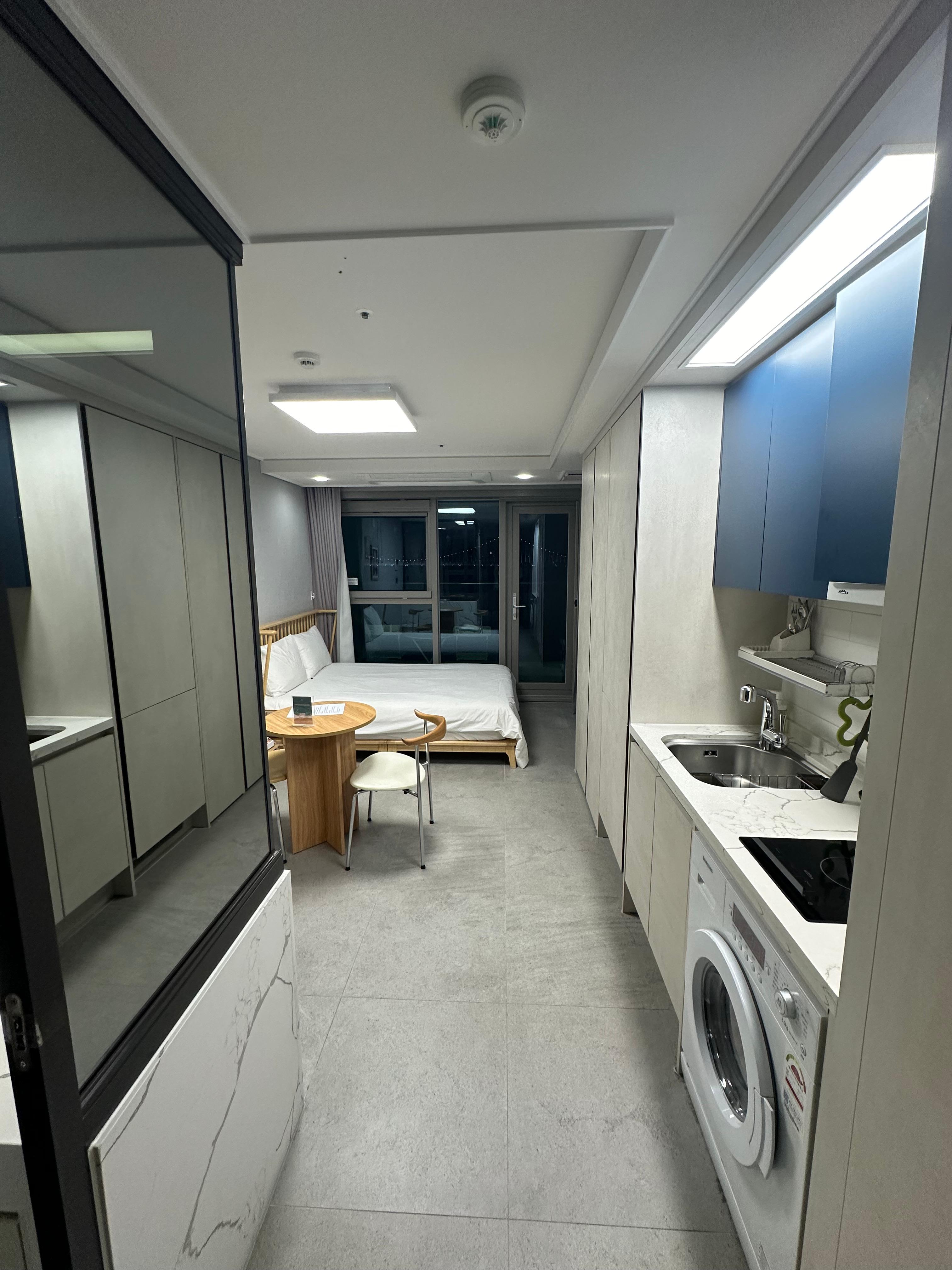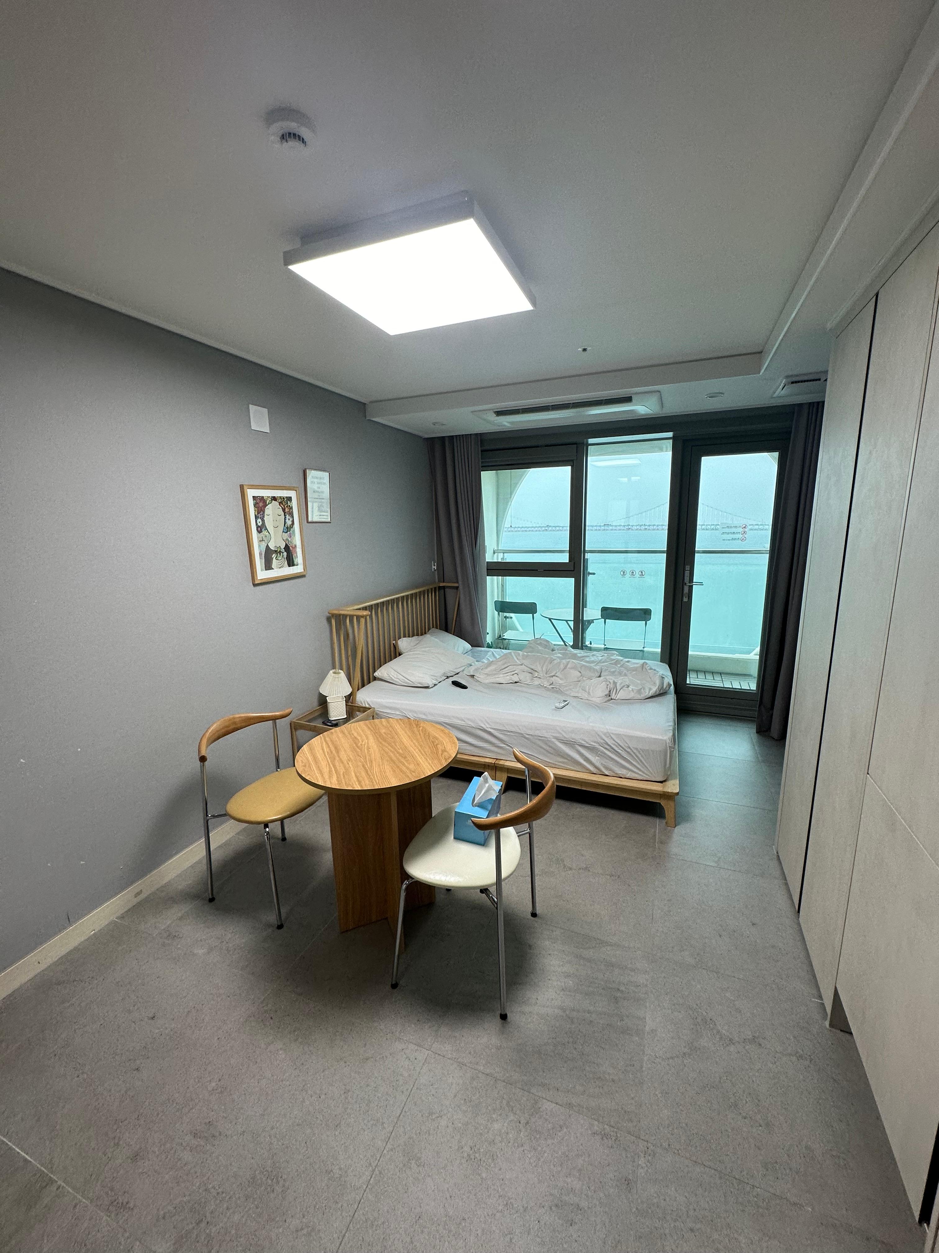 10년전 광안리 여행 이후로 광안리 바다가 바로 앞에 있는 곳에서 숙박을 고민했었는데요. 정말 다시 봐도 멋진 풍경이었습니다. 지웰에스테이트 더테라스 건물에 입주한 효이스테이 객실은 전형적인 오피스텔과 생활형숙박시설로 원룸 형태의 방이었습니다. 안산 반달섬 마리나큐브 생활형숙박시설과 오피스텔 2룸 3룸에 비하면 1-2명 정도 머물기에 딱 좋은 사이즈였습니다.