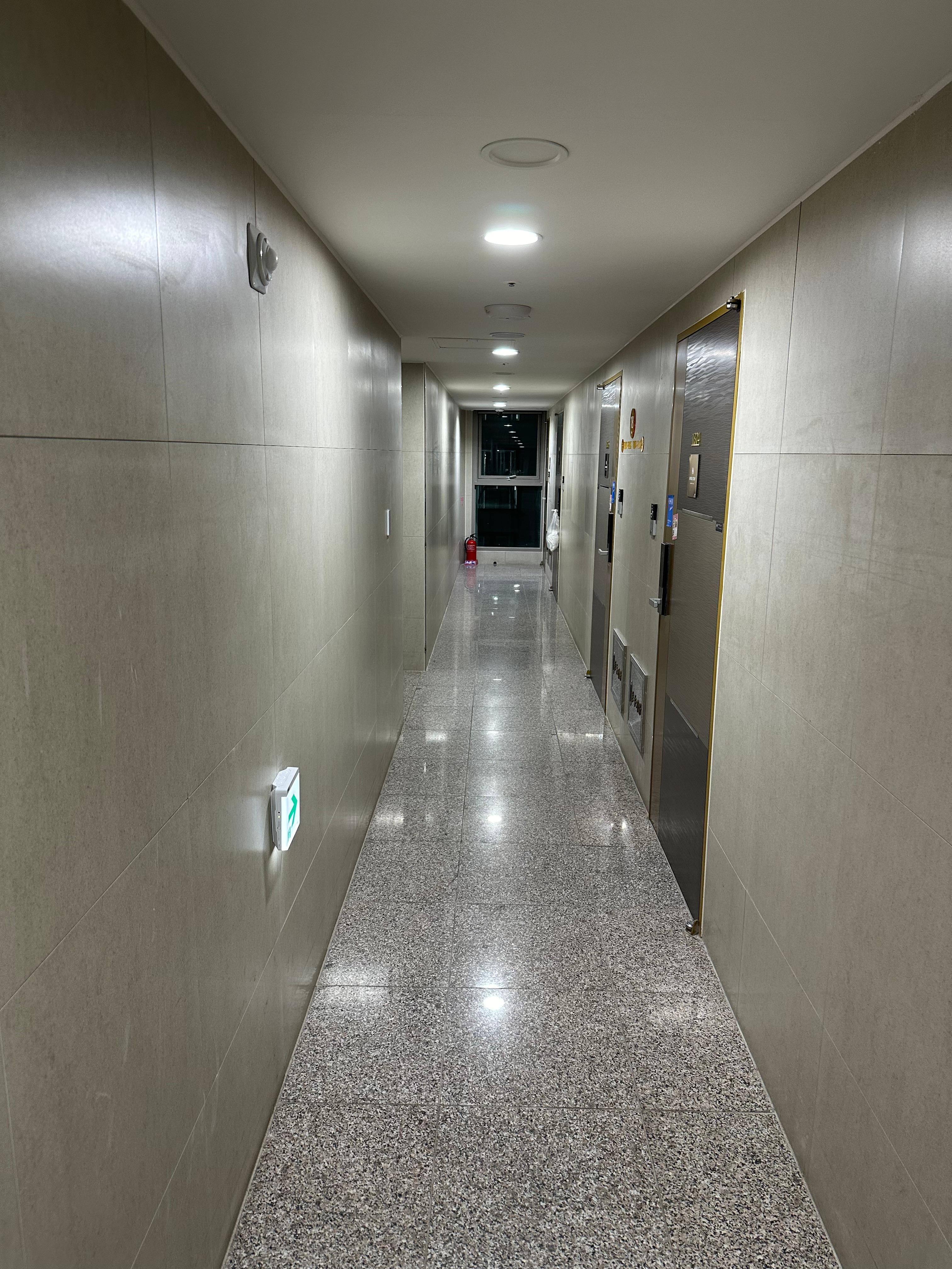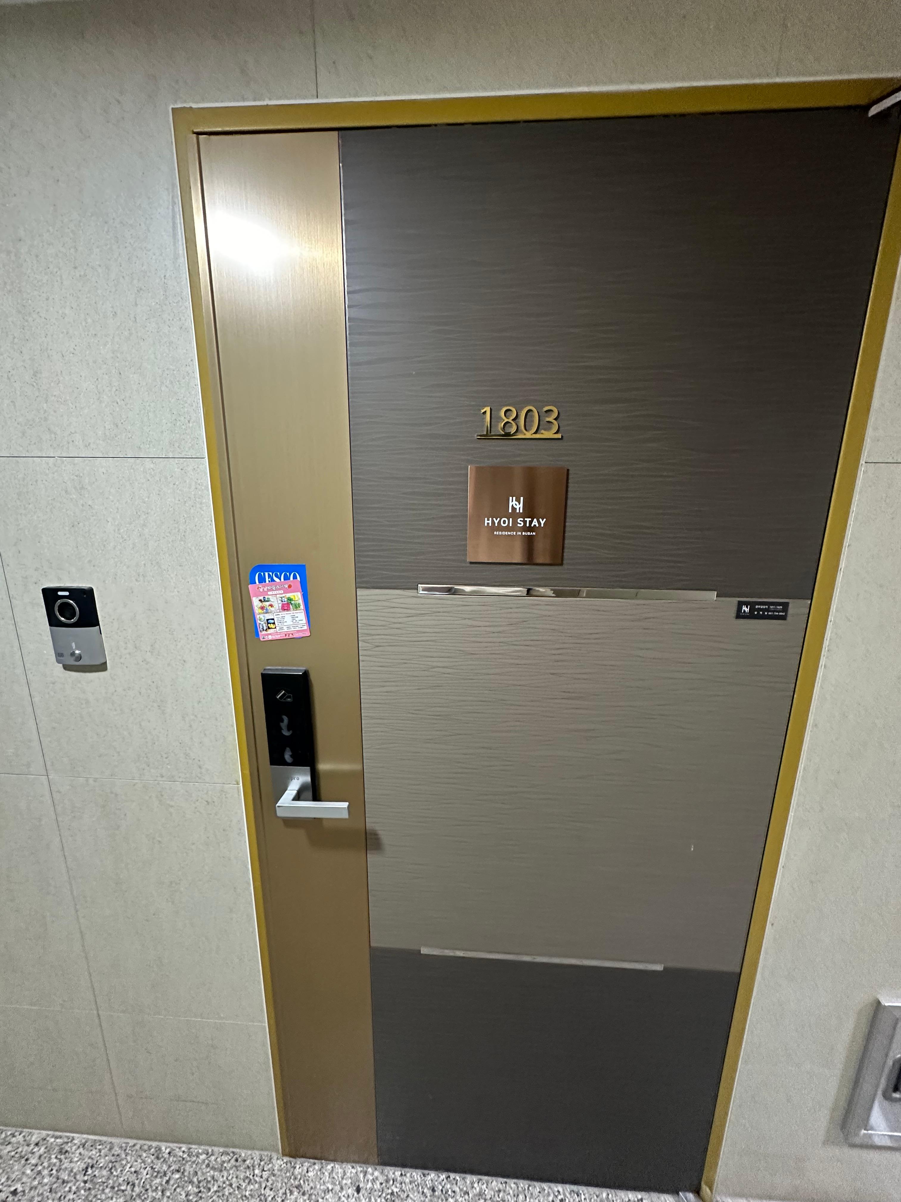 에어비앤비보다는 정식 숙박시설을 안내 받는 것을 볼 수 있었습니다. 지웰에스테이트 더 테라스 건물은 효이스테이 뿐만 아니라 다양한 에어비앤비를 관리하는 업체들이 같은 사무실을에서 운영하는 것을 볼 수 있었습니다. 체크인을 마치고 저는 18층으로 내려가서 1803호 에어비앤비 객실로 이동했습니다. 대부분 에어비앤비 이다보니 해당 객실앞에는 숙소 이름을 볼 수 있는데요. 제가 살고 있는 반달섬 생활형숙박시설에서 에어비앤비를 하는 경우에도 이렇게 상호명을 부착하는 것을 볼 수 있습니다.