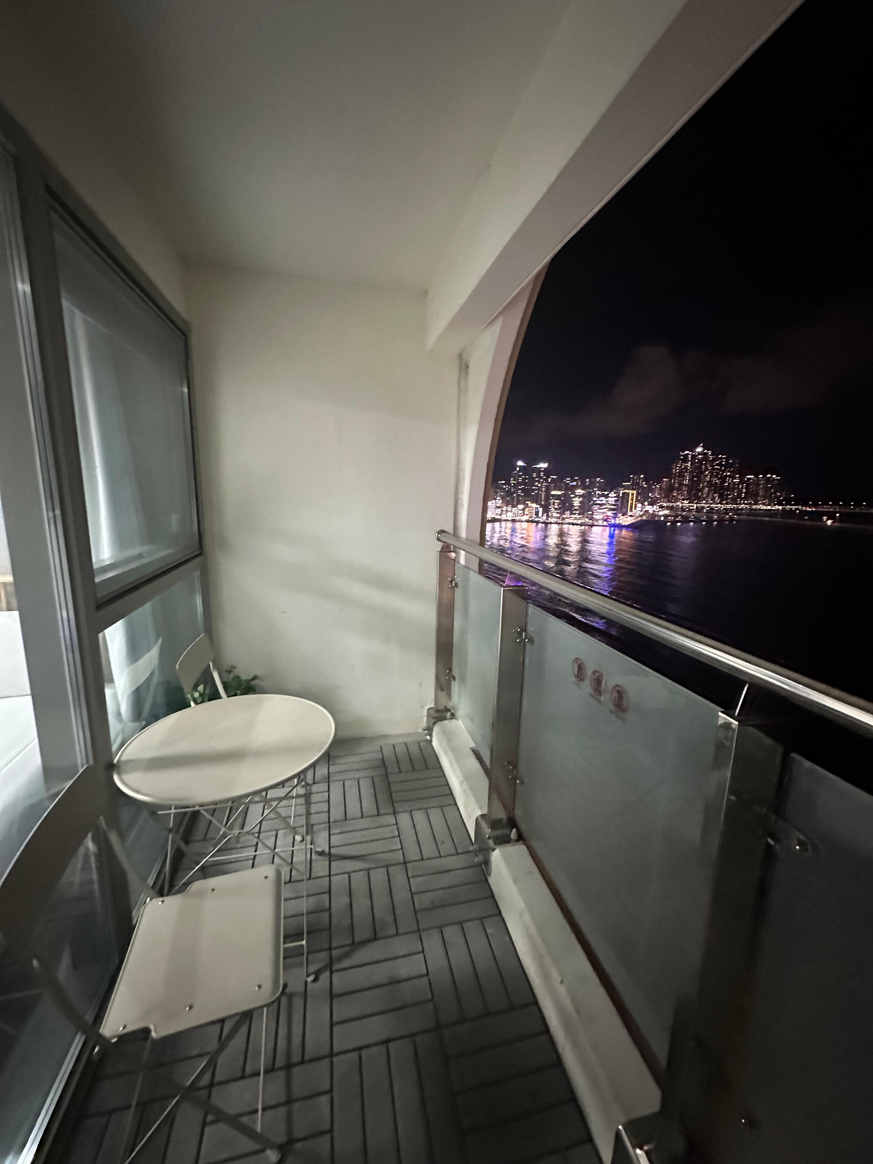 그렇게 객실을 돌아다니면서 방에 이상이 없는지 확인하면서 마지막으로 효이스테이와 광안리에 숙소를 정하게된 가장 하이라이트 부분을 소개하려는데요. 바로 지웰에스테이트 더 테라스 오피스텔에 입수한 효이스테이 테라스에서 바라보는 광안대교의 야경이었습니다. 2012년에 내일로 기차여행을 통해 광안대교 찜질방과 2015년 더뷰게스트하우스는 사실 여러 사람이 이용하는 숙소이다보니 광안대교 뷰를 보기 위해서는 자리 쟁탈전도 해야하기 때문에 선점하기가 어려웠습니다.