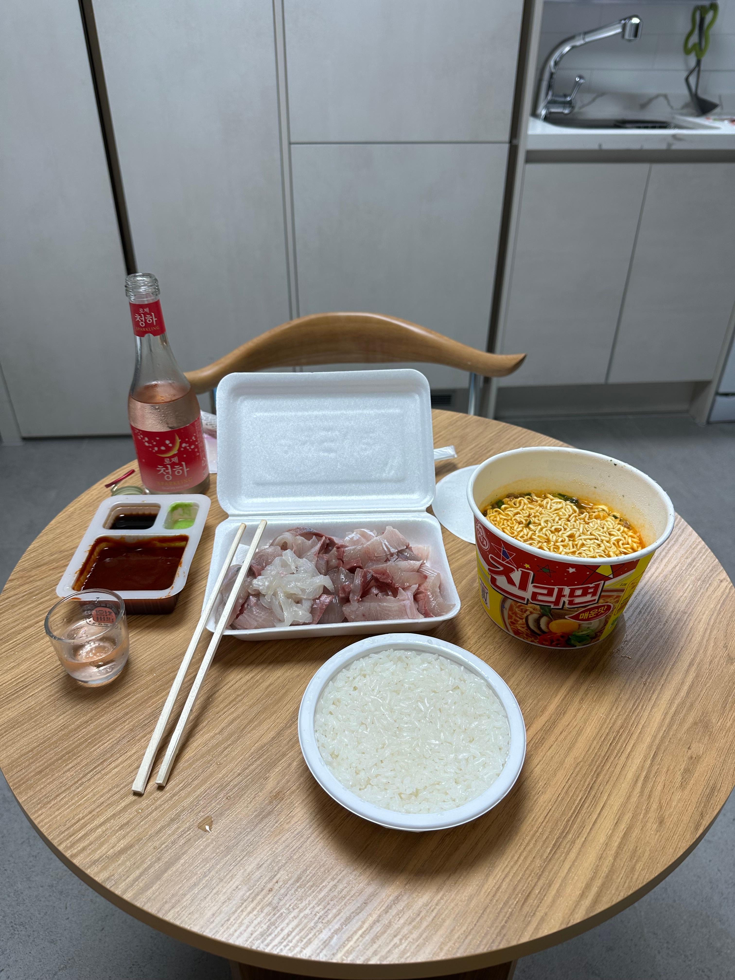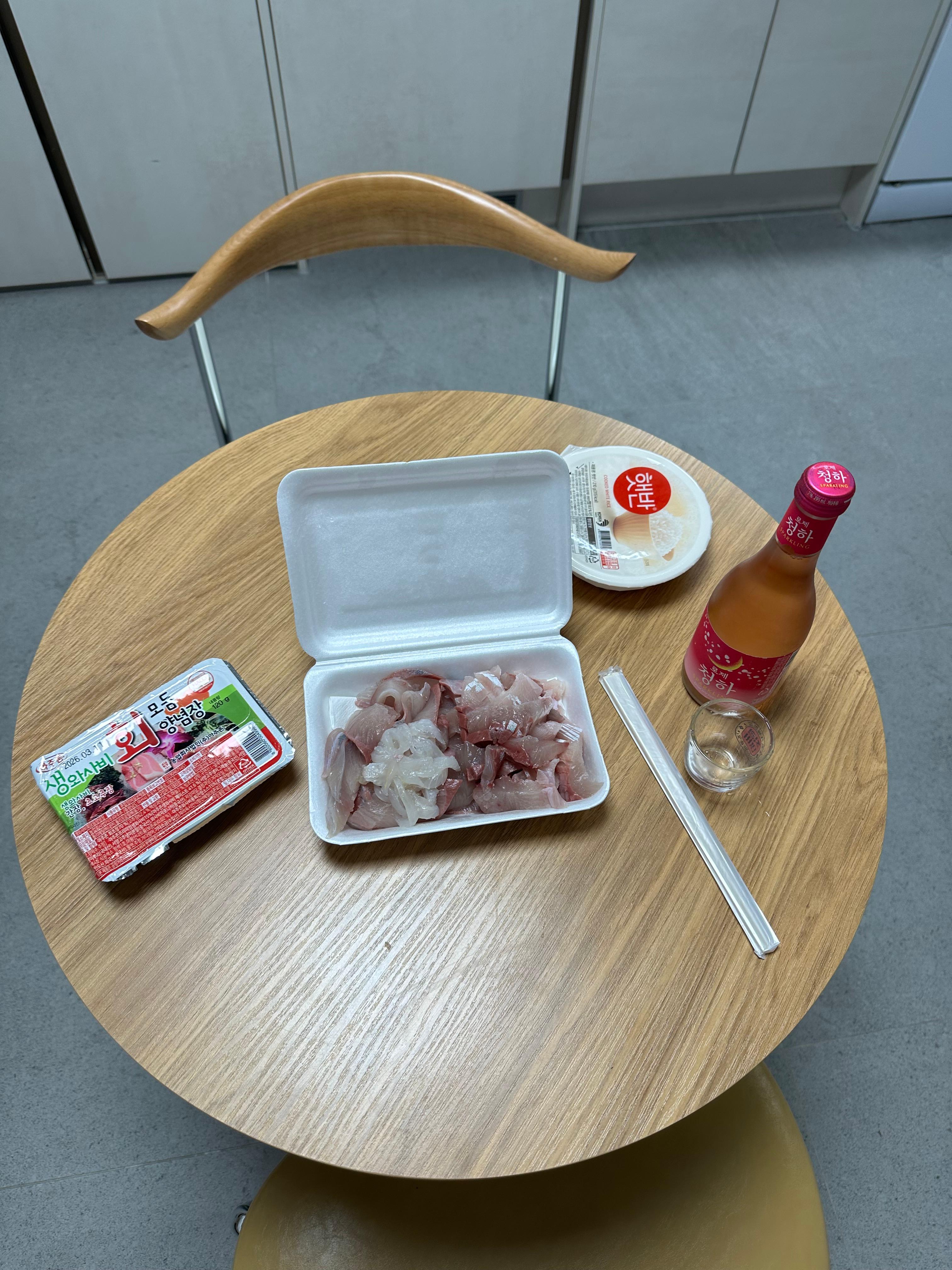 점심은 퇴근 후 수서역에서 제육볶음 먹고나서 광안리까지 아무것도 먹지 않았습니다. 그래도 배가 많이 고프지 않았습니다. 민락어민활어직판장에 한영우럭형님에서 쥐치와 방어회를 구매햇는데요. 그리고 회만 먹기에는 부족해서 햇반과 진라면 컵라면도 함께 샀습니다.