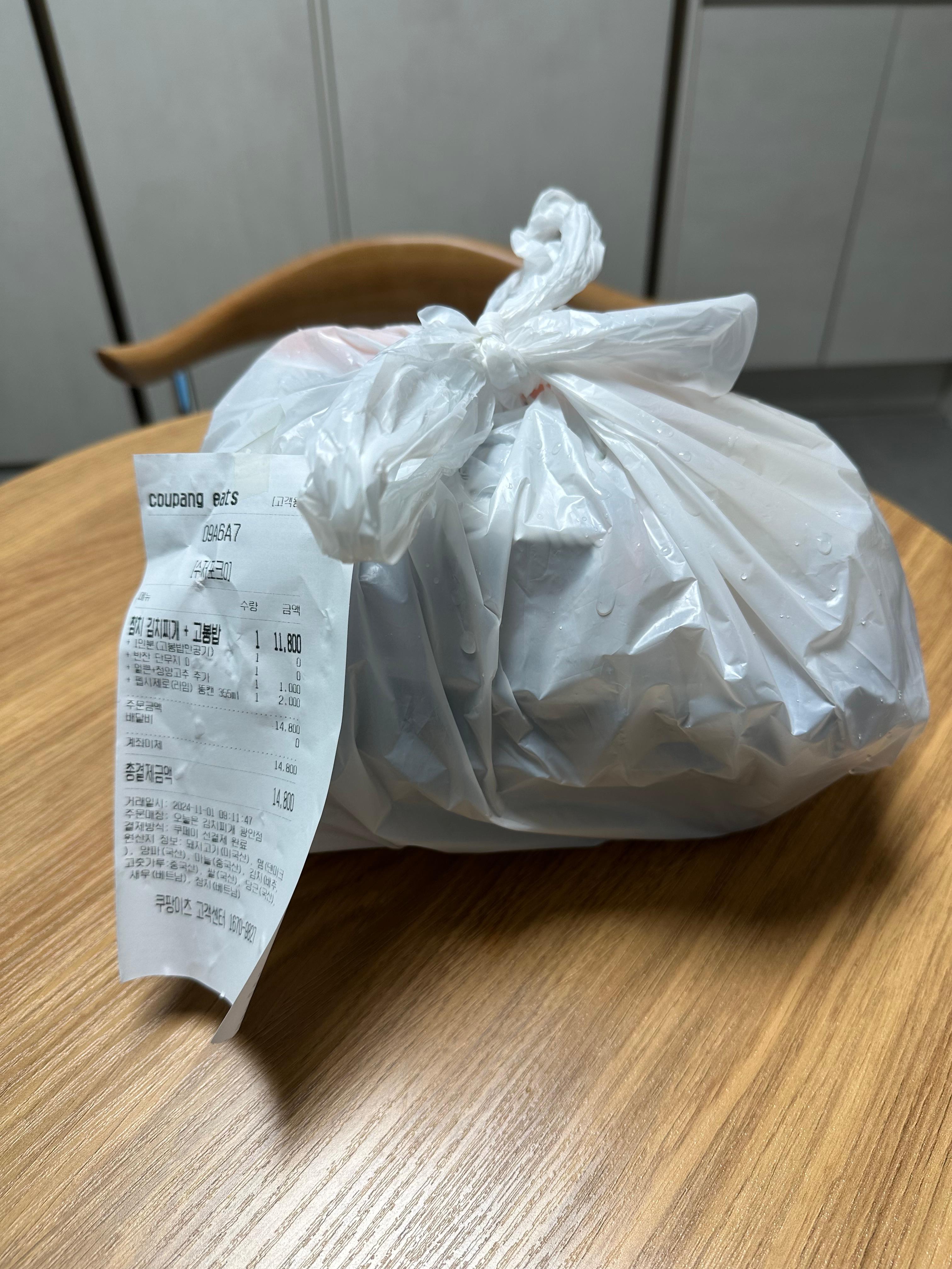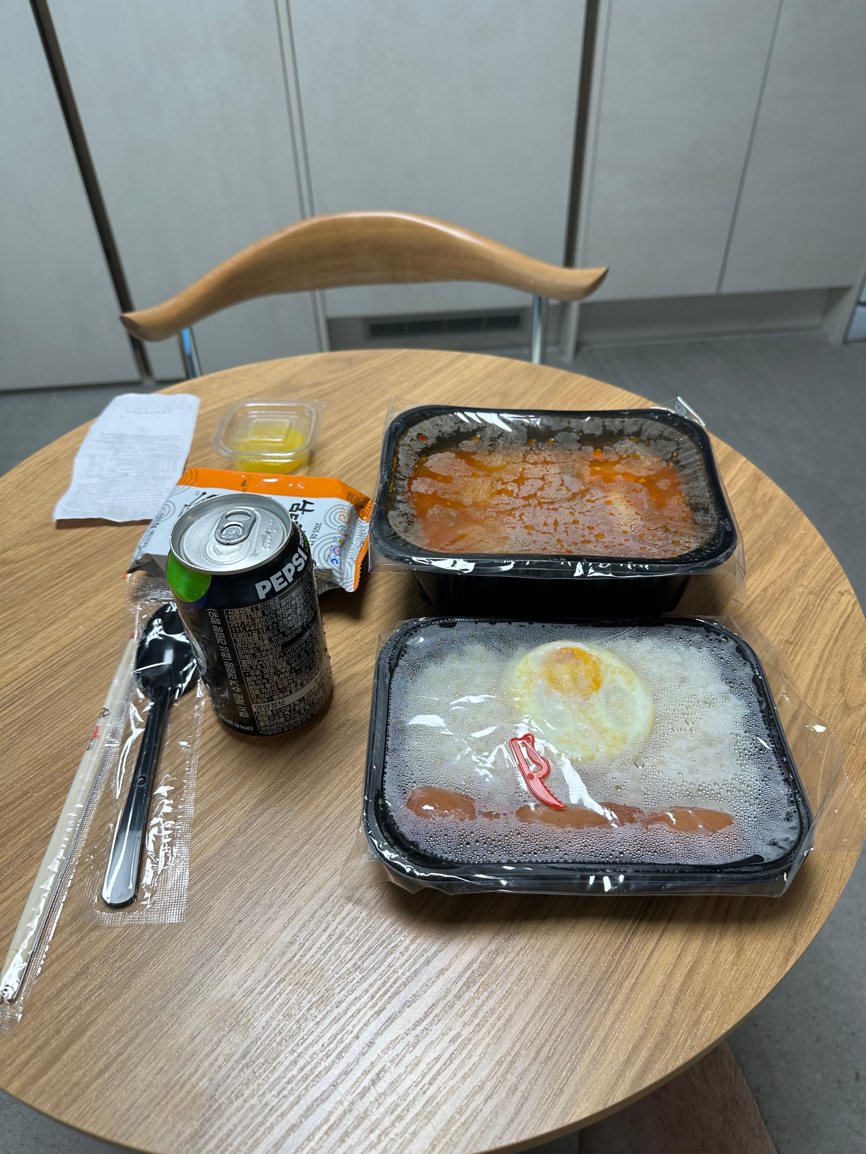 광안리 해수욕장 주변에 상가가 많다보니 쿠팡이츠든 배민이든 주만할 곳이 많았습니다. 그래서 얼마 기다리지 않아도 금방 올 수 있었습니다. 참치김찌개와 공기밥만 오는줄알았는데 공기밥 위에 소시지와 계란후라이가 올려져있었고 그 외에 음료와 김도 함께 왔습니다. 정말 배부르게 먹을 수 있었습니다. 호텔과 에어비앤비의 차이에 대해서 한가지 말하면 호텔은 주문하더라도 1층 프론트에서만 받을 수 있는데요. 하지만 에어비앤비는 내집처럼 이용할 수 있는 특성상 프론트까지 내려가지 않더라도 집처럼 호실까지 가져다주는 장점이 있었습니다. 하지만 호텔처럼 하는 방식은 장점이 있죠. 그만큼 더 안전한다는 것 같습니다.