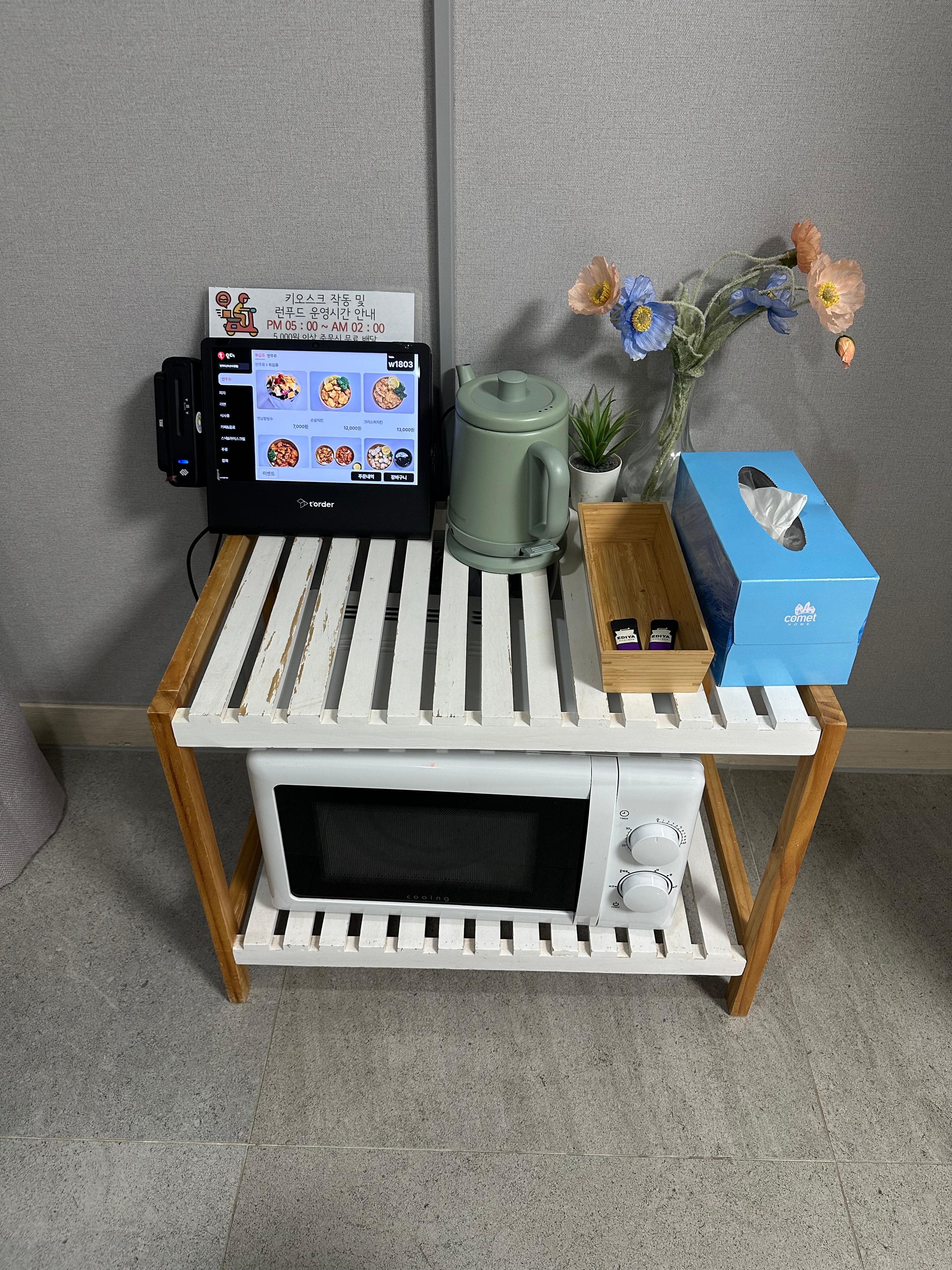 효이스테이 더 광안의 경우 다른 에어비앤비와 다르게 객실 숙소 안에 음식 주문 키오스크가 있었는데요. 배민과 쿠팡이츠 유료결제를 하지 않더라도 키오스크를 이용해서 음식 주문을 할 수 있었습니다. 하지만 배민과 쿠팡에 비하면 이런 키오스크는 정보도 부족하고 후기도 확인할 수 없다보니 사실 배민을 이용하는게 좋은 것 같습니다. 배민과 쿠팡이츠 앱을 이용하는 가장 좋은점은 여러 사람들이 이용하며 후기를 통해 좀 더 피해보지 않고 객관적으로 이용할 수 있기 때문이 아닐까 싶습니다.