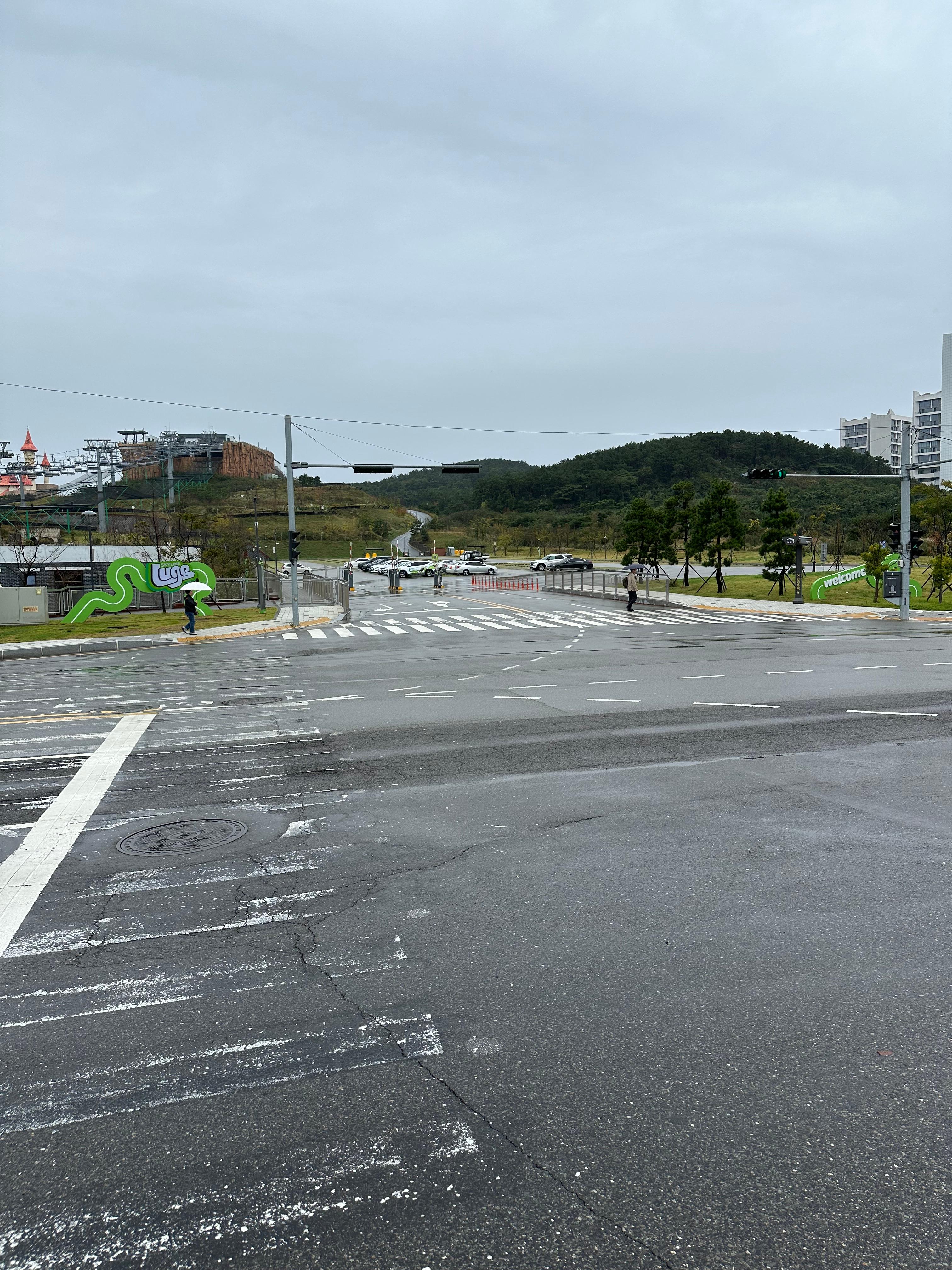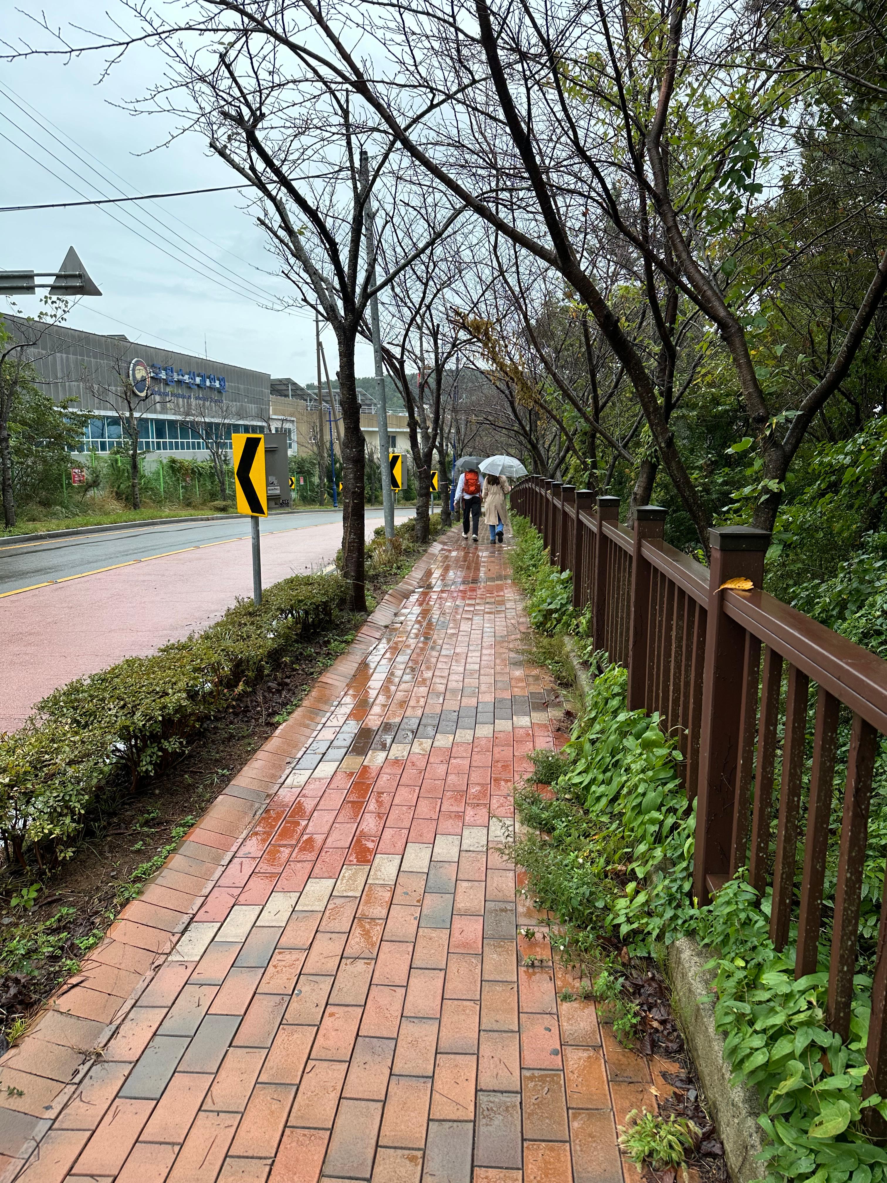 버스 정류장에서 맞은편 스카이라인 루지를 보고나서는 해동용궁사가 있는 길을 따라 이동합니다. 비가 그렇게 많이 오지 않아 우산을 쓰고 이동하니까 약간 불편하고 힘든것은 있지만 다행히 비가 많이는 오지않았습니다.