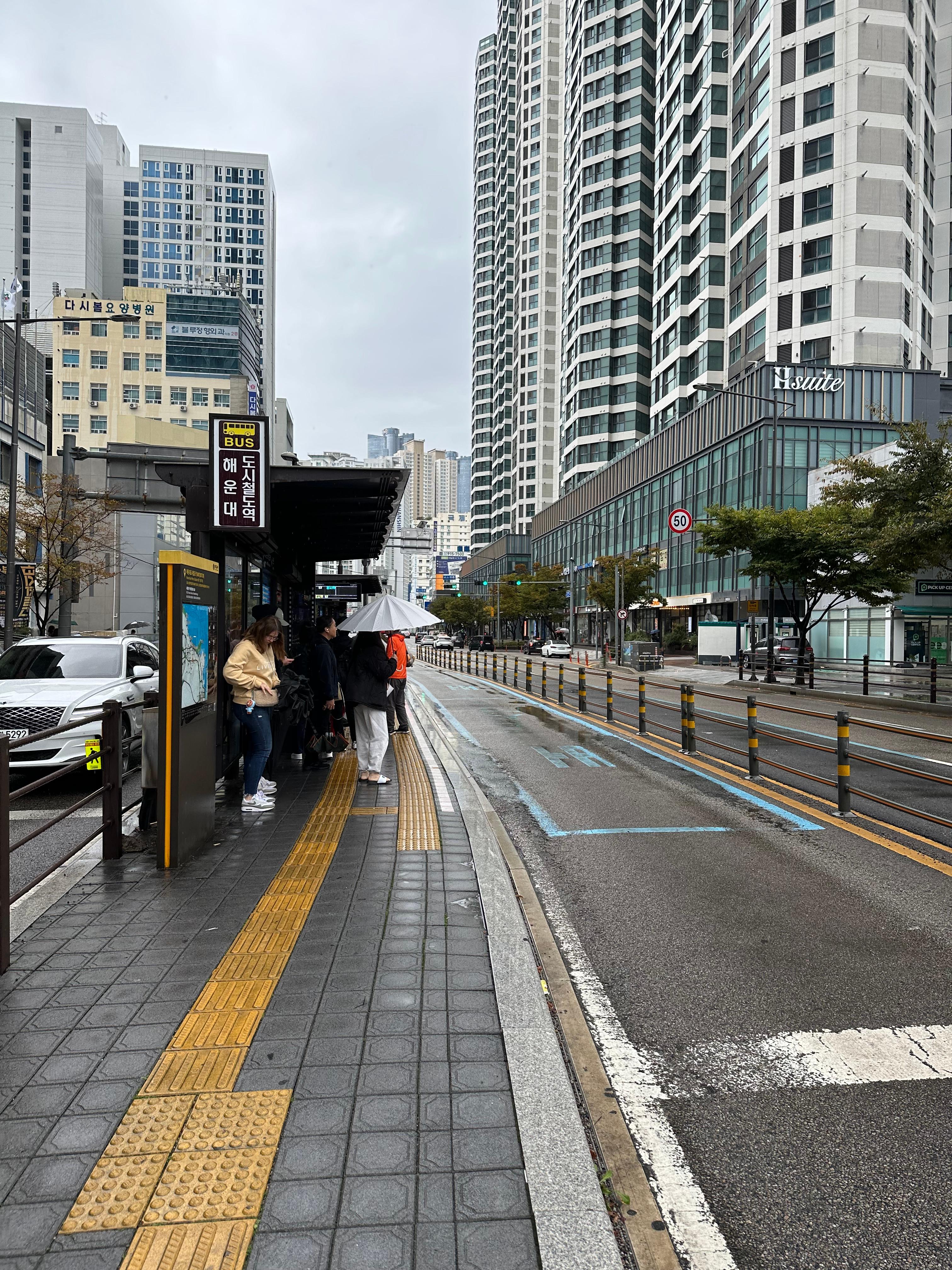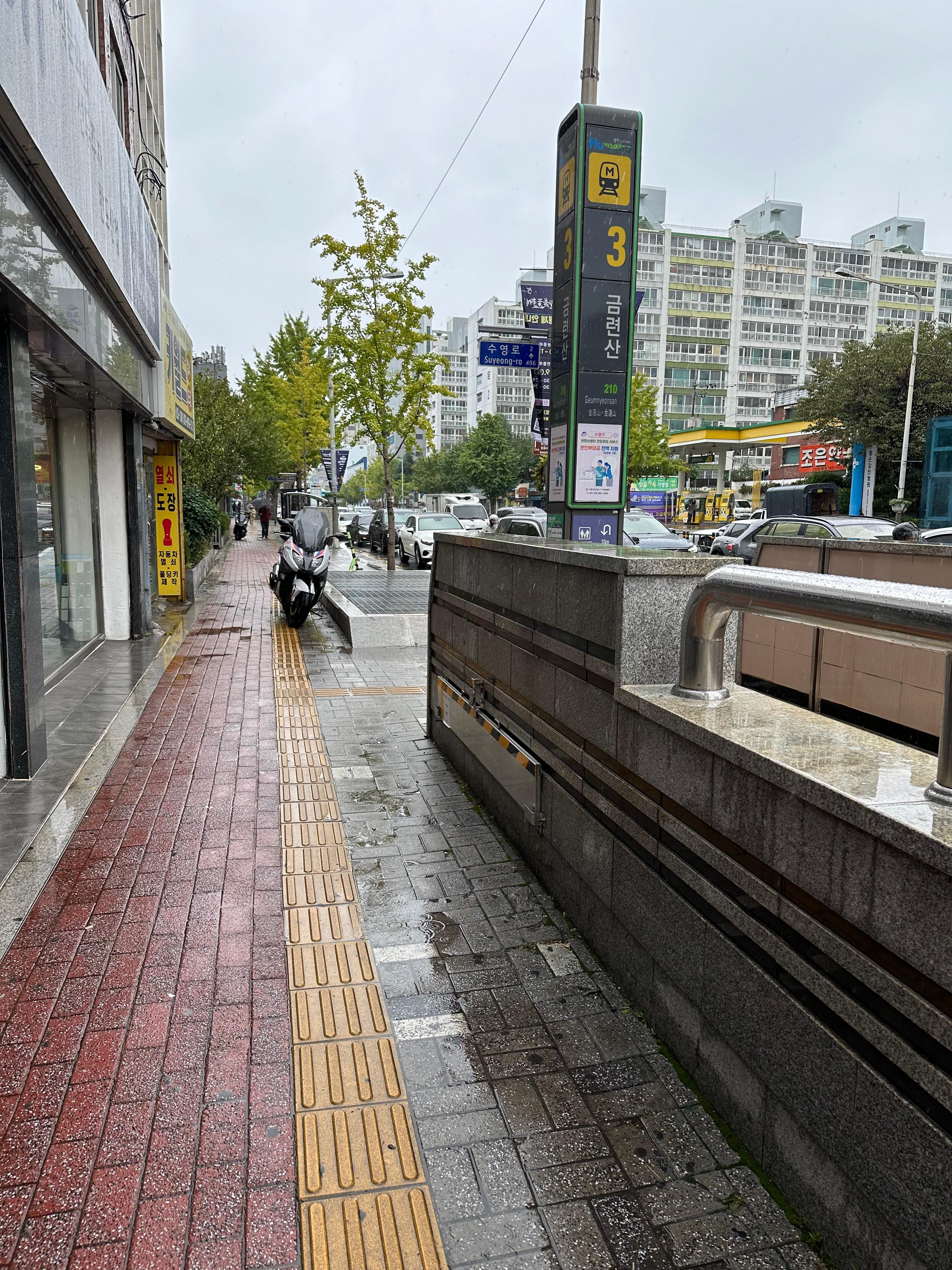 효이스테이 더 광안 에어비앤비에서 우산을 구매하고 광안리 비오는 광안리 앞 바다를 잠시 보며 금련산역으로 이동했습니다. 비가 오거나 눈이 오면 대중교통 여행하는 뚜벅이에게는 정말 힘이 드는데요. 눈과 비 모두 적당히 오면 운행하는데 어려움이 없는데요.