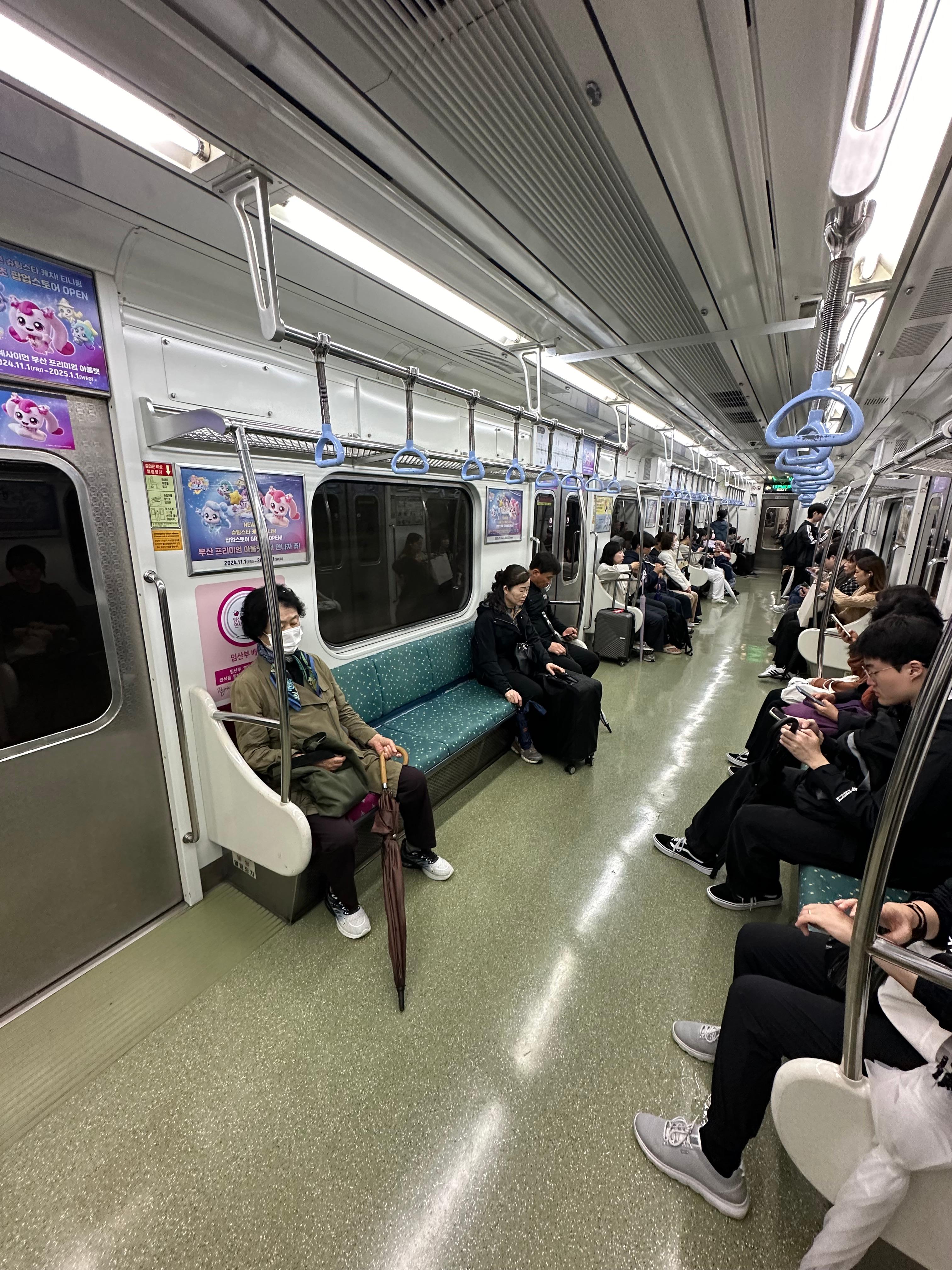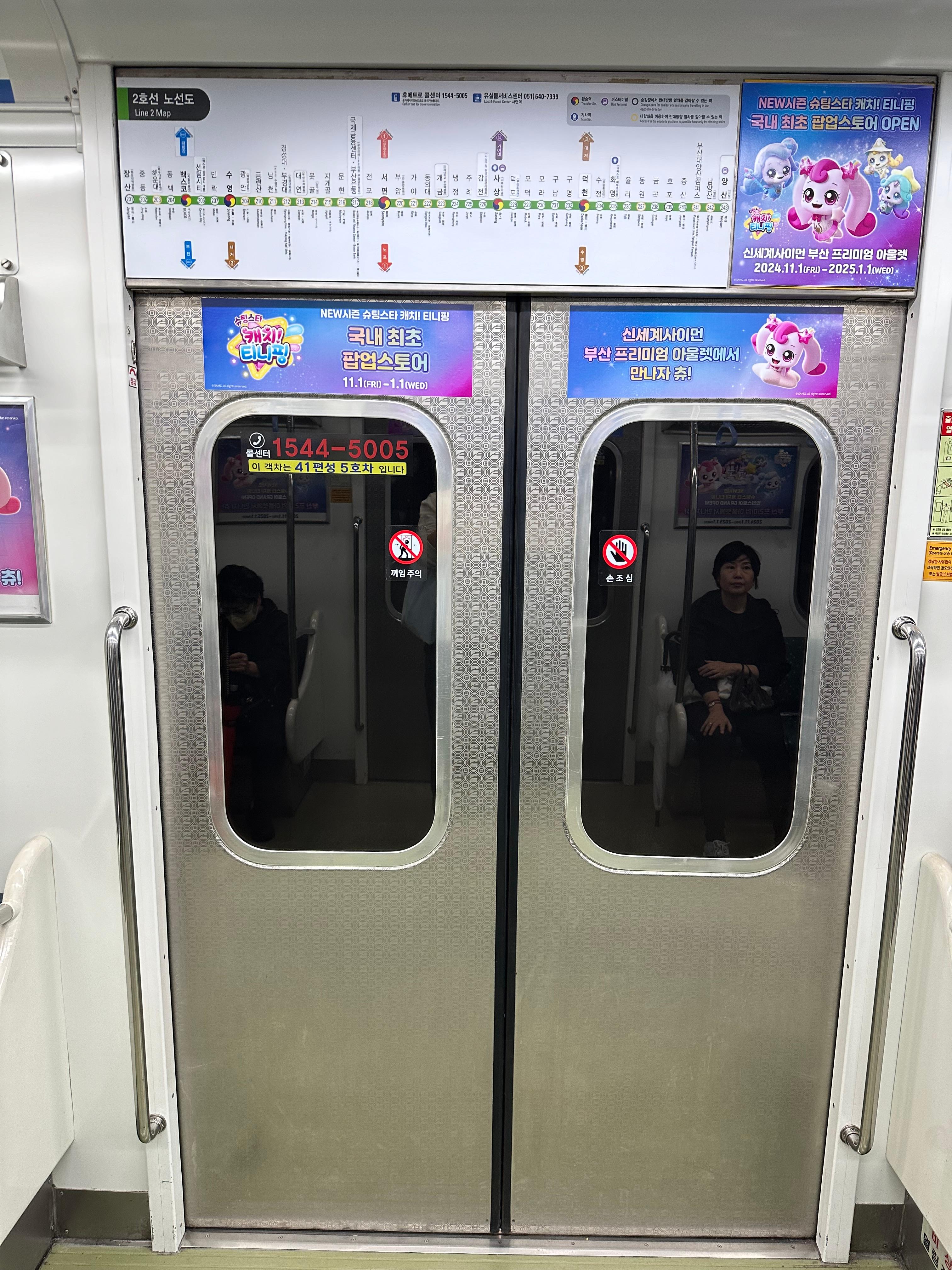 부산 지하철 금련산역에서 지하철에 탑승했습니다. 지난 포스팅에서도 설명해드렸지만 부산을 포함한 지자체의 경우 서울 지하철에 비하면 지하철 폭이 좁은 것을 볼 수 있습니다. 이렇게 맏는 이유는 서울에 비해 인구가 많이 없을 것으로 판단하여 효율적인 설계 개발했다고 합니다. 이렇게 폭이 좁아도 당장 이용하는데는 문제없는것 같습니다. 또한 정말 현명한 설계같습니다. 하지만 동해남부선 전동열차의 경우 서울지하철과 동일한 구조입니다.