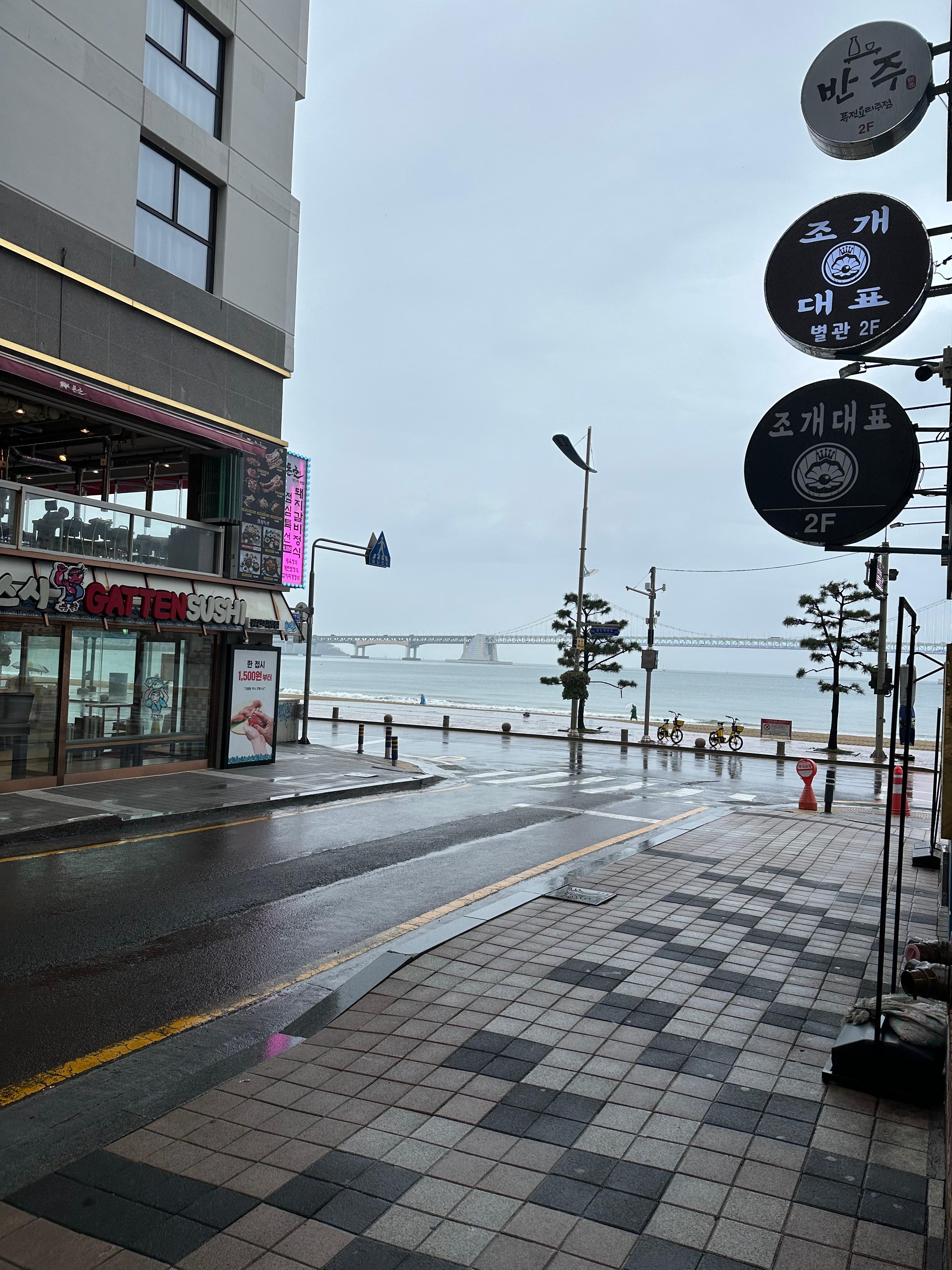 혹시나 하는 마음으로 효이스테이 더 광안 에어비앤비에서 체크아웃하는 시간까지 비가 그치지 않을까 기대해보았습니다. 목적지인 해동용궁사까지 가는동안 비가 그치지 않을까 기대했습니다. 구라청의 힘을 믿어보았지만 지난 여행은 구라청이 아니라 기상청이 맞았습니다. 바다 근처라 그런가 광안리에서도 바람이 거세게 불었습니다.