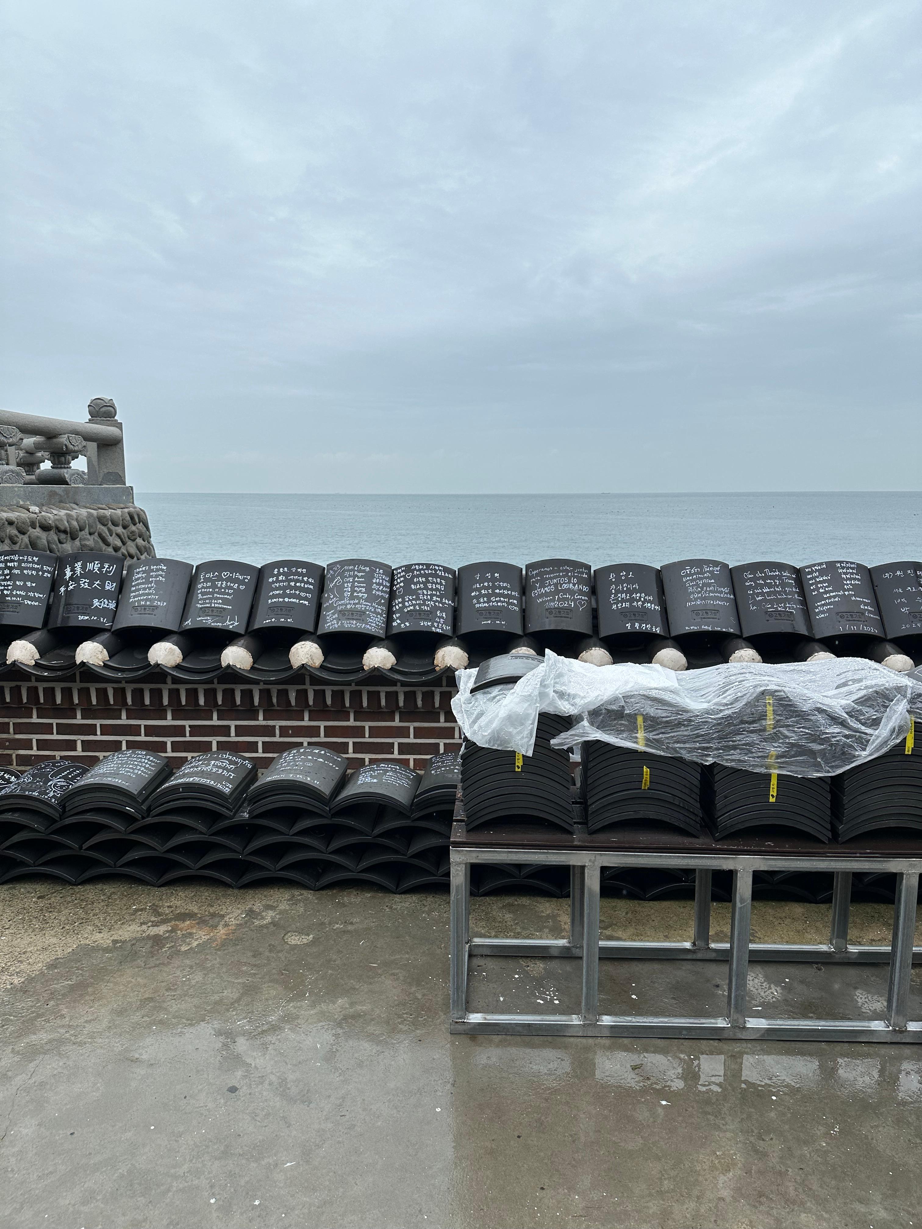 해동용궁사 역시 어느 사찰에 가서 볼 수 있는 것들을 볼 수 있었습니다. 기와 위에 소원을 적는 모습도 볼 수 있었습니다. 특히 이러한 기도 활동은 무료가 아닌 유료라는 점에서 가격이 조금 있습니다. 해동용궁사의 경우 입장료가 무료인데요. 입장료가 무료라는 점을 생각해보면 이러한 기도접수를 통해서 수익을 벌 수 있기 때문인데요. 불교를 믿지 않더라도 아름다운 바다사찰에 온다면 조금 비싸더라도 해보면 좋은 것 같습니다. 소원을 빌어서 이루어지는지 여부는 알 수 없습니다. 하지만 기도를 통해서 마음을 안정시키고 추억을 만드는것 아닌가 싶습니다.
