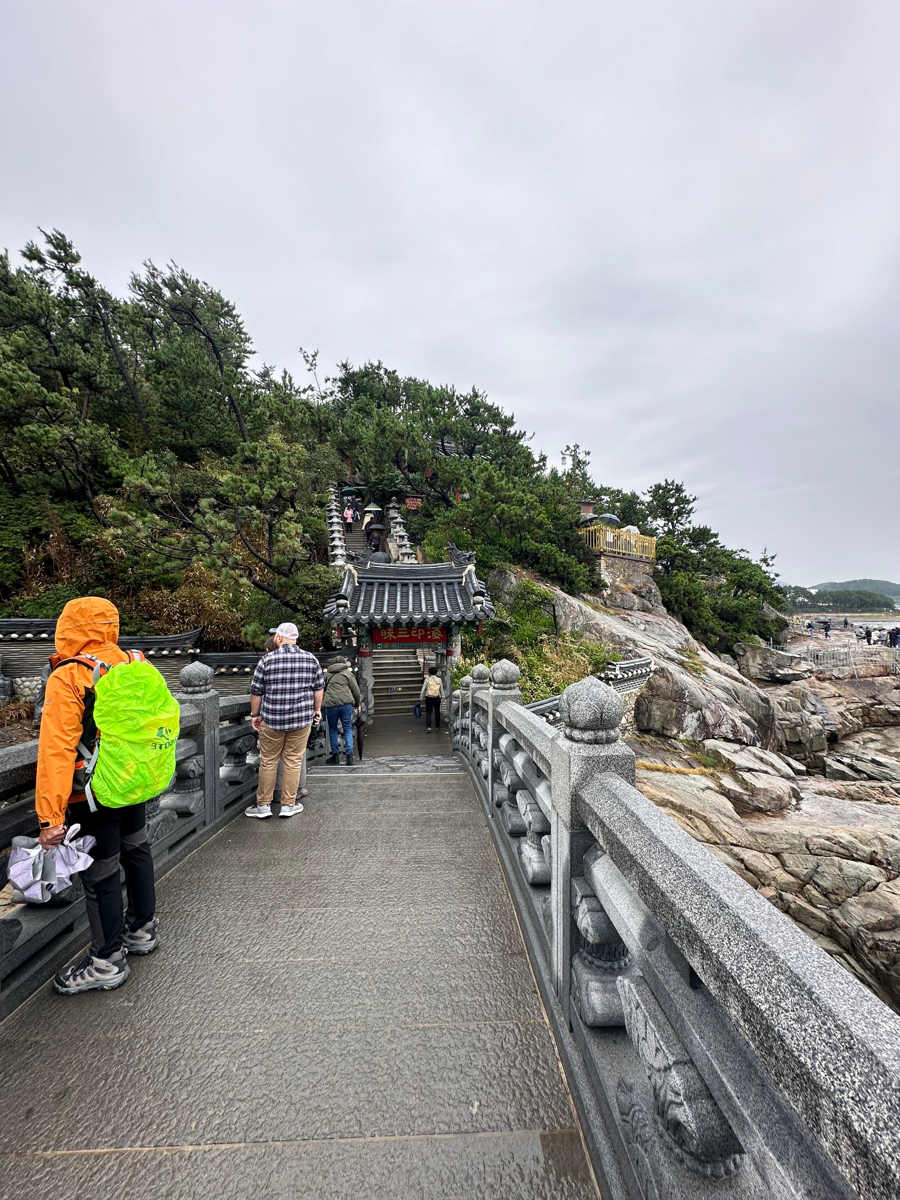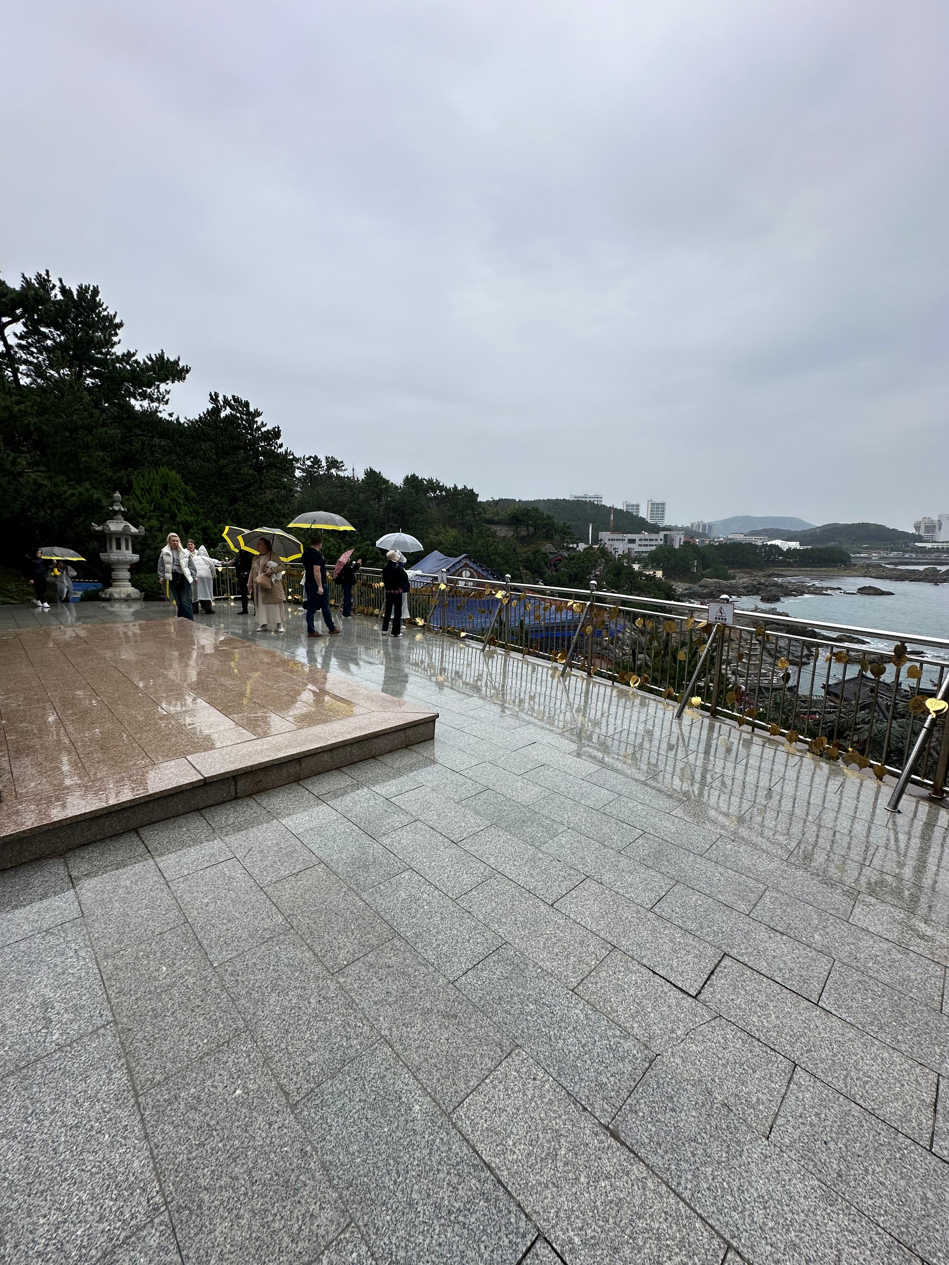 비가 오는 금요일의 해동용궁사였는데요. 내국인 뿐만 아니라 외국인들도 찾와서 해동용궁사 해수관음대불 전망대를 배경으로 사진을 찍고 있었습니다. 이렇게 멋진 풍경을 보기 위해서는 힘들지만 계단을 통해 올라와야 하는 불편이 있었습니다. 이것은 해동용궁사 위에서 남해안의 아름다운 풍경 뿐만 아니라 우리 인생 역시 노력없이는 누릴 수 없는 것을 다시 한번 깨닫게 됩니다.
