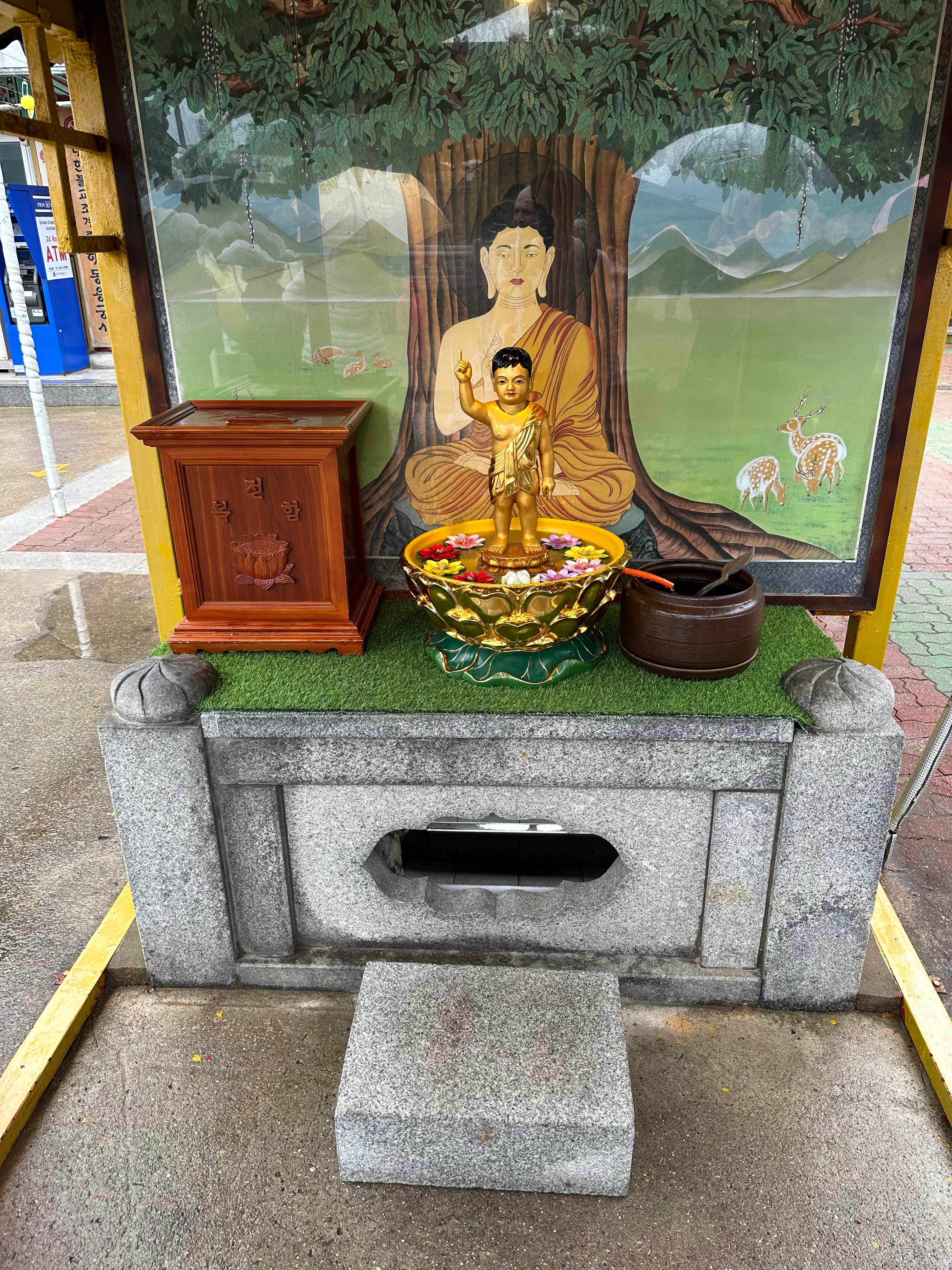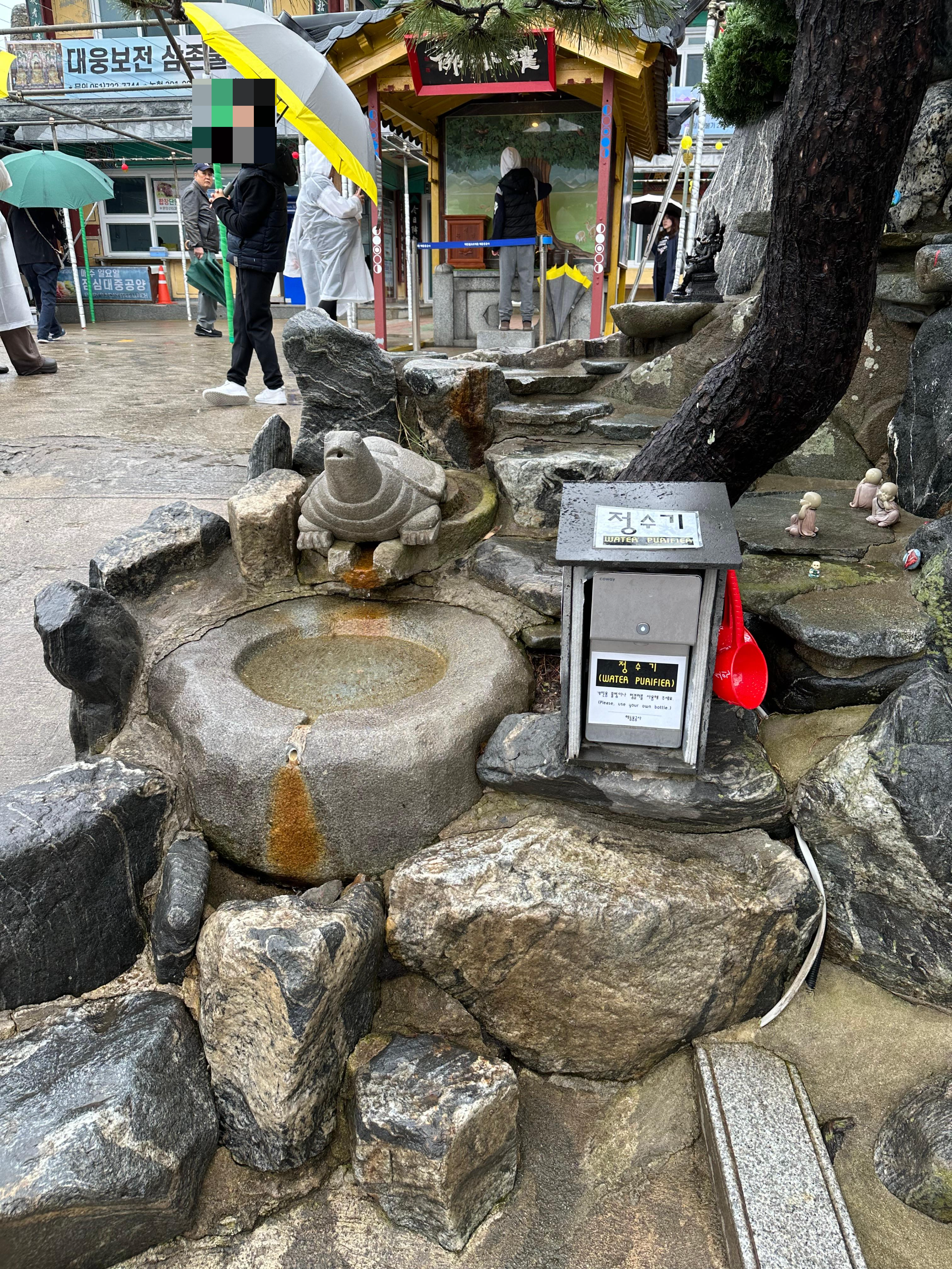 해동용궁사 신비한 약수 지하 계단 바로 뒤편에는 재미있는 관불의식이라는 체험 공간이 있습니다. 아기 부처님 위에 물을 자연스레 뿌려 깨끗하게 씻겨드리면서 동시에 나 자신의 마음속에 탐, 진, 치 번뇌도 씻어내어 맑고 청정한 지혜와 복을 성취하기 위한 의식이라고 해요. 이러한 의식은 3번만 하라고 되어있습니다. 해동용궁사의 신비한 약수의 경우 내일로 기차여행으로 부산에 왔을 때 처음 왓었는데요. 10년전에 여행올 때는 바다위에 절이 있다고 해서 그것만 보고 왔는데요. 그때 신비한 약수가 이번 여행에서도 떠오르게 했었습니다. 그리고 다른사람들이 그냥 지나칠만큼 저 역시 지나칠뻔했지만 그때의 인상이 강했는지 이번에도 신비한 약수에서 물으 마셨습니다.