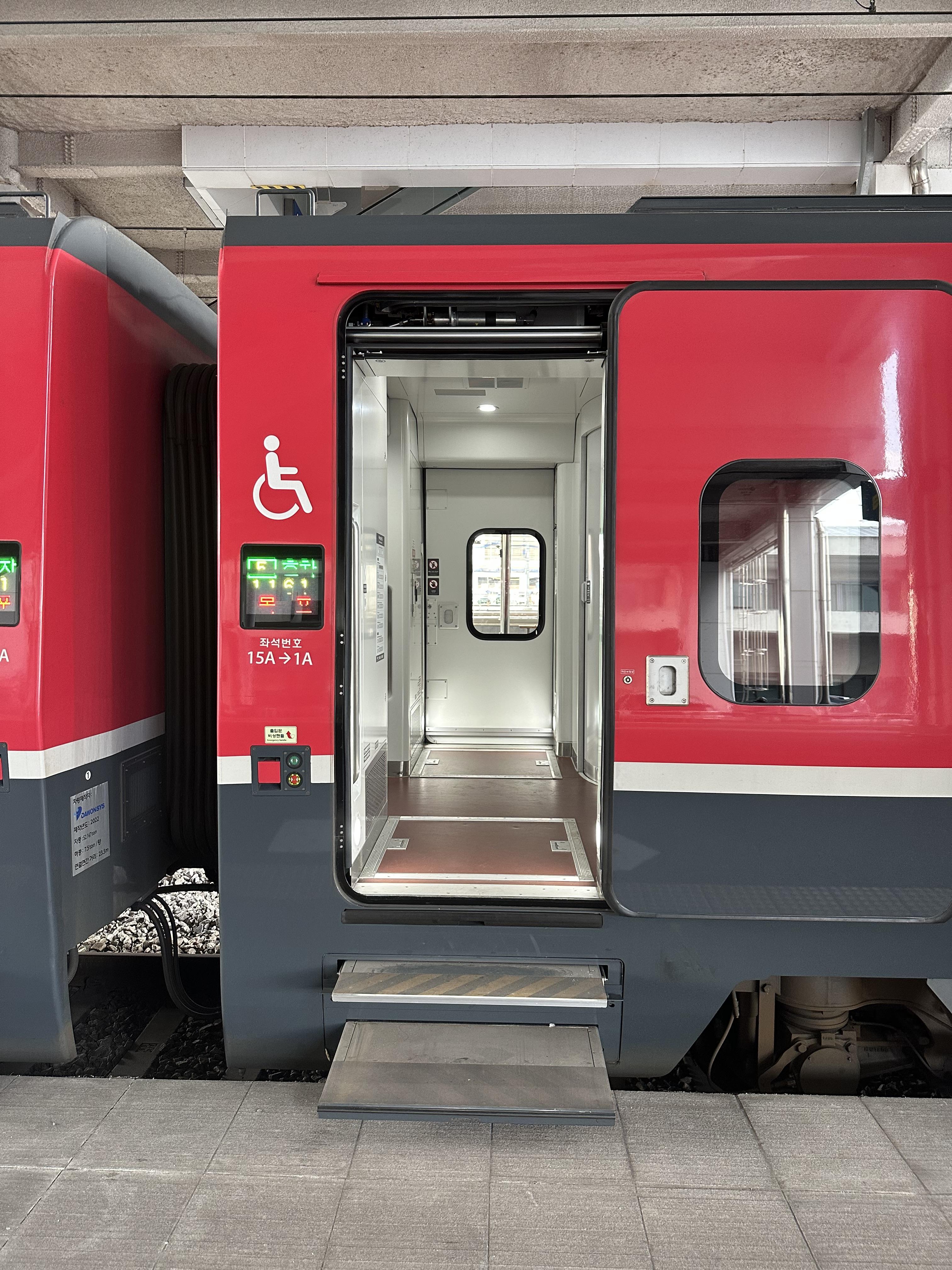 그런데 ITX 마음 열차는 두대의 열차가 연결되어있는 복합열차였습니다. KTX산천과 SRT 열차가 두대의 열차가 붙어 다닐 수 있는데 일반열차도 이제 이렇게 다닐 수 있나봅니다. ITX 마음 복합열차의 경우 1~4호차와 5~8호차 서로 다른 열차이다보니 반드시 호차를 확인하고 타셔야 됩니다. 만약에 잘못타실 경우에는 다음 역에서 내려서 다시 탑승 하시면 됩니다.
